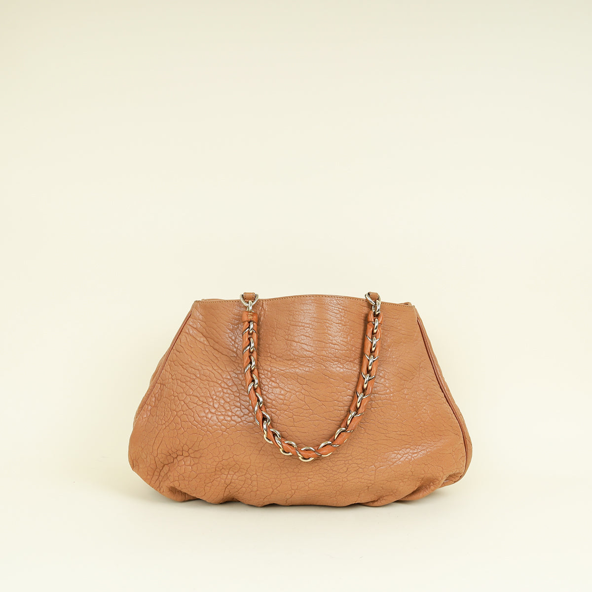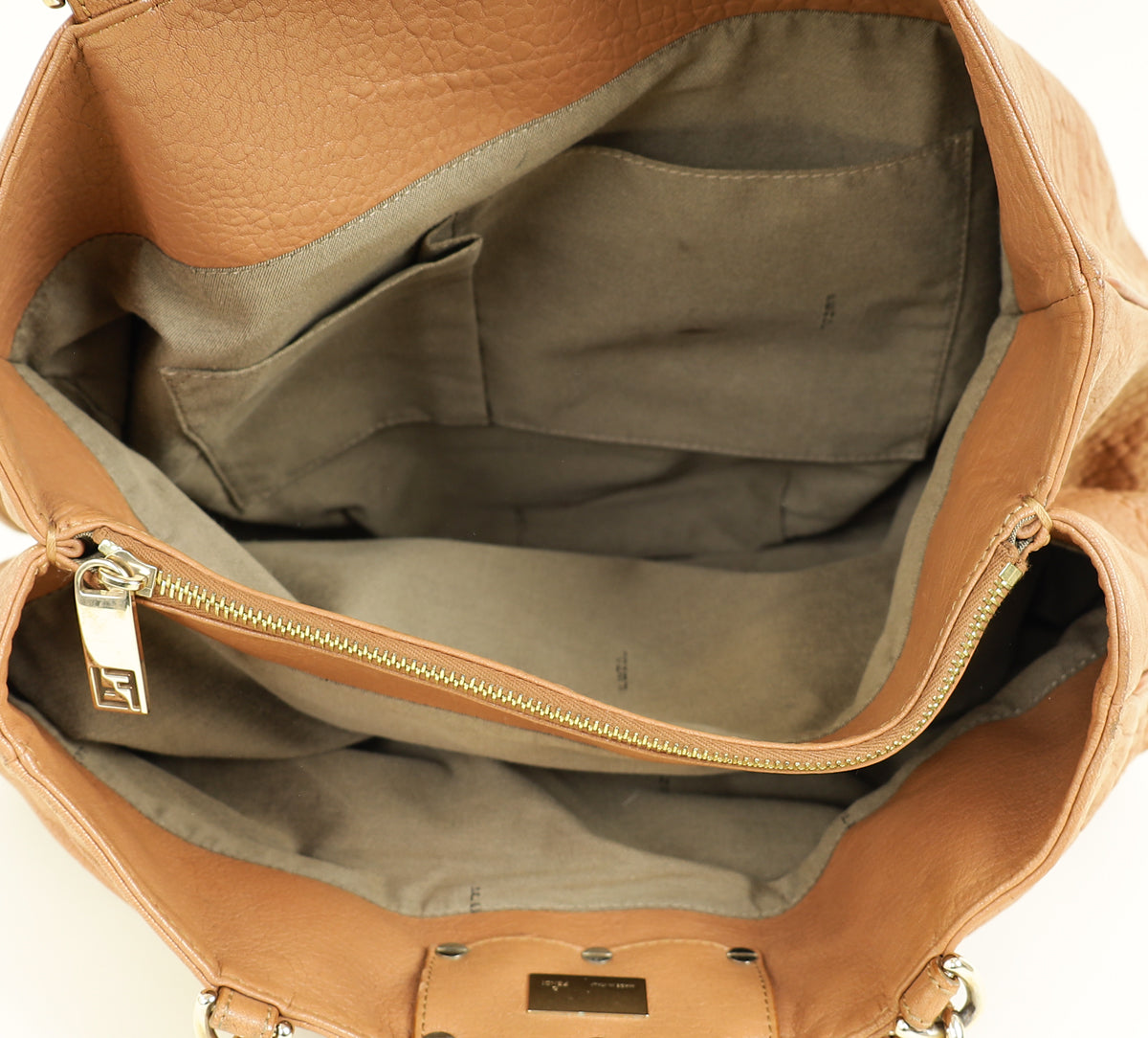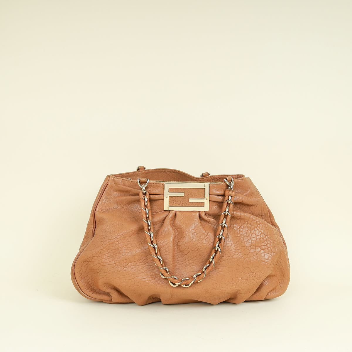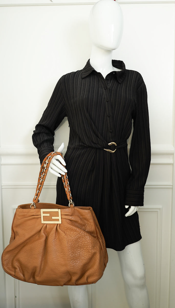 Fendi Camel Mia Leather Chain Tote Bag Large