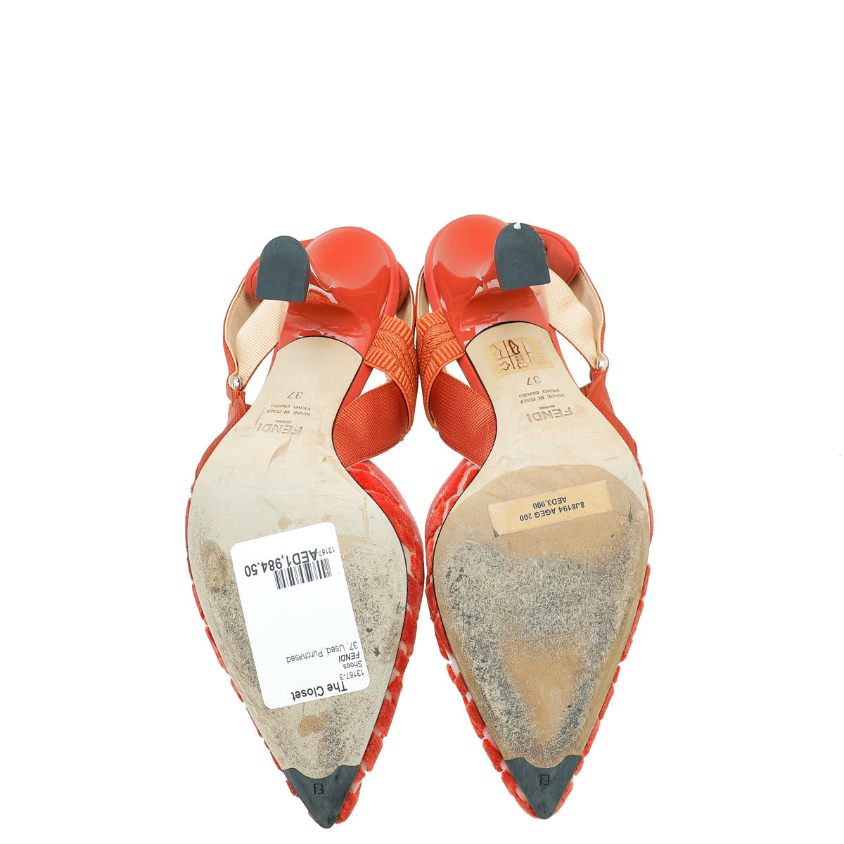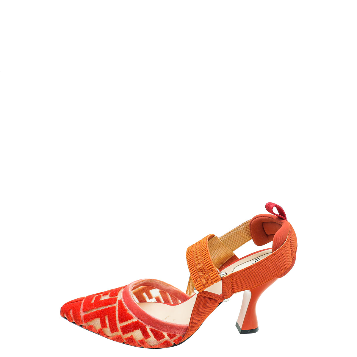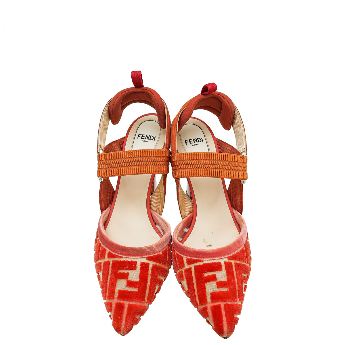 Fendi Coral FF Velvet Colibri Slingback Pumps 37