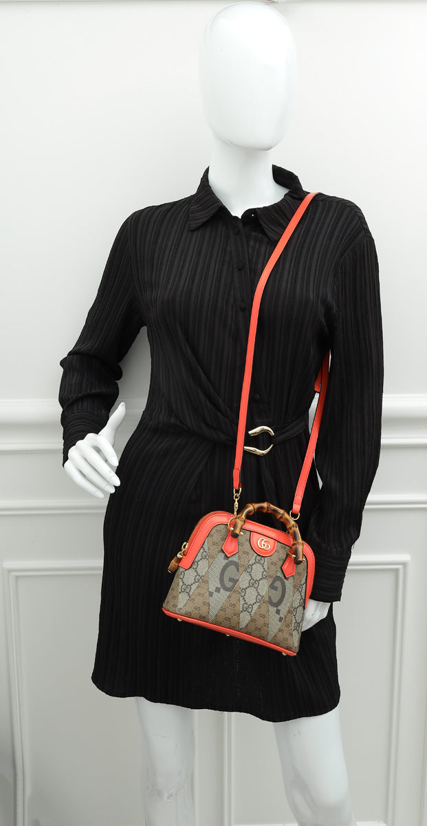 Material: Ebony Coated Canvas and Orange Leather with Double G