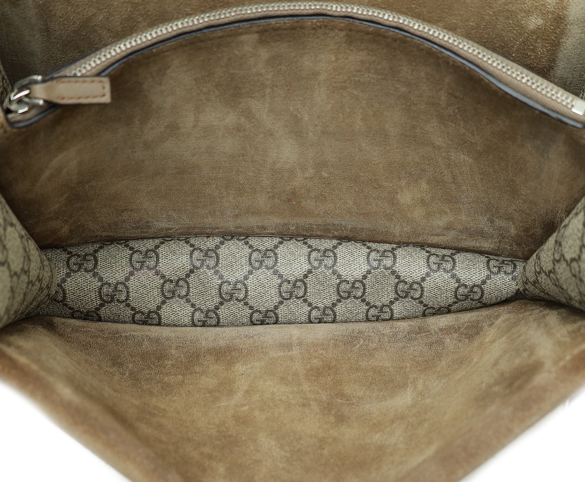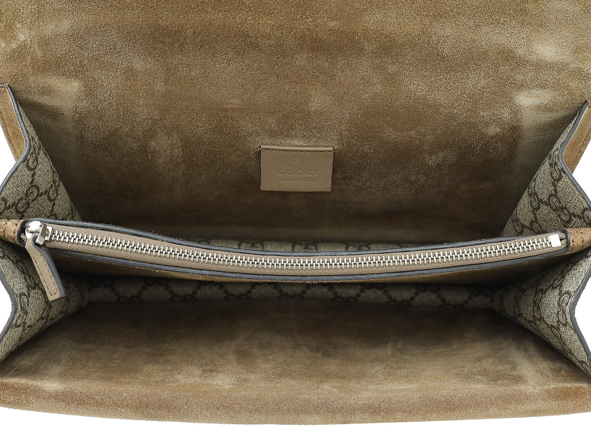 المادة : قماش سوبريم بنقش GG من خشب الأبنوس مع زخرفة من جلد الغزال البني مع إغلاق برأس النمر