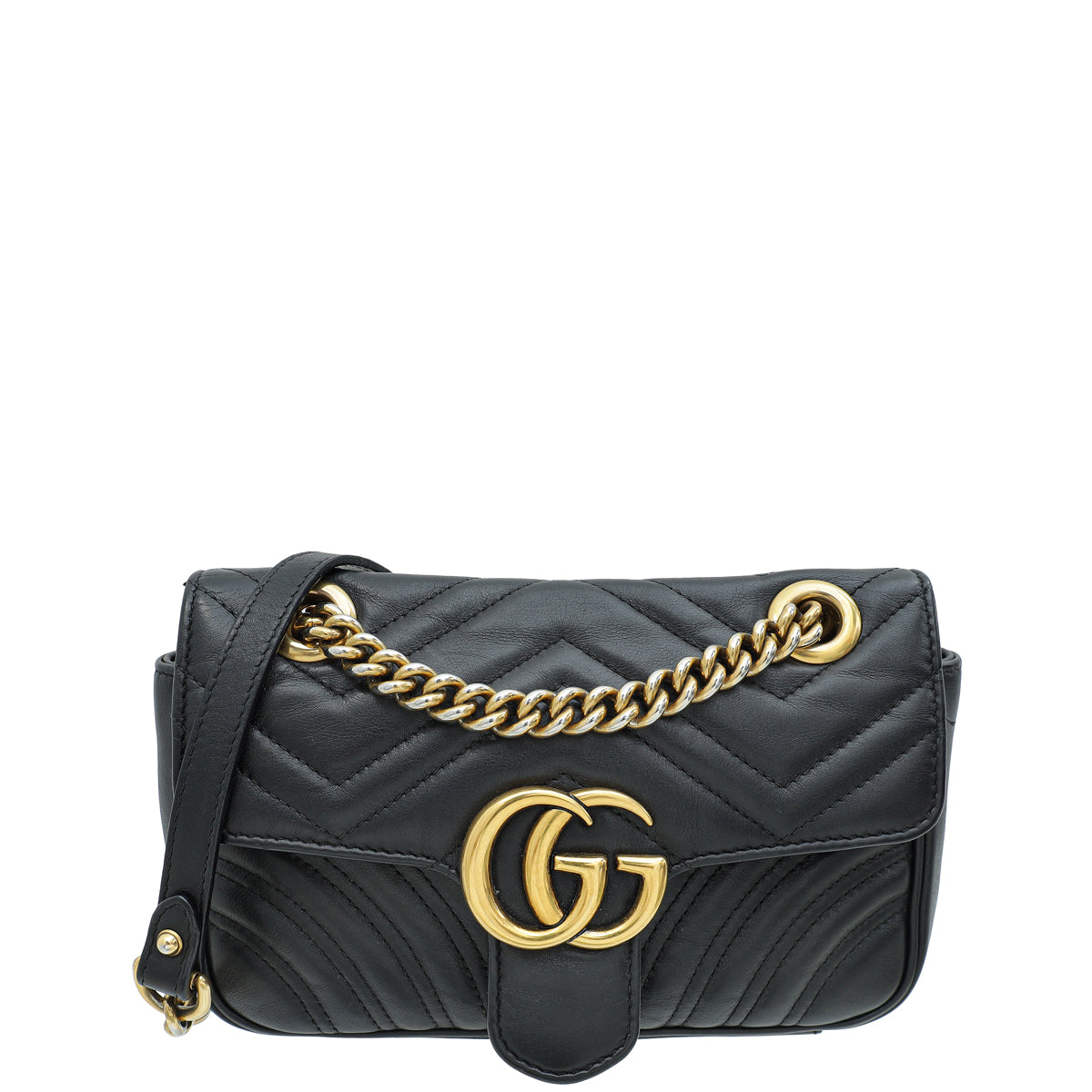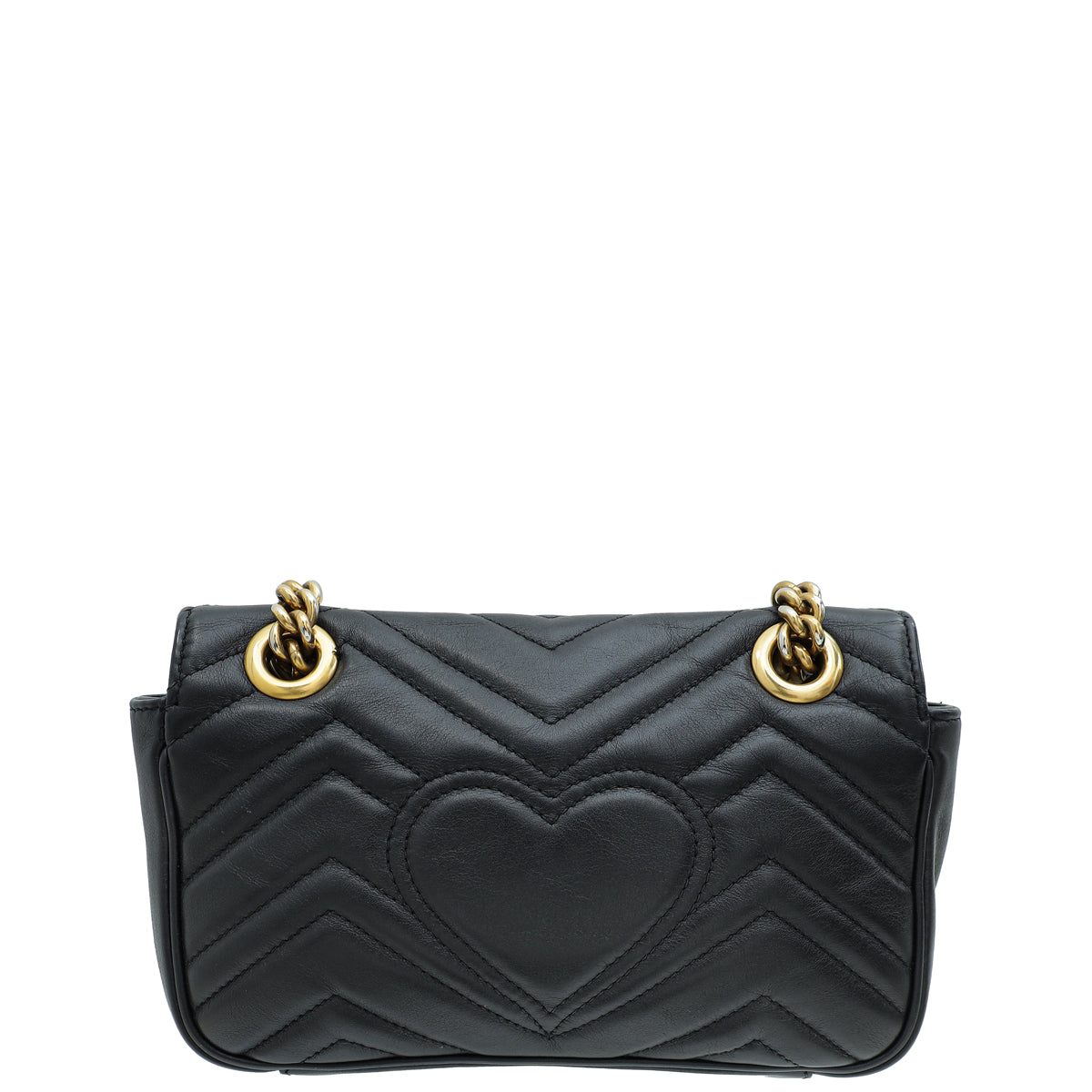 Material: Black Matelasse Calfskin Leather with Double G and a Heart on The Back