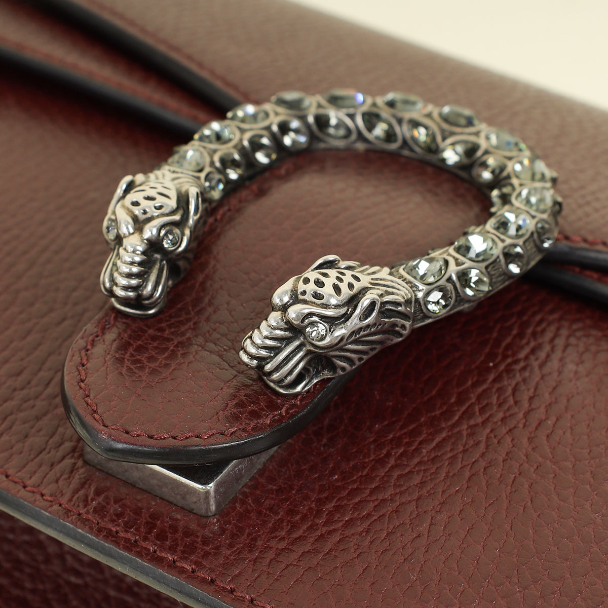 Material: Grained Calf Leather and Tiger Head Closure with Crystals