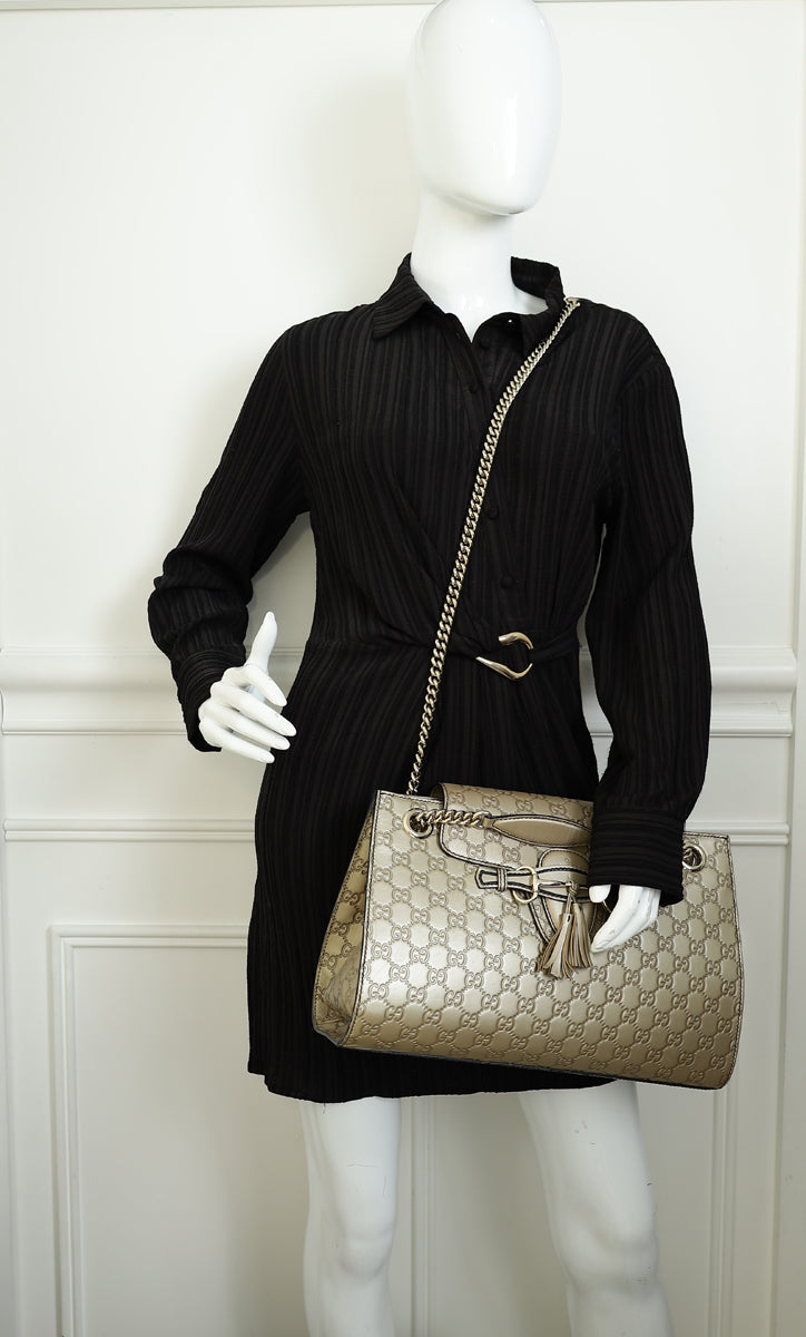 Gucci Champagne Guccissima Large Emily Chain Shoulder Bag