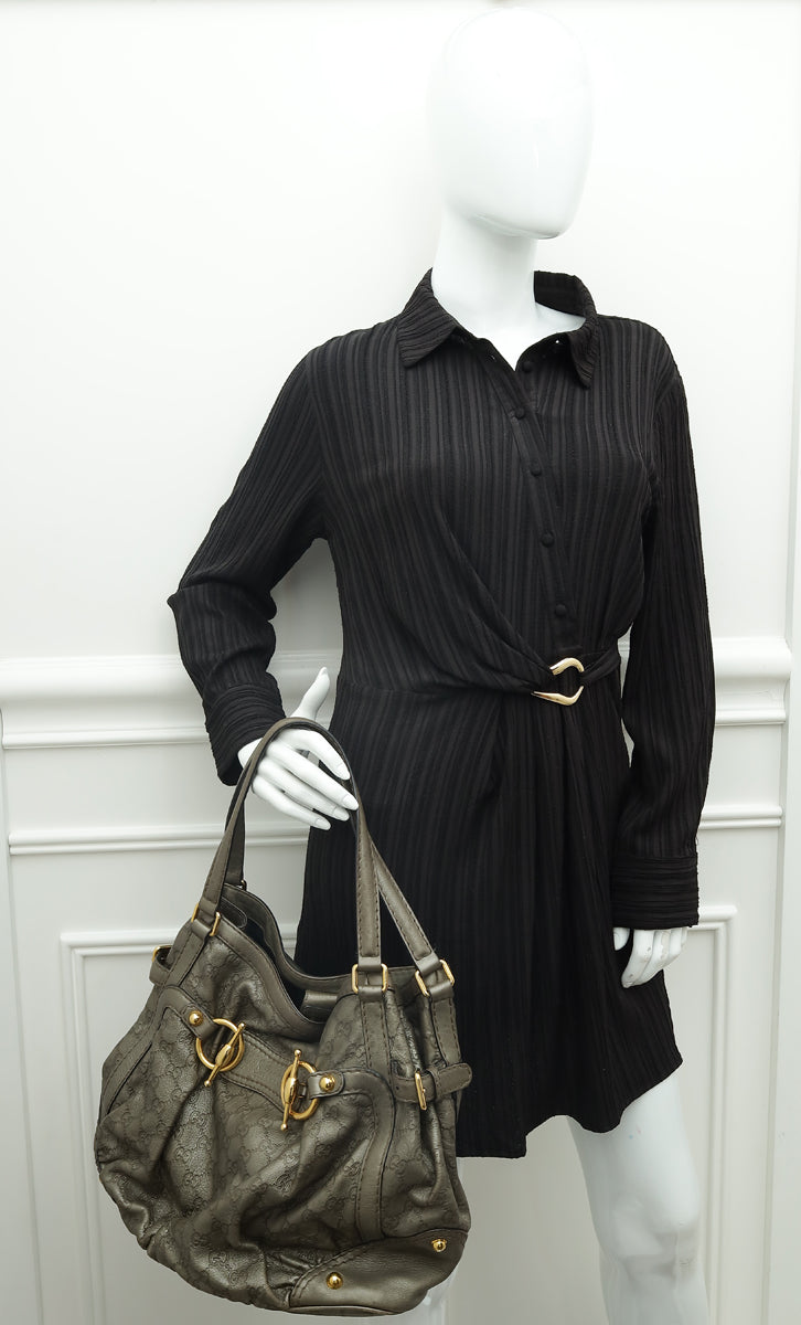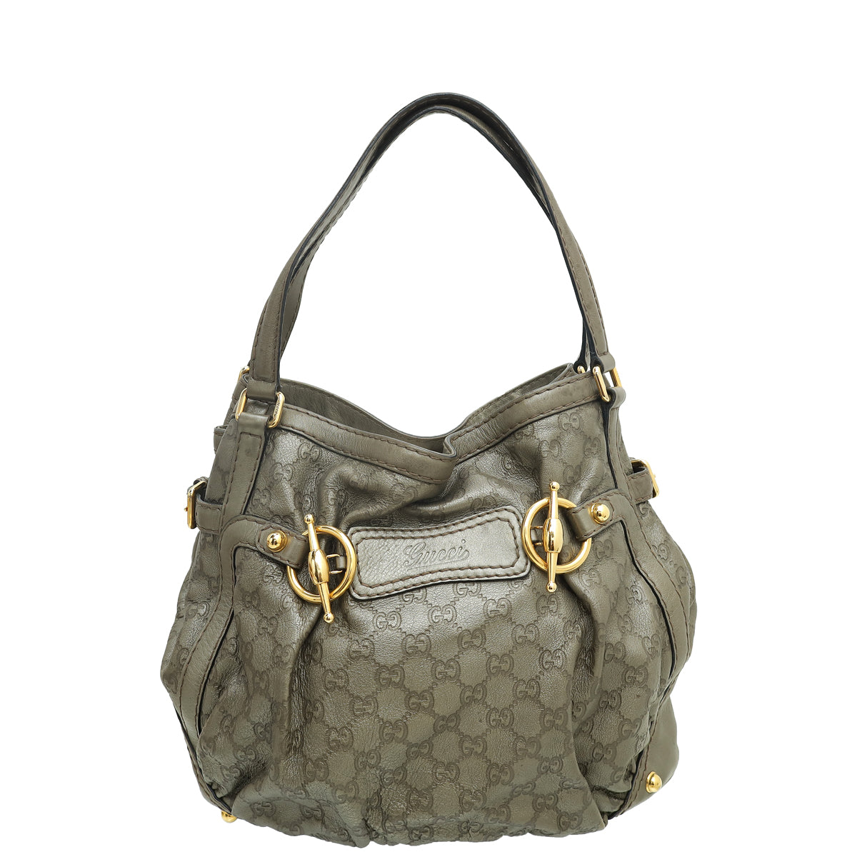 حقيبة غوتشي جوكي رمادية معدنية غوتشيسيما متوسطة الحجم
