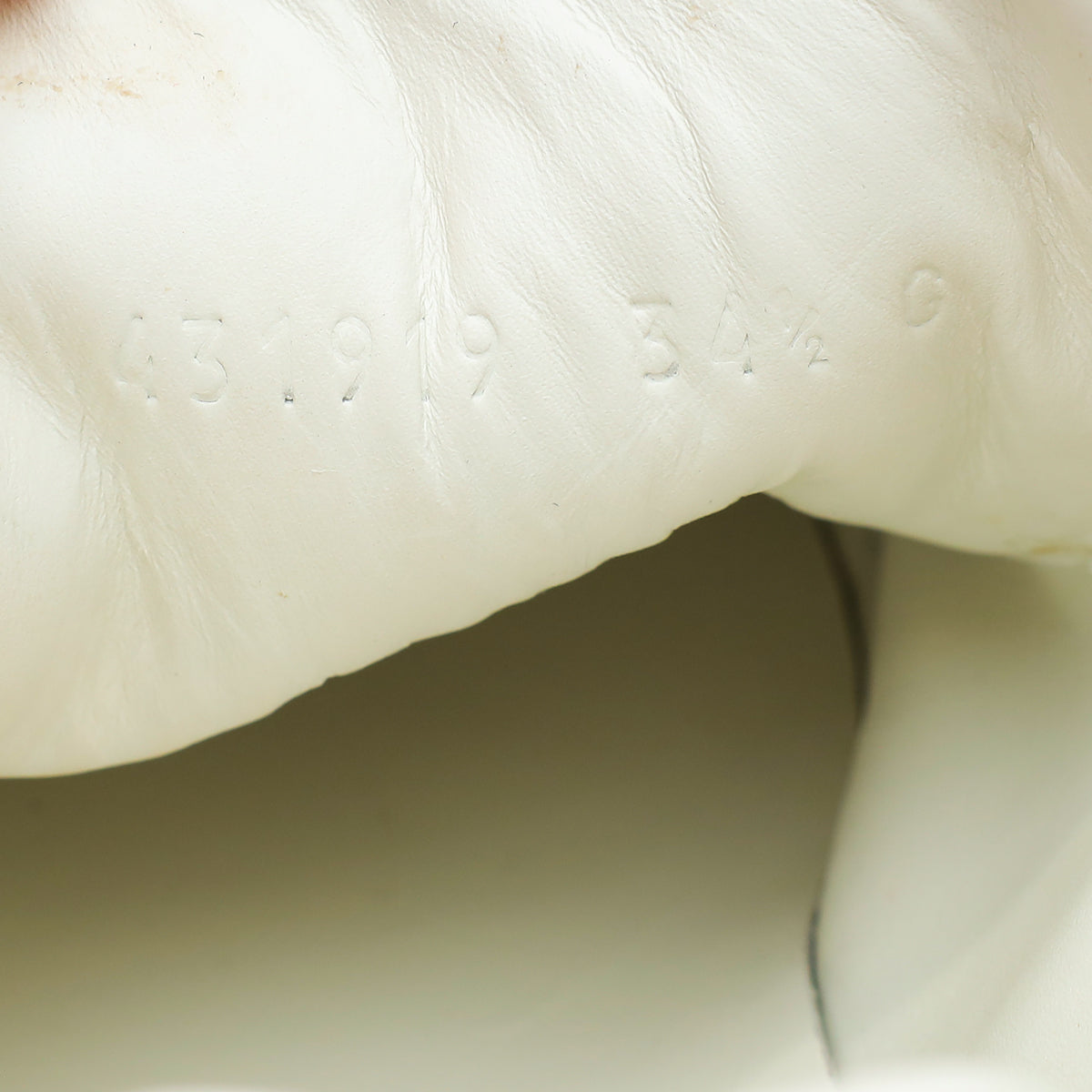 المادة : جلد أبيض مع شفاه كريستالية و ترتر مطرز بتفاصيل جلد الثعبان الأحمر على كعب أحد الحذاءين والأخضر على الآخر