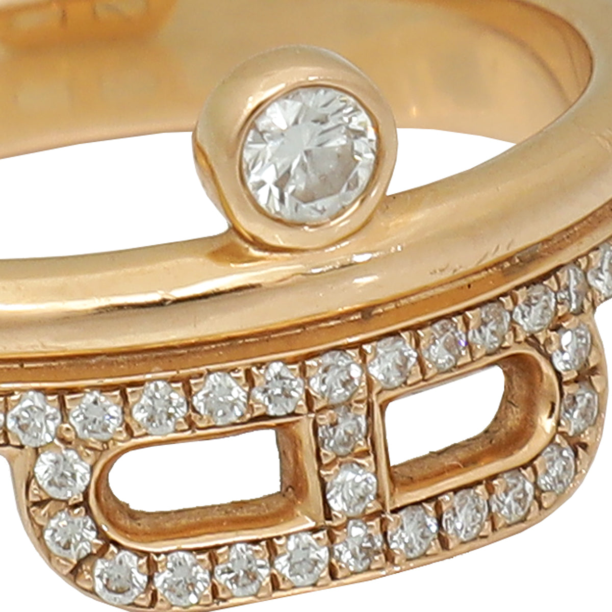 Hermes 18K Rose Gold Diamond Link D'Hermes Ring 53
