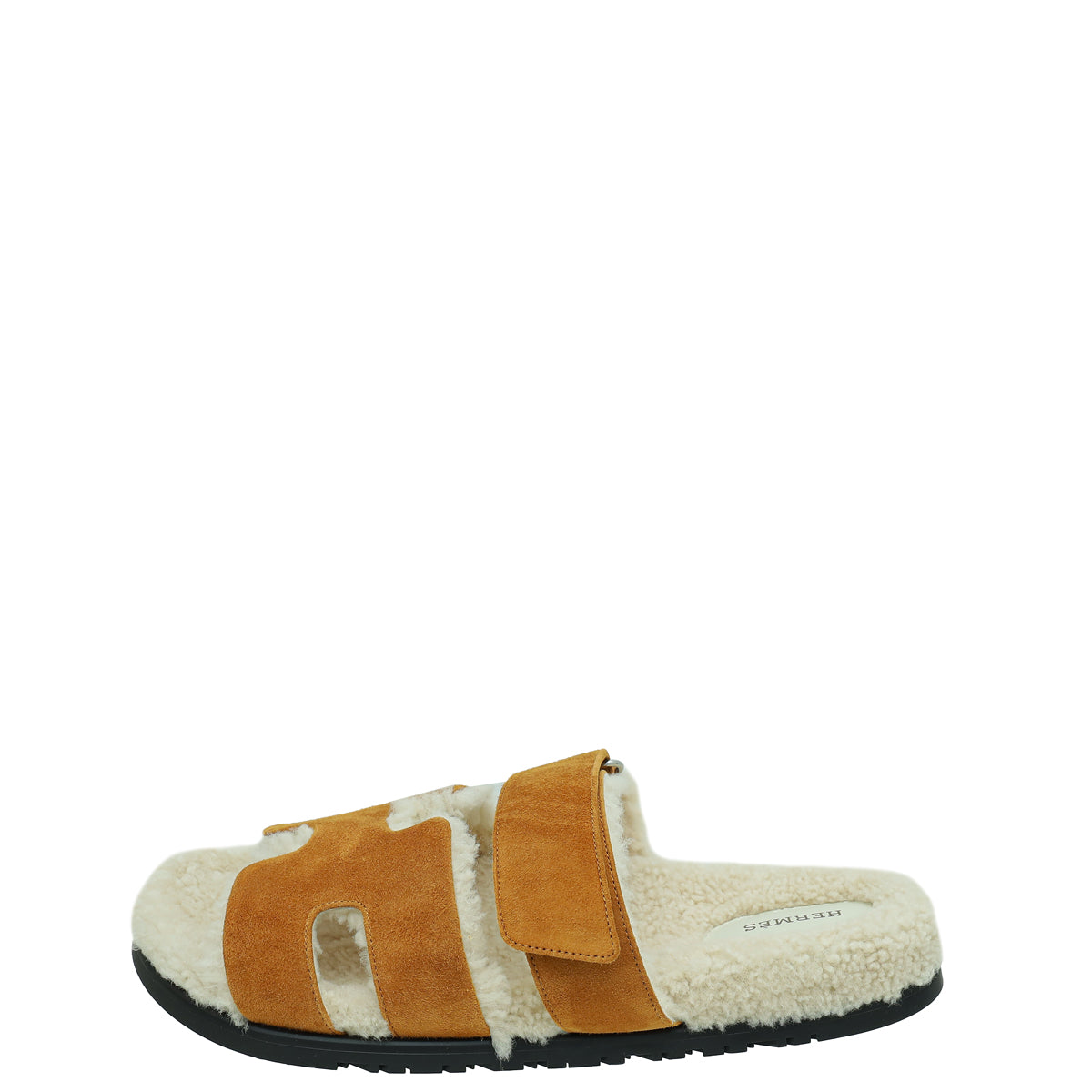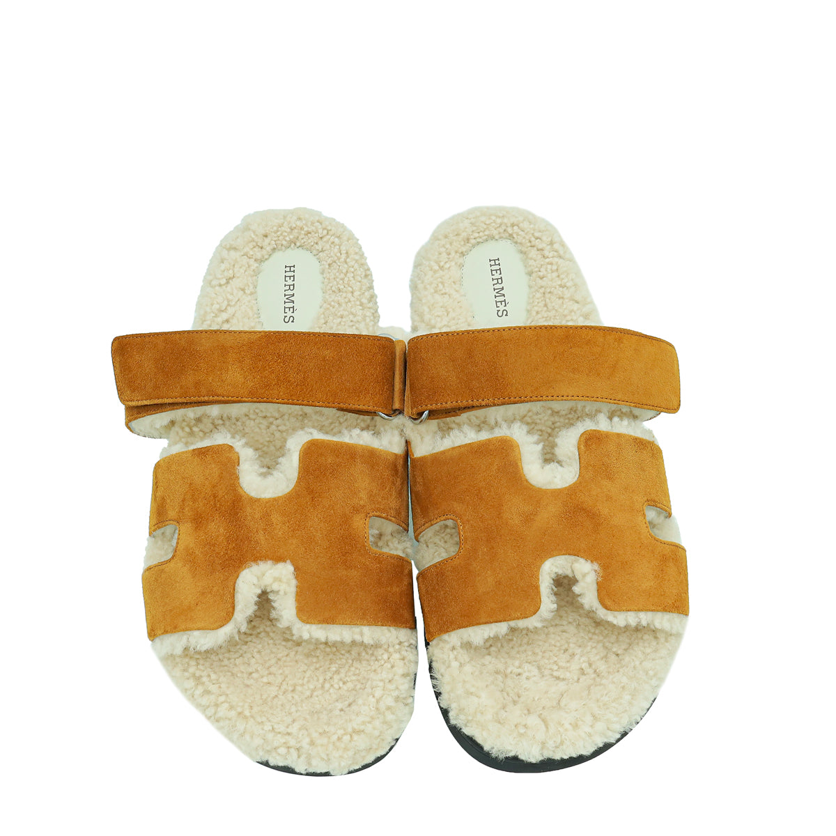 Hermes Bicolor Suede Shearling Chypre Sandals 43