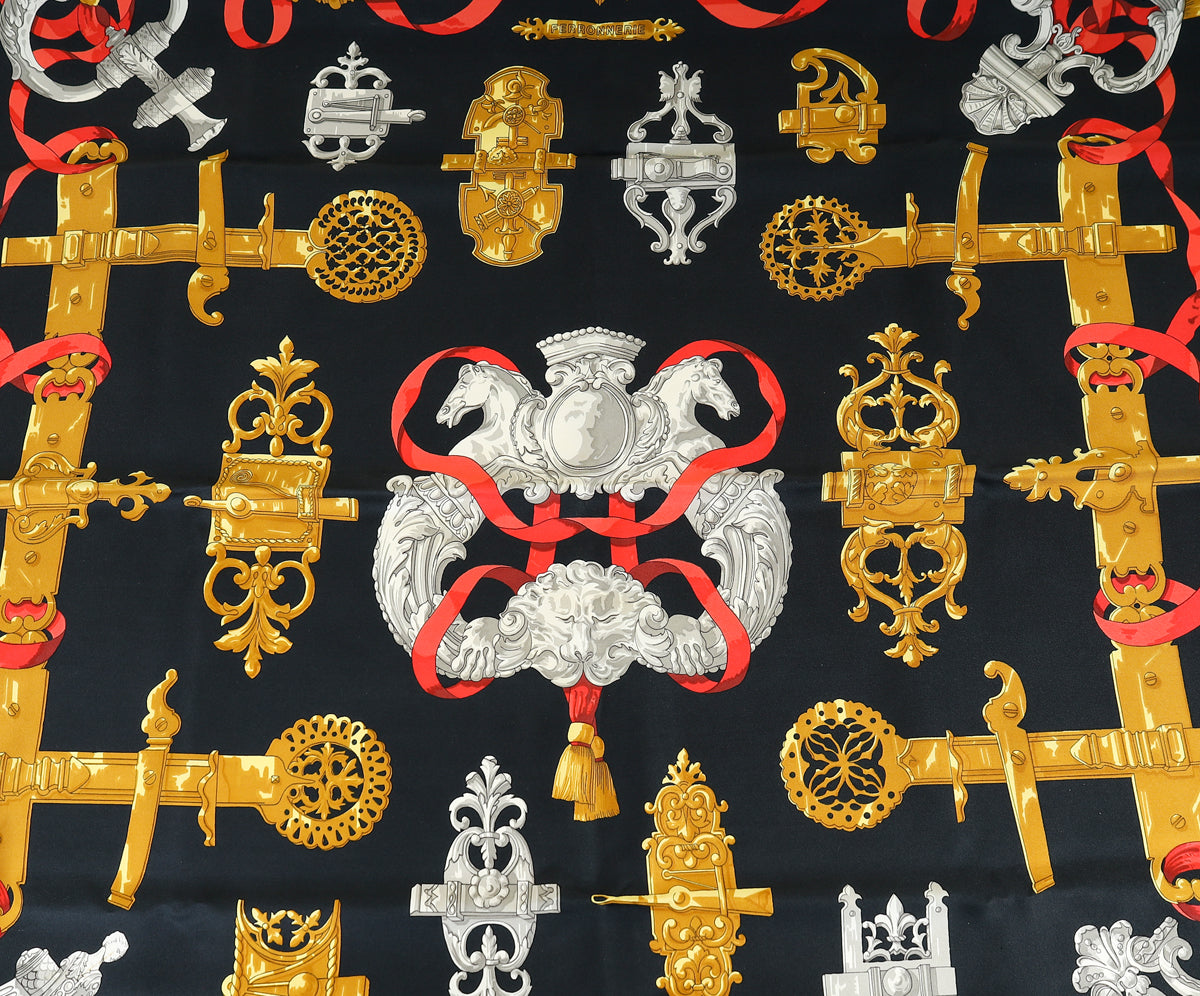Hermes Noir Multicolor Ferronnerie Silk Square Scarf 90