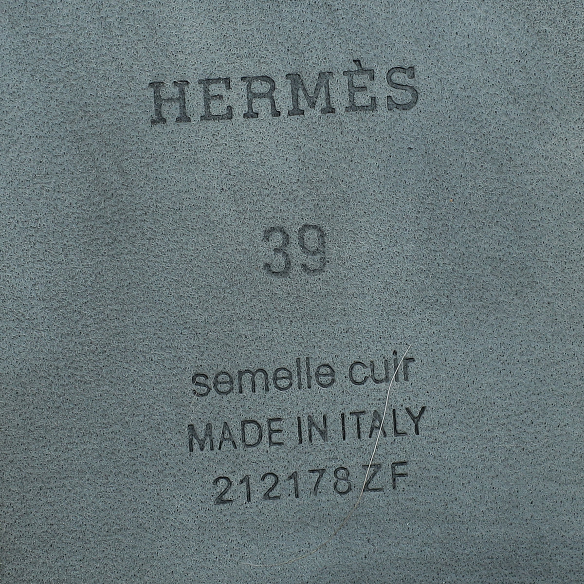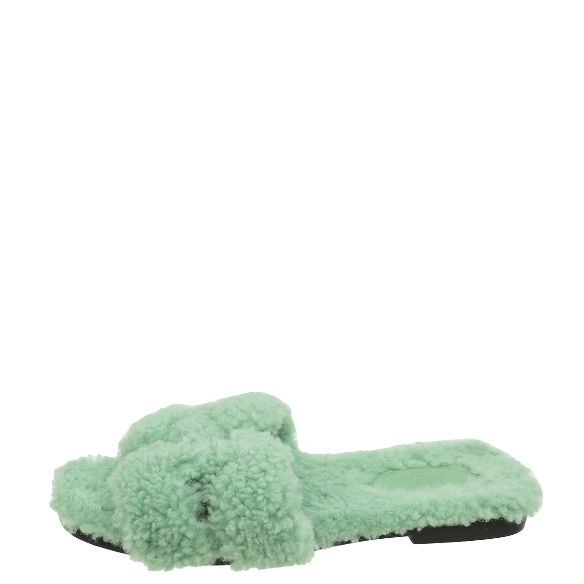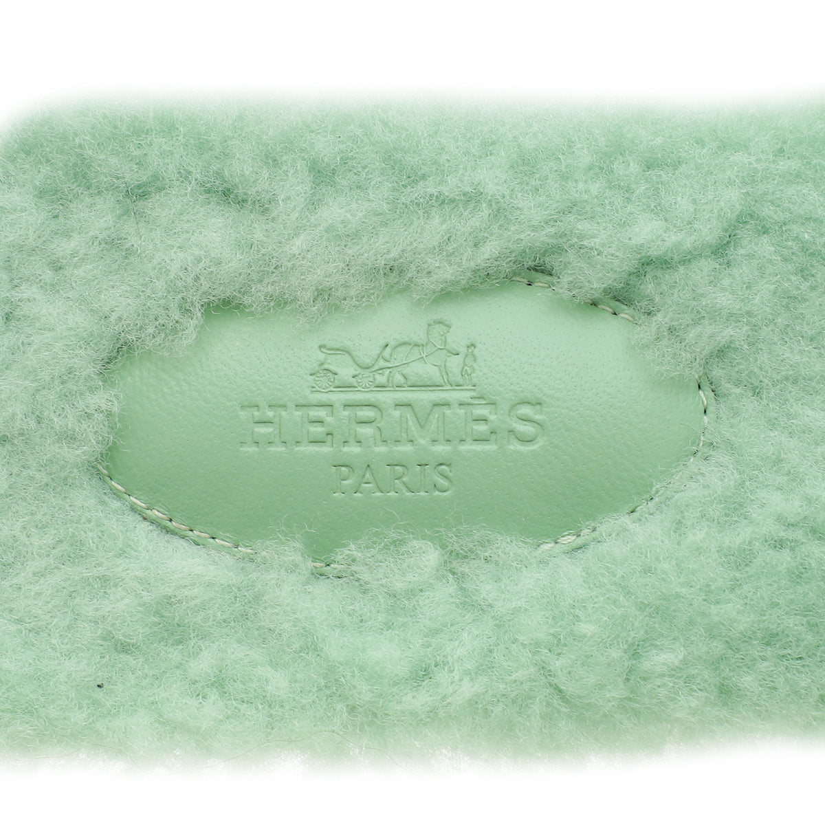 Hermes Vert D'Eau Shearling Oran Sandals 39