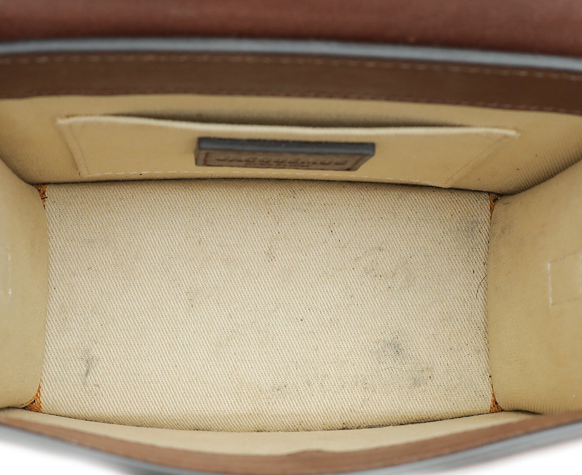 Exterior: good condition, with few scratches on the hardware, scratches on corners, few stain on leather and showing normal signs of use.