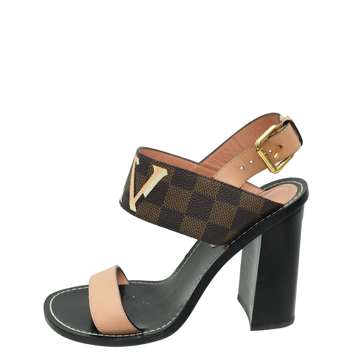 Louis Vuitton Damier Ebene Poudre Logo Print Passenger Sandals 39