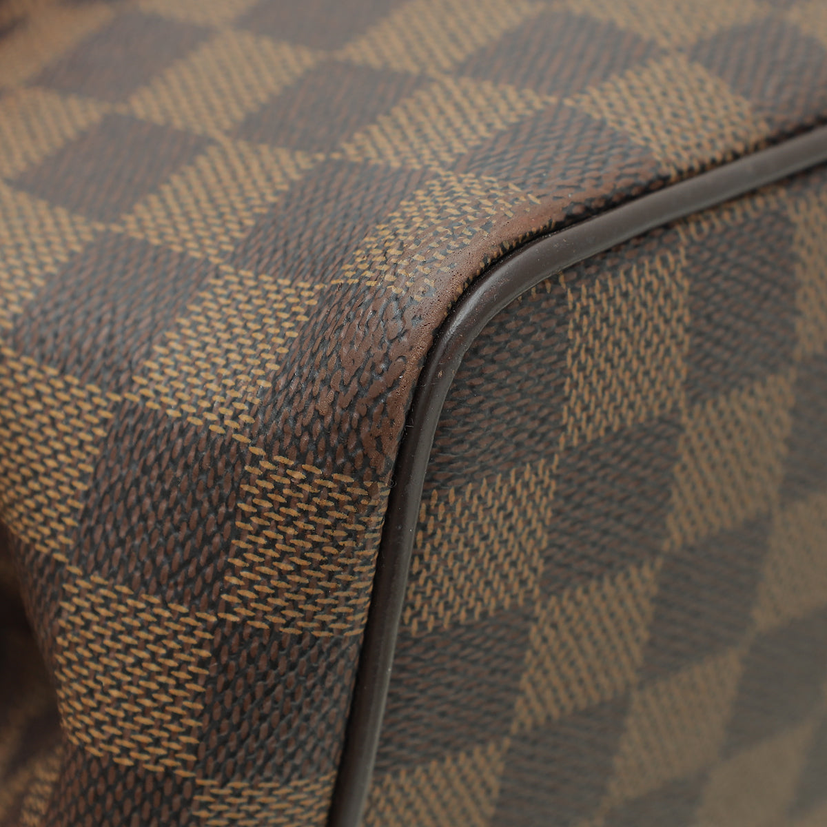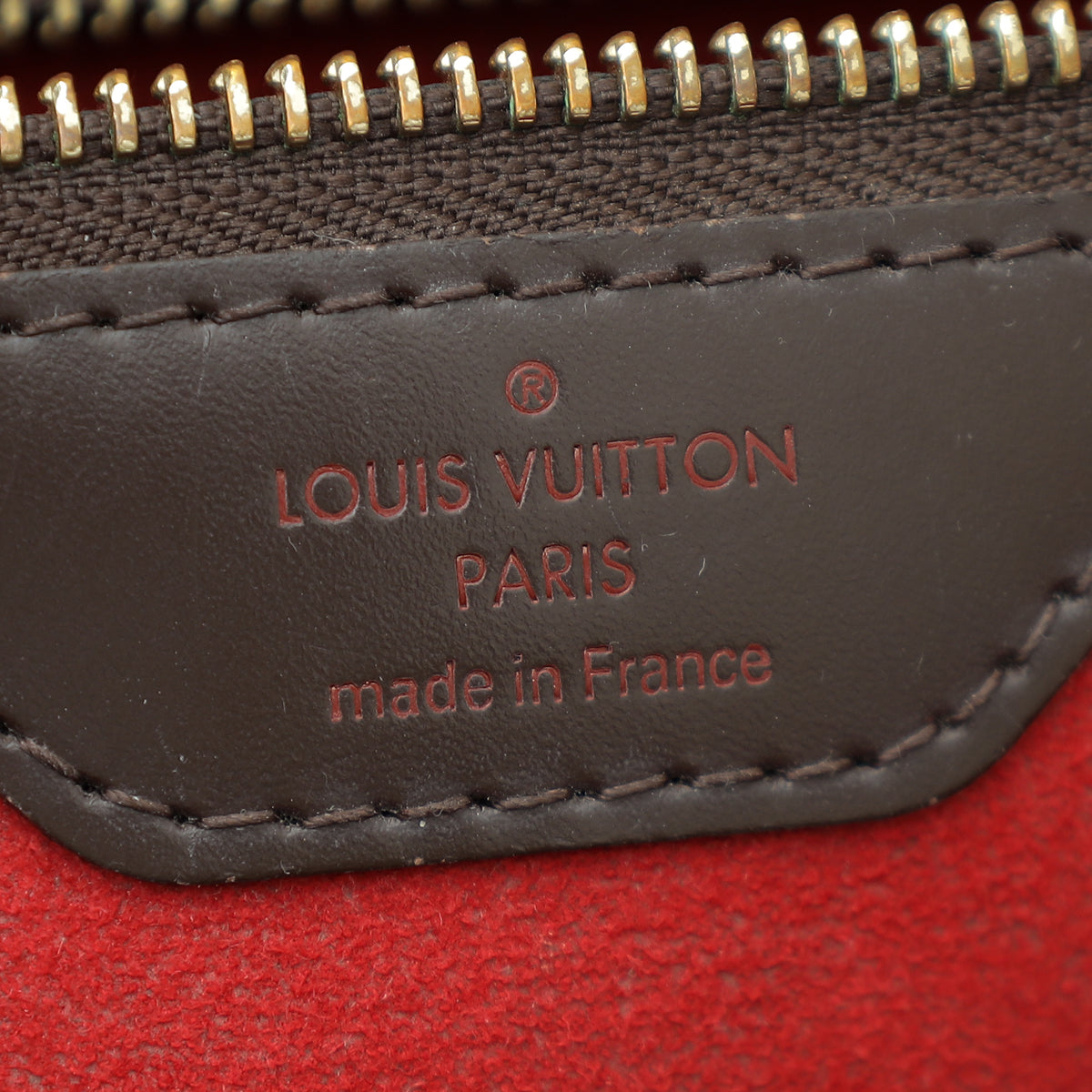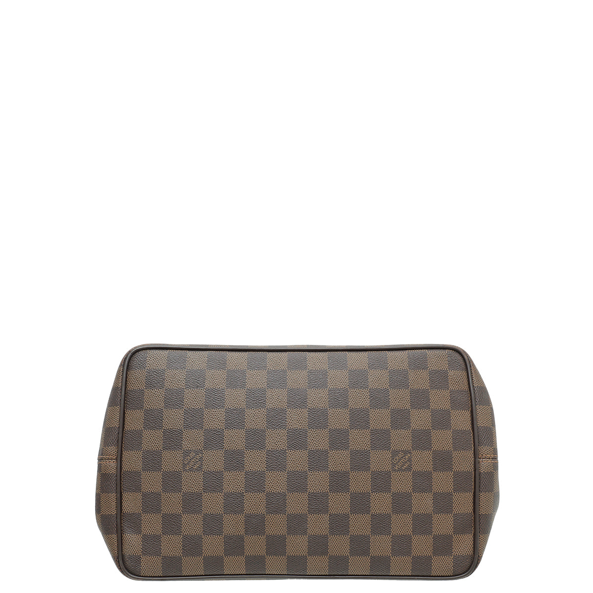 - المادة : قماش Damier Ebene المطلي مع زخرفة من الجلد البني الناعم