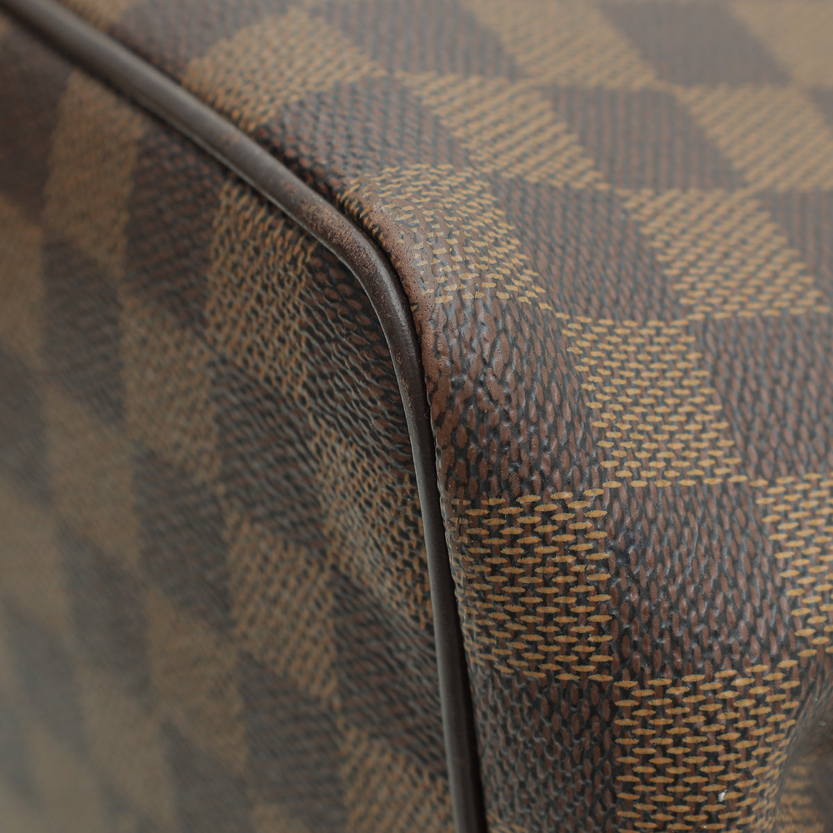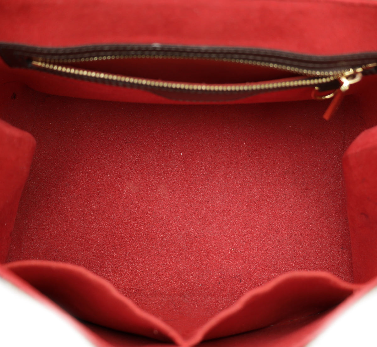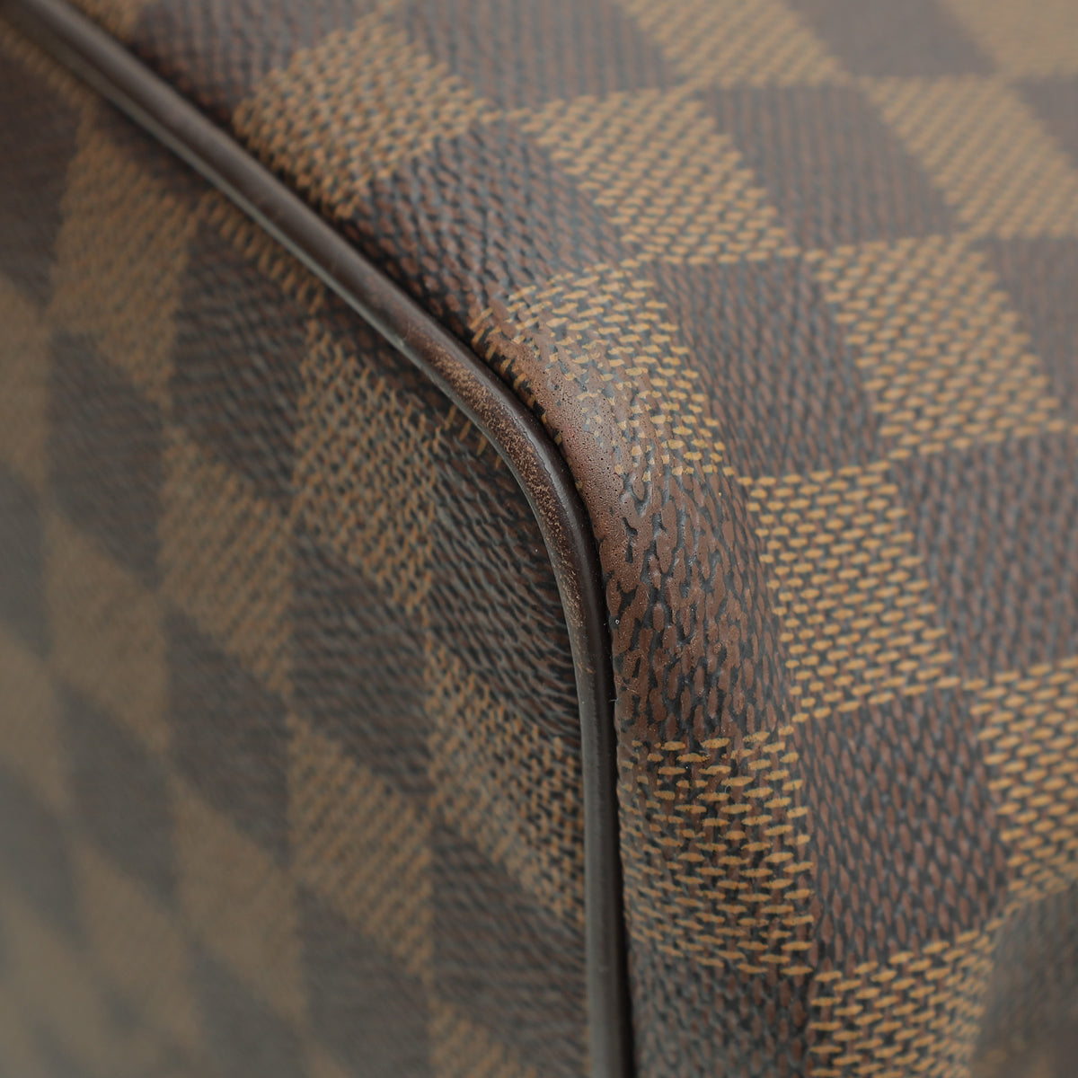- المادة : قماش Damier Ebene المطلي مع زخرفة من الجلد البني الناعم