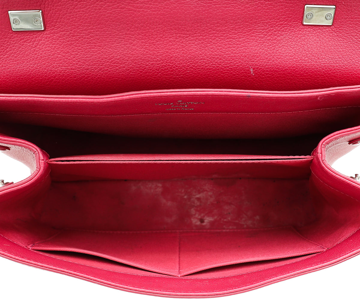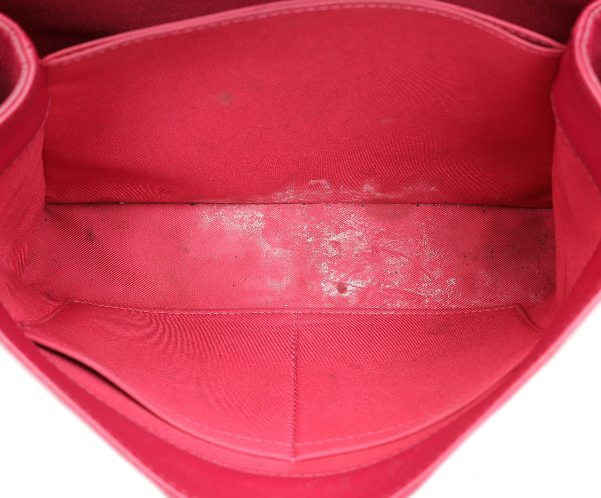 Exterior: good condition, with scratches on the hardware, corners, stain on leather and showing normal signs of use.