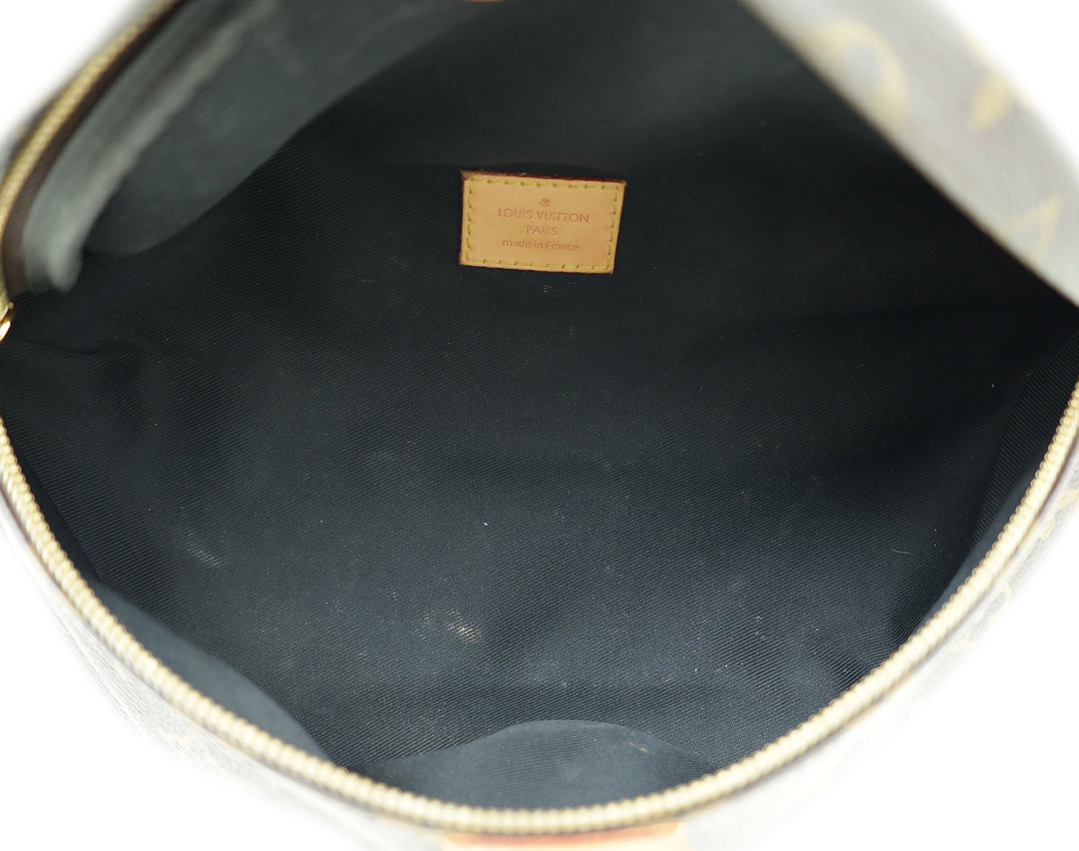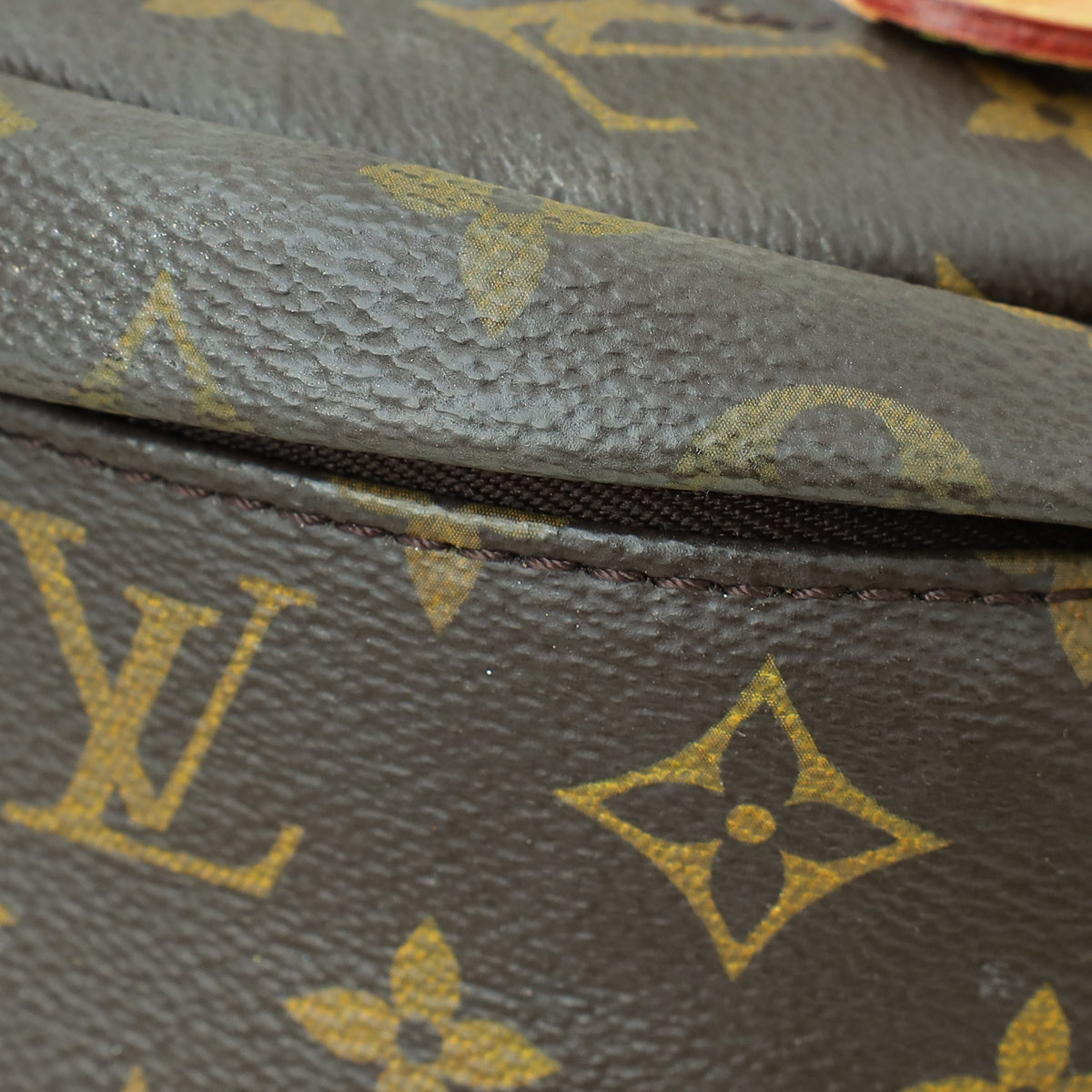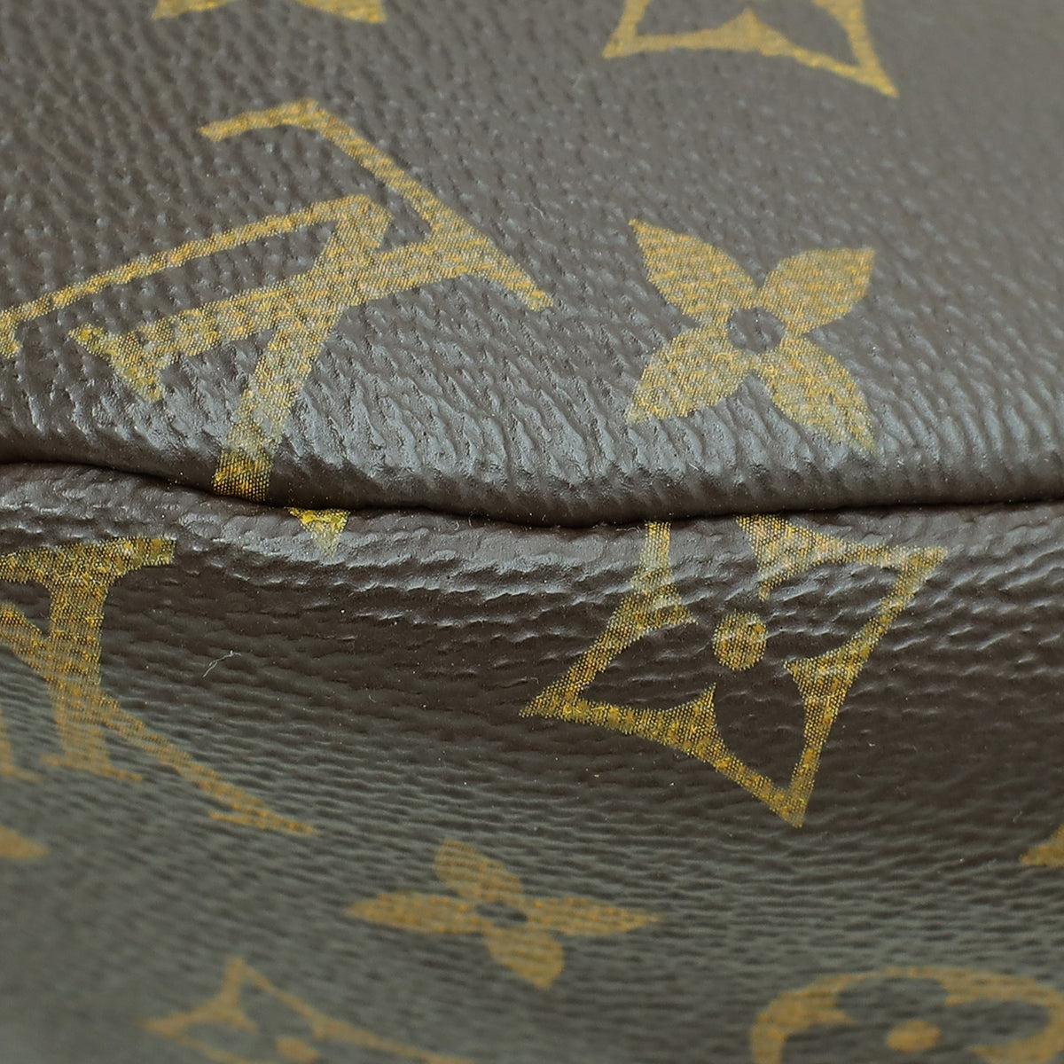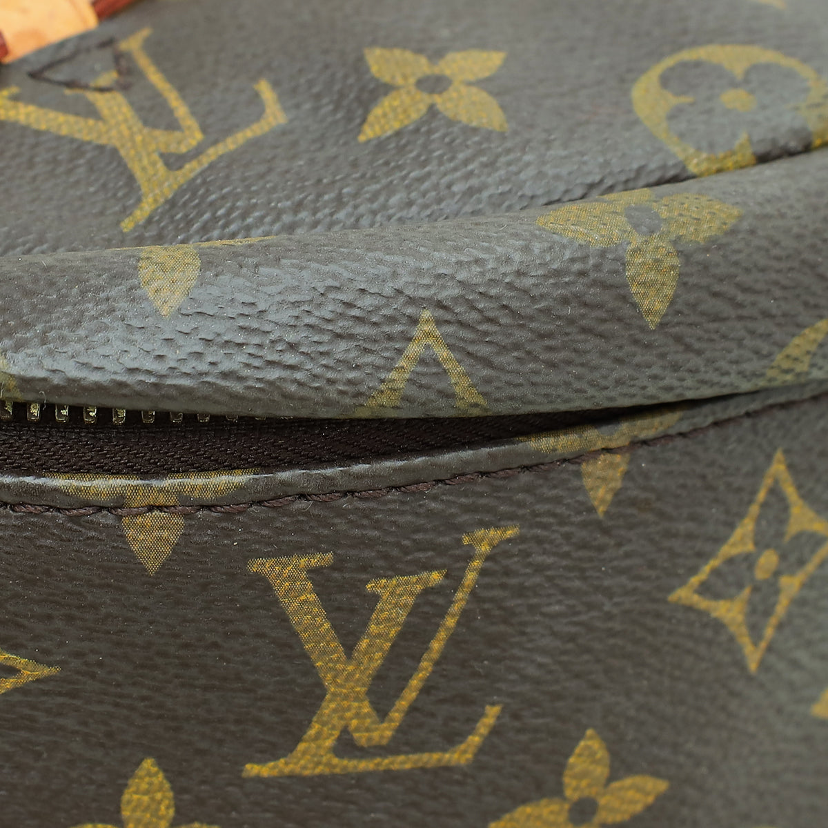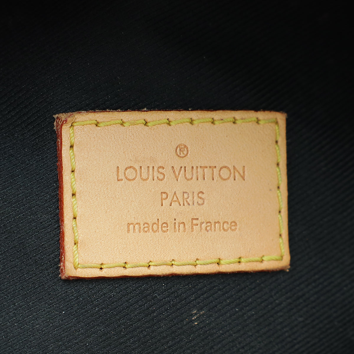 - المادة : قماش مطلي بنقش Monogram مع زخرفة من جلد البقر الطبيعي