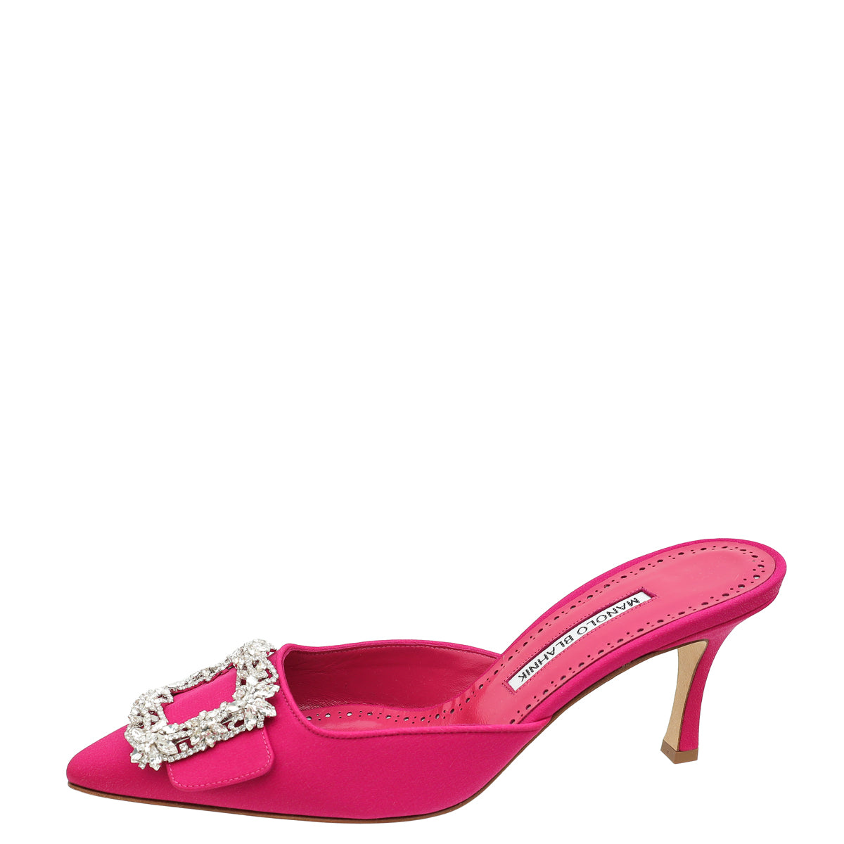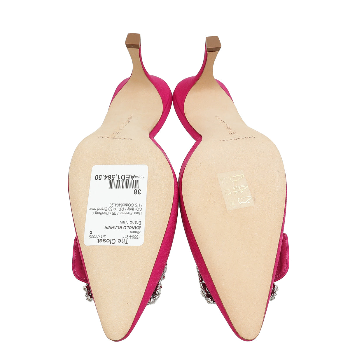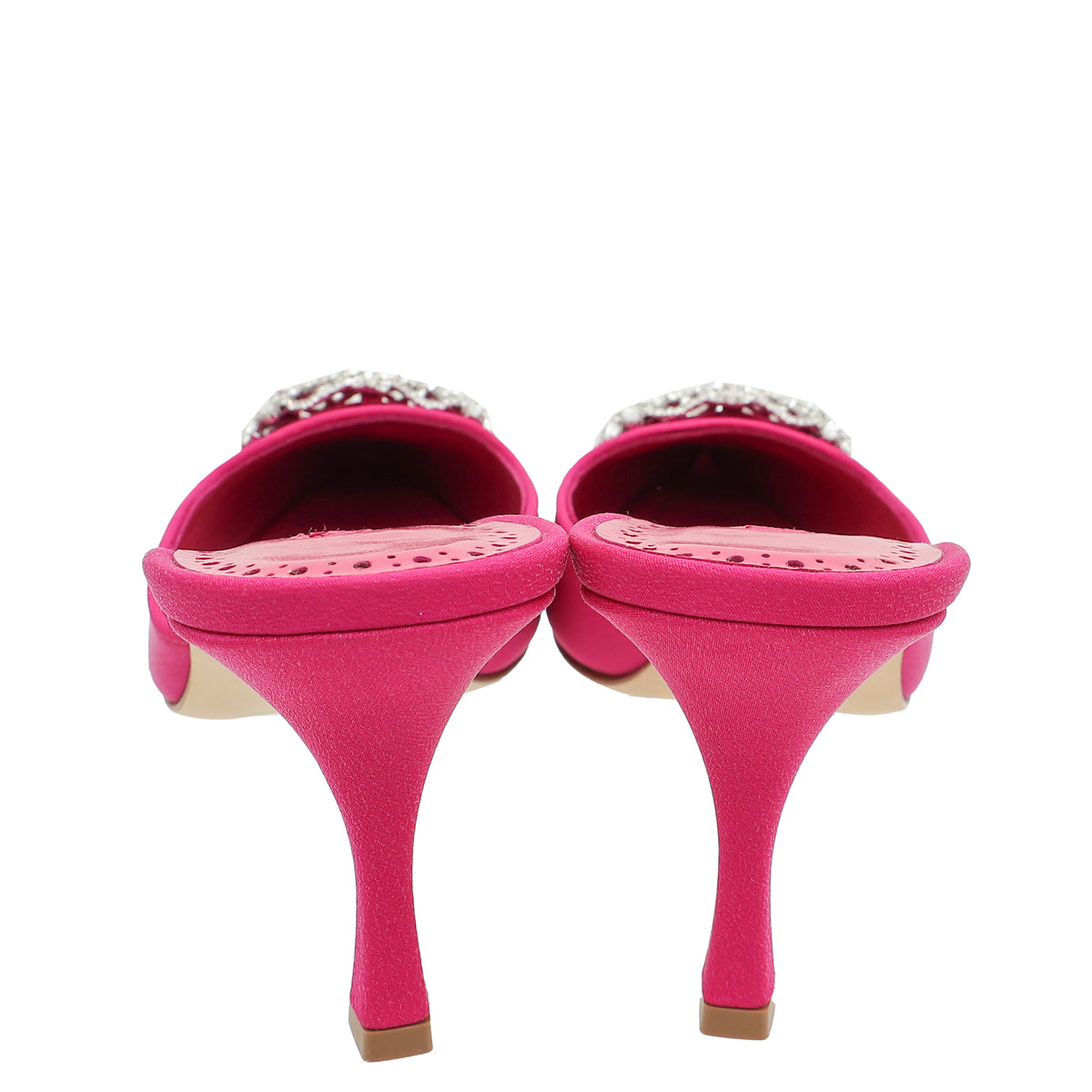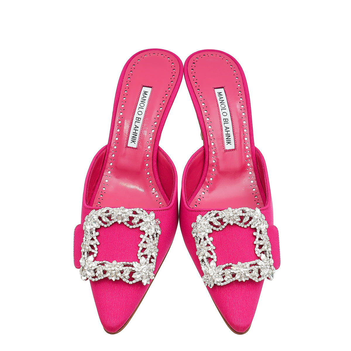 Manolo Blahnik Dark Fuchsia Double Maysale 50 Mules 38