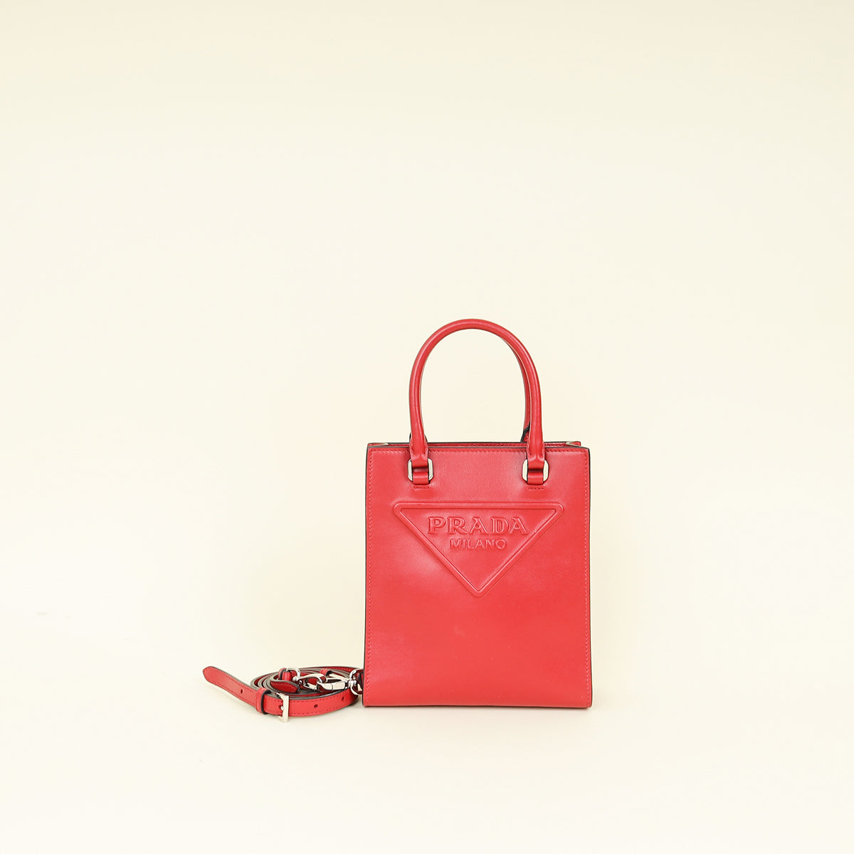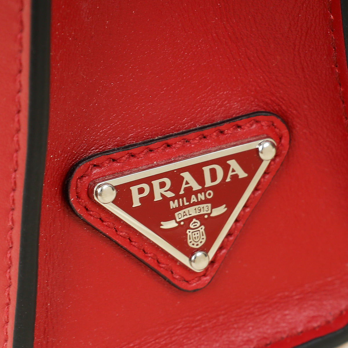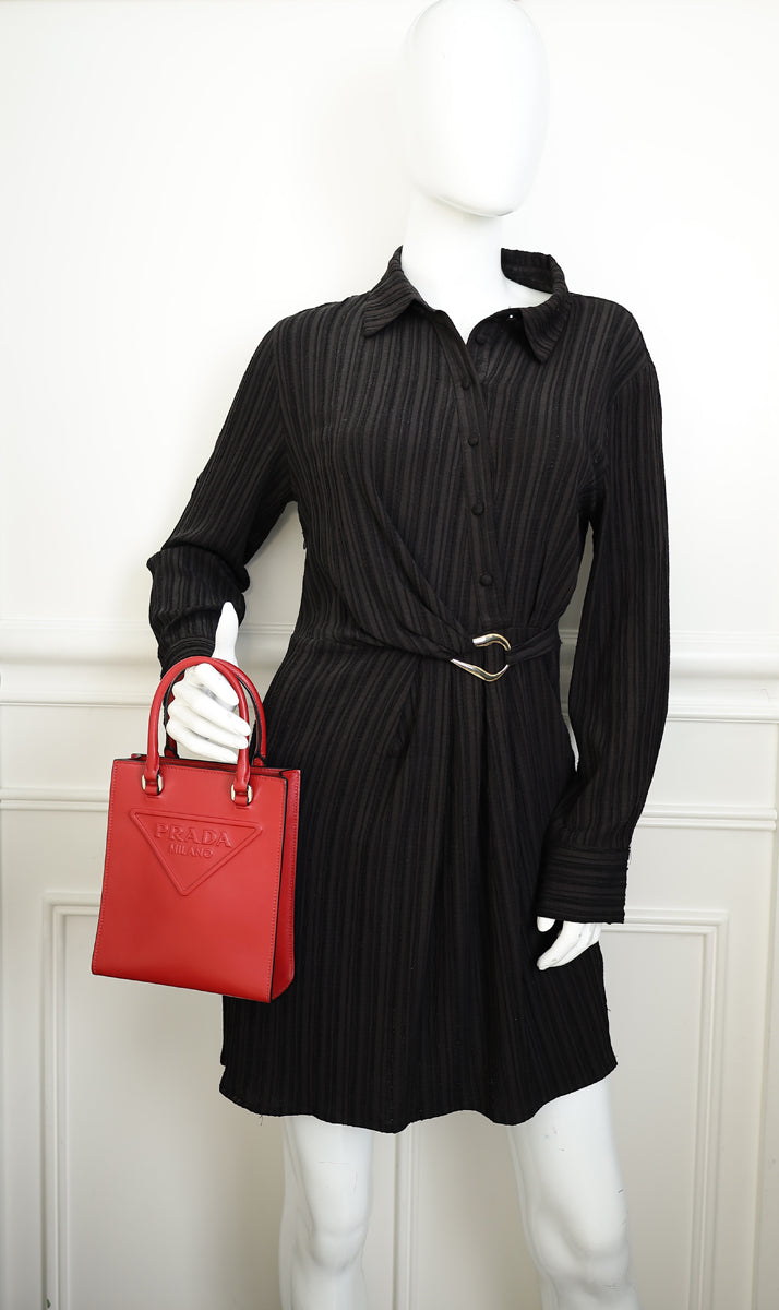 Prada Red Logo Drill Tote Bag