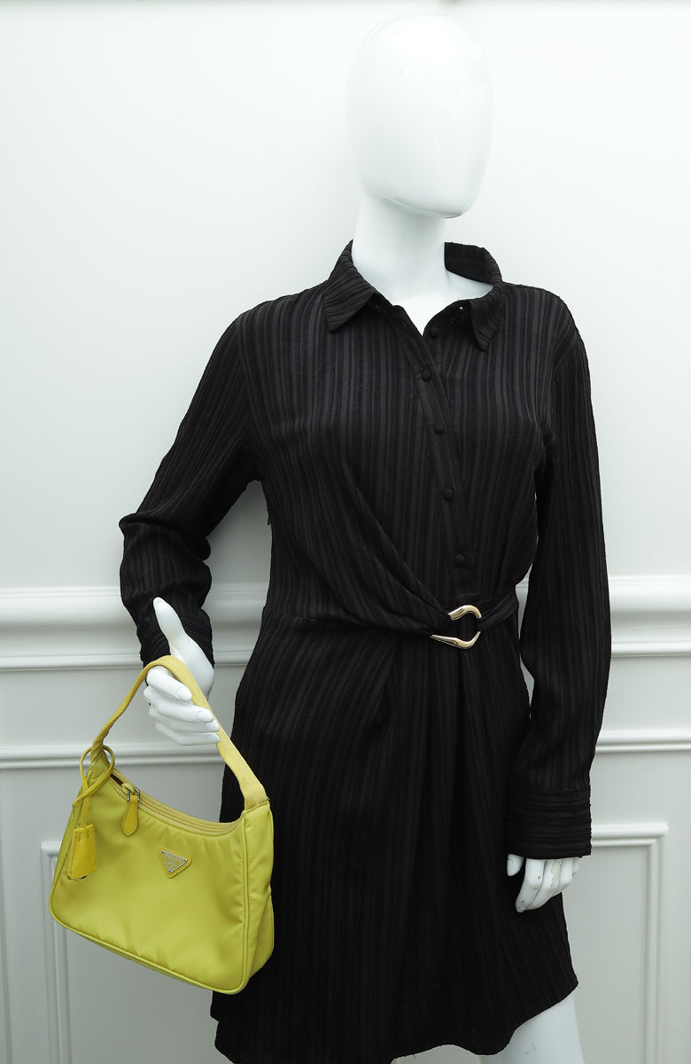 حقيبة برادا الصغيرة المصنوعة من النايلون المعاد إصداره 2000 باللون الأصفر