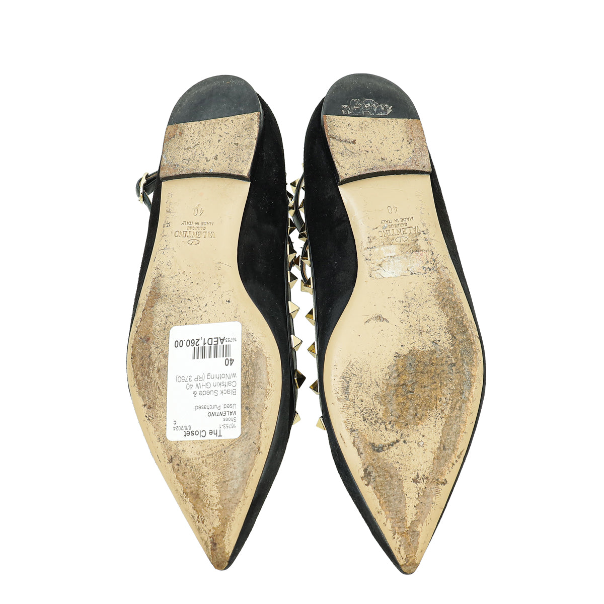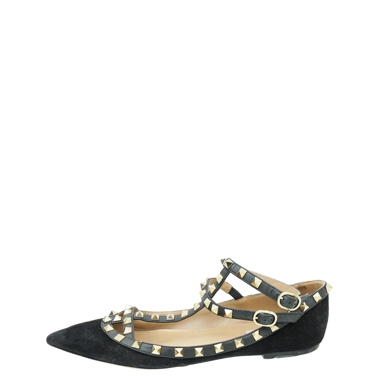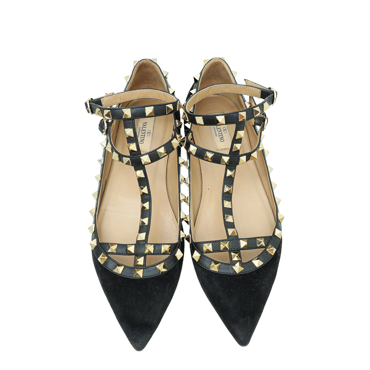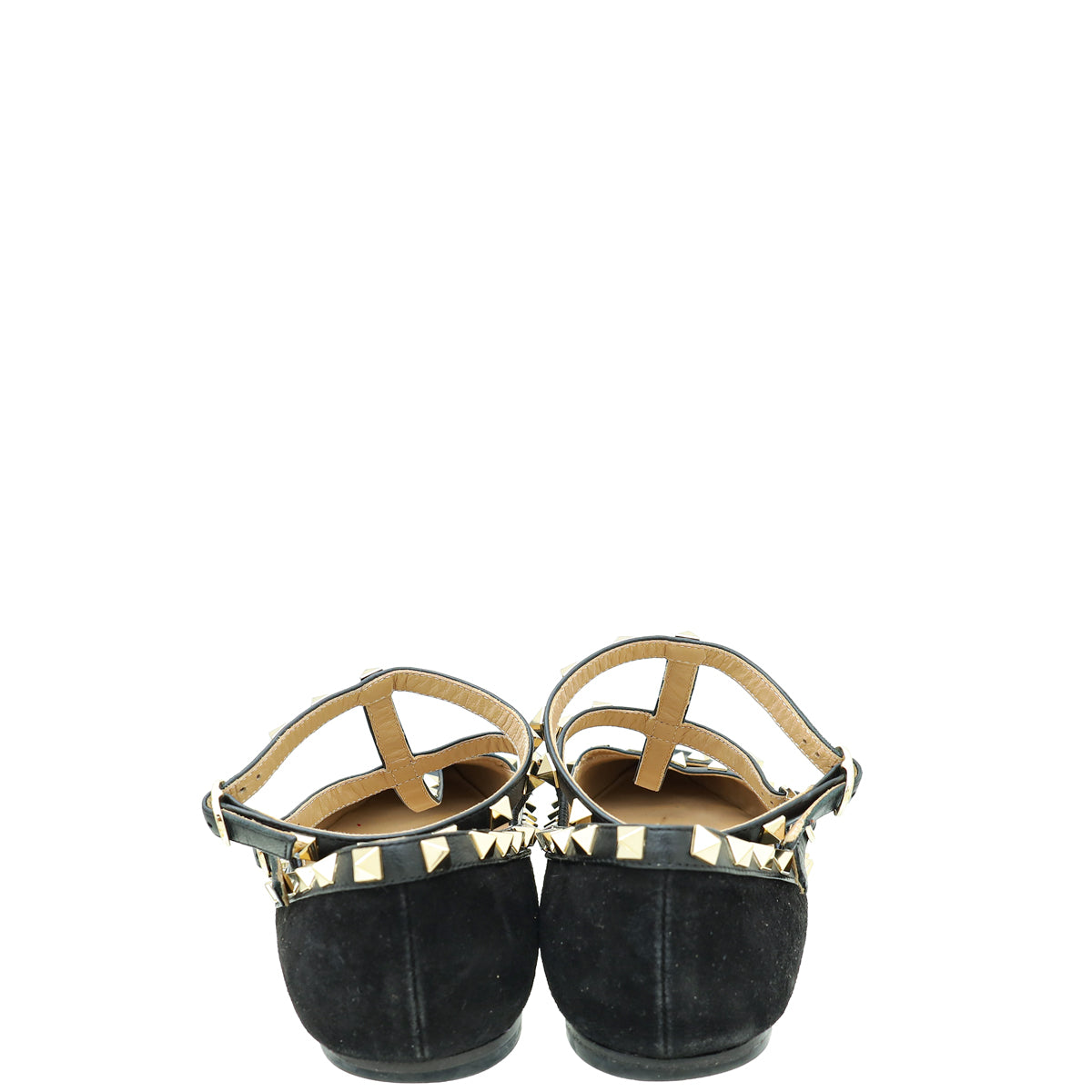 Valentino Black Rockstud Caged Ankle Strap Flats 40-Valentino-THE CLOSET
