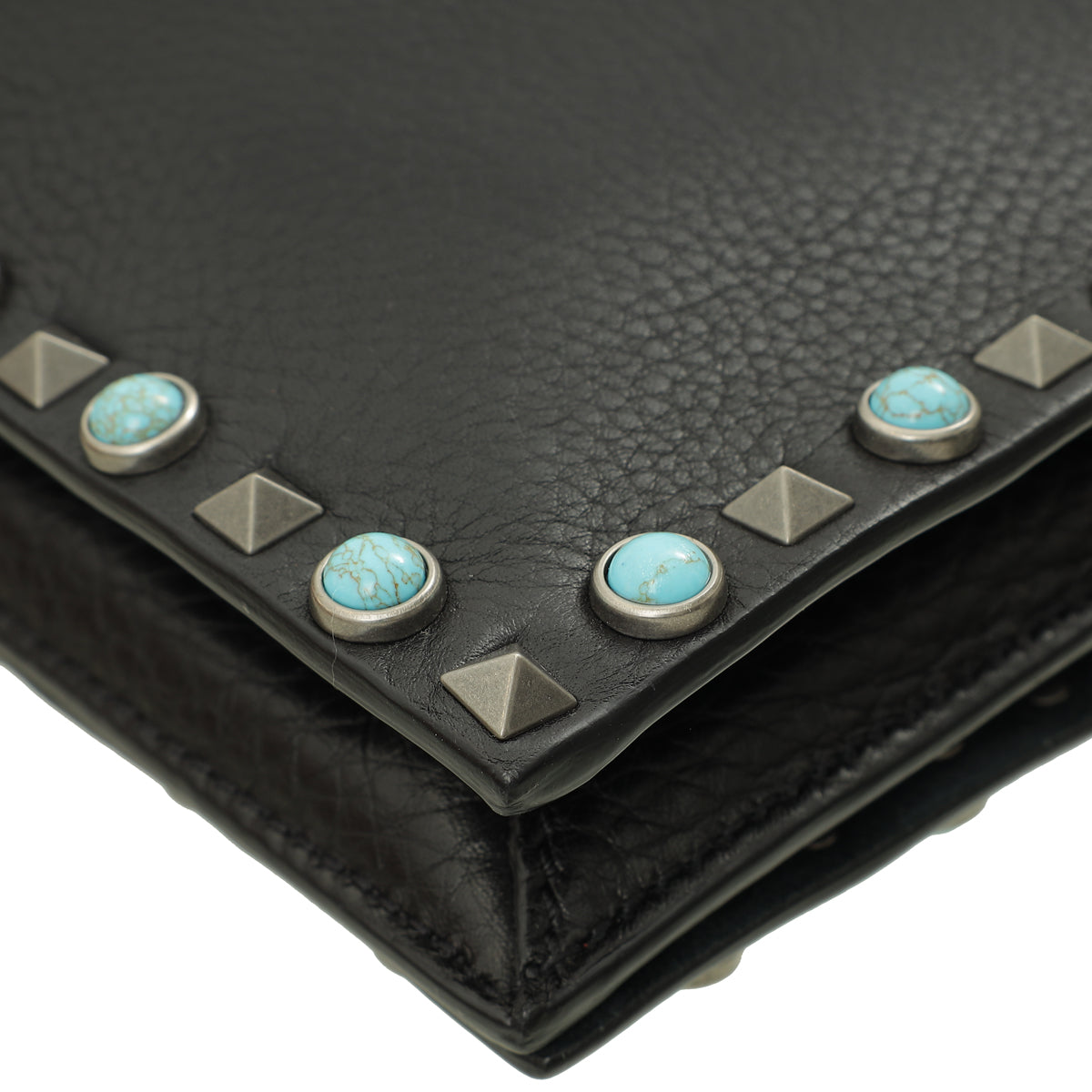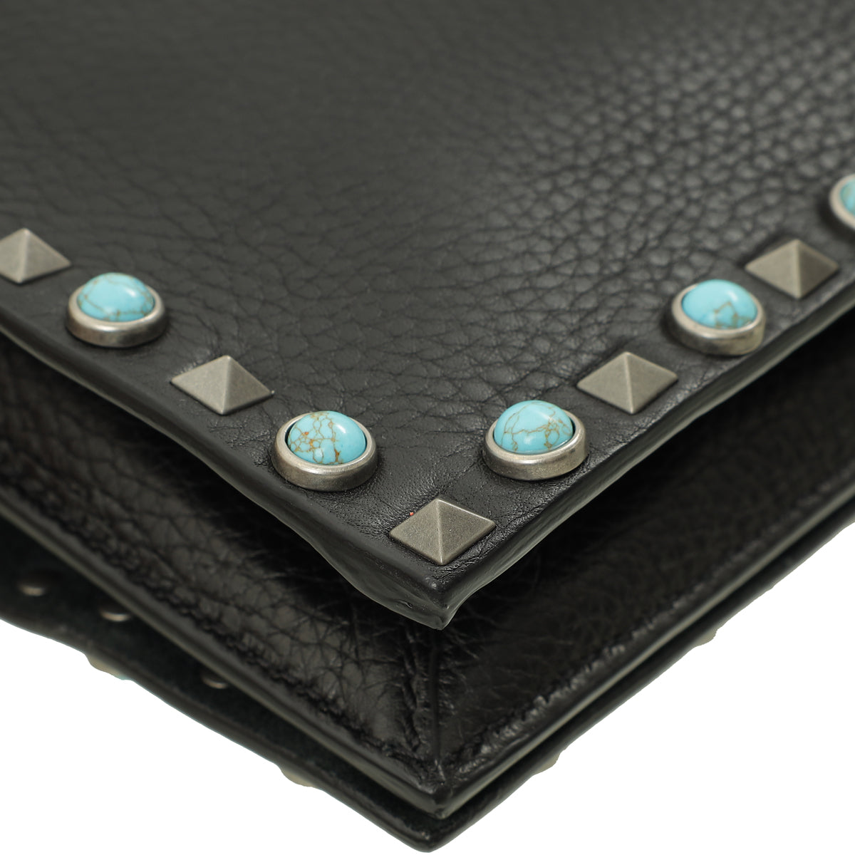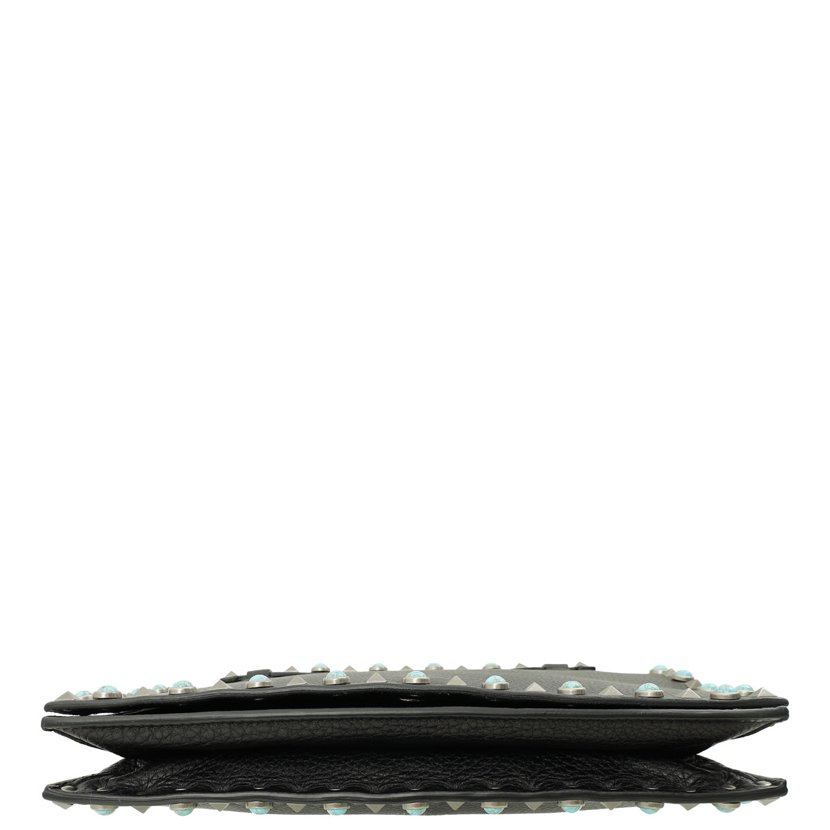 Valentino Black Rolling Rockstud Wristlet Clutch