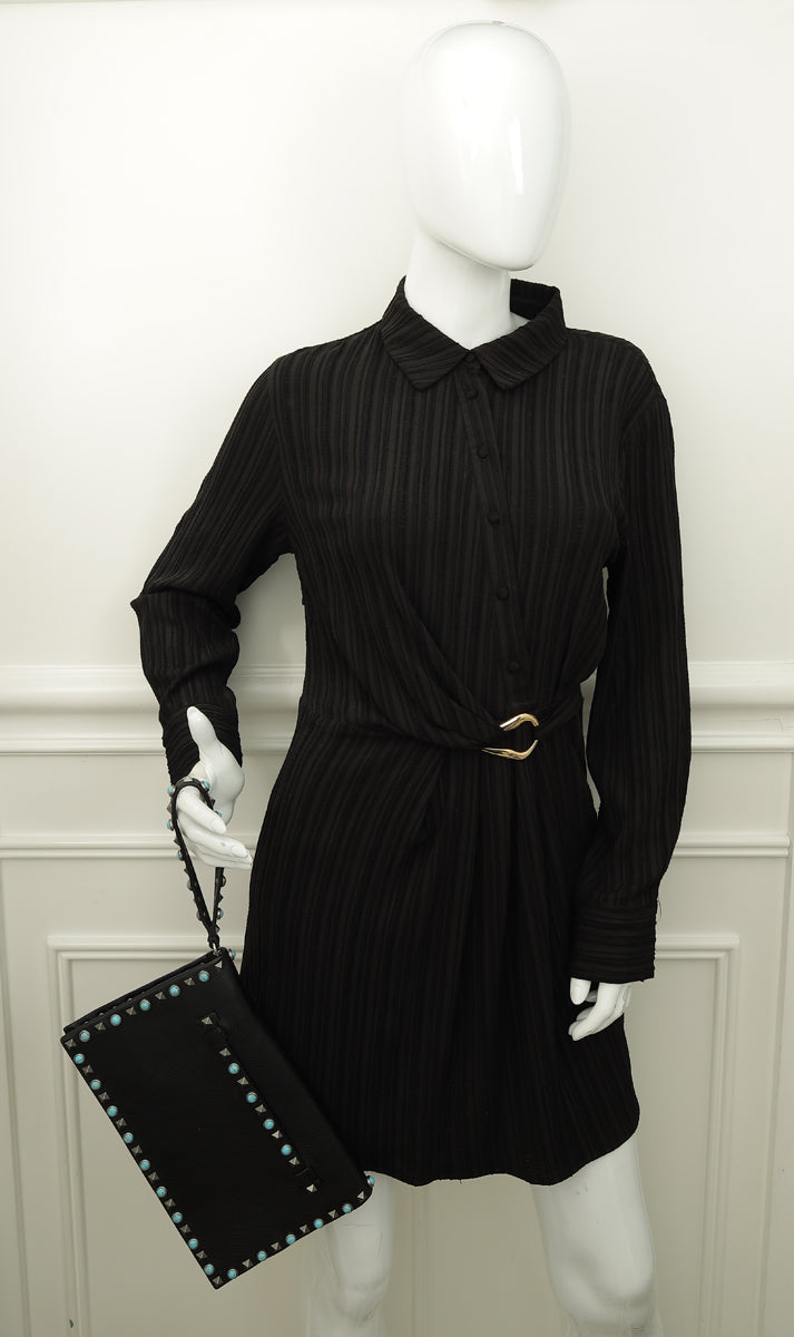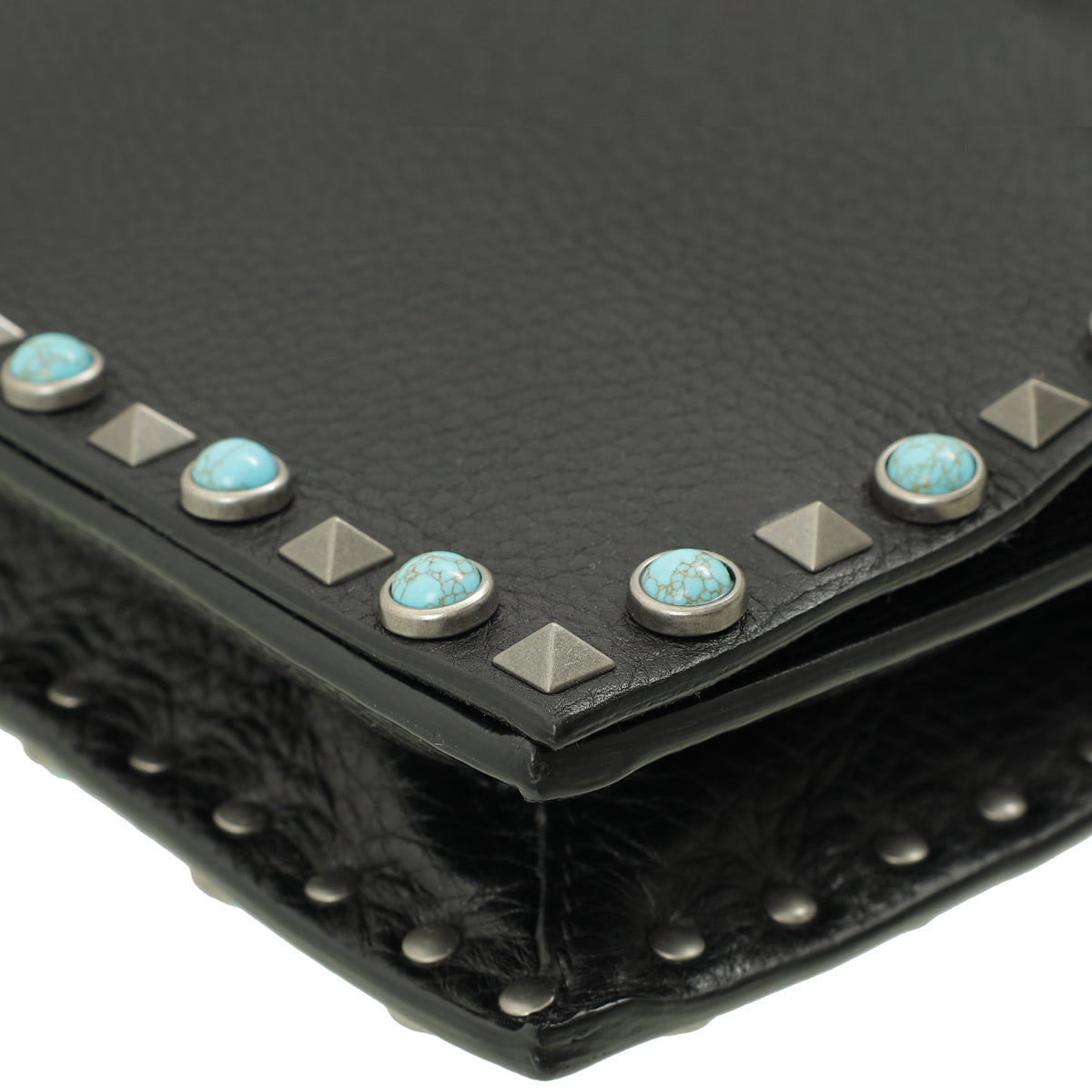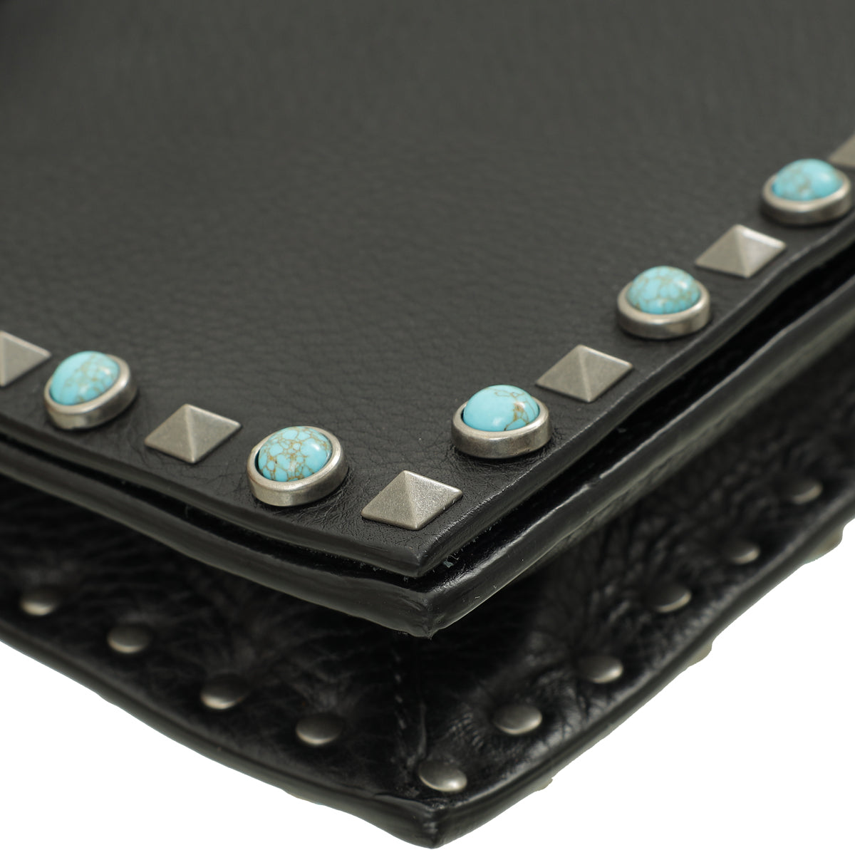 Valentino Black Rolling Rockstud Wristlet Clutch