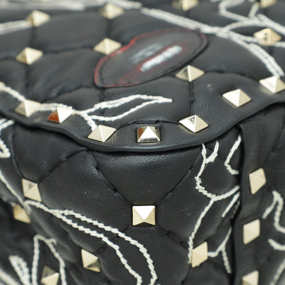 Valentino Black X Undercover Spike Rockstuds Embroidered Small Shoulder Bag