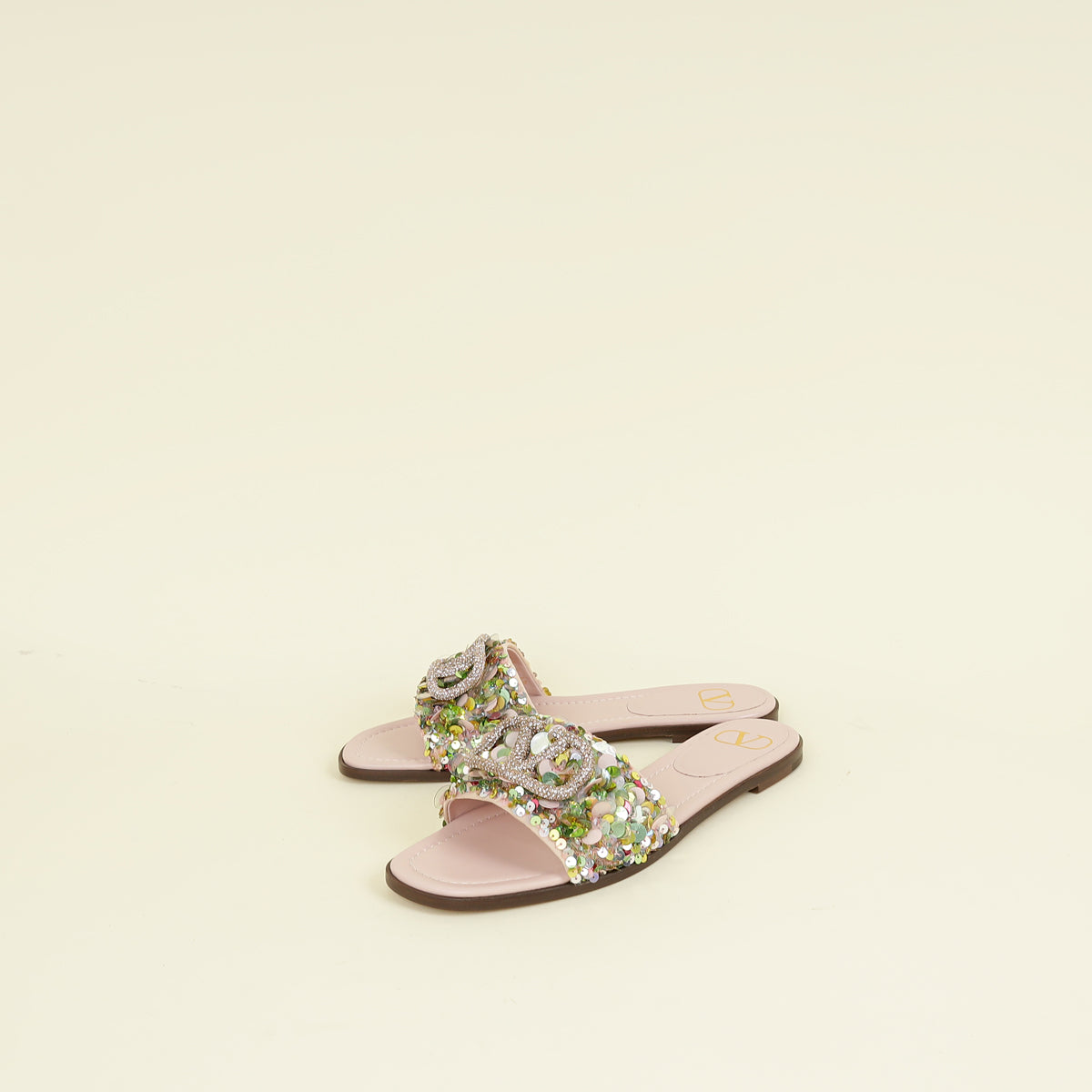 Valentino Multicolor VLogo Sequins Flats Slides 40