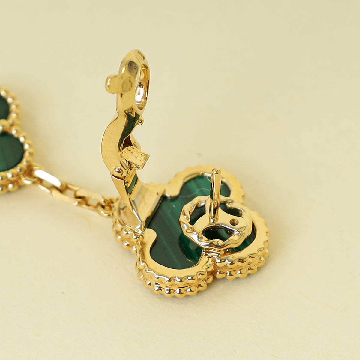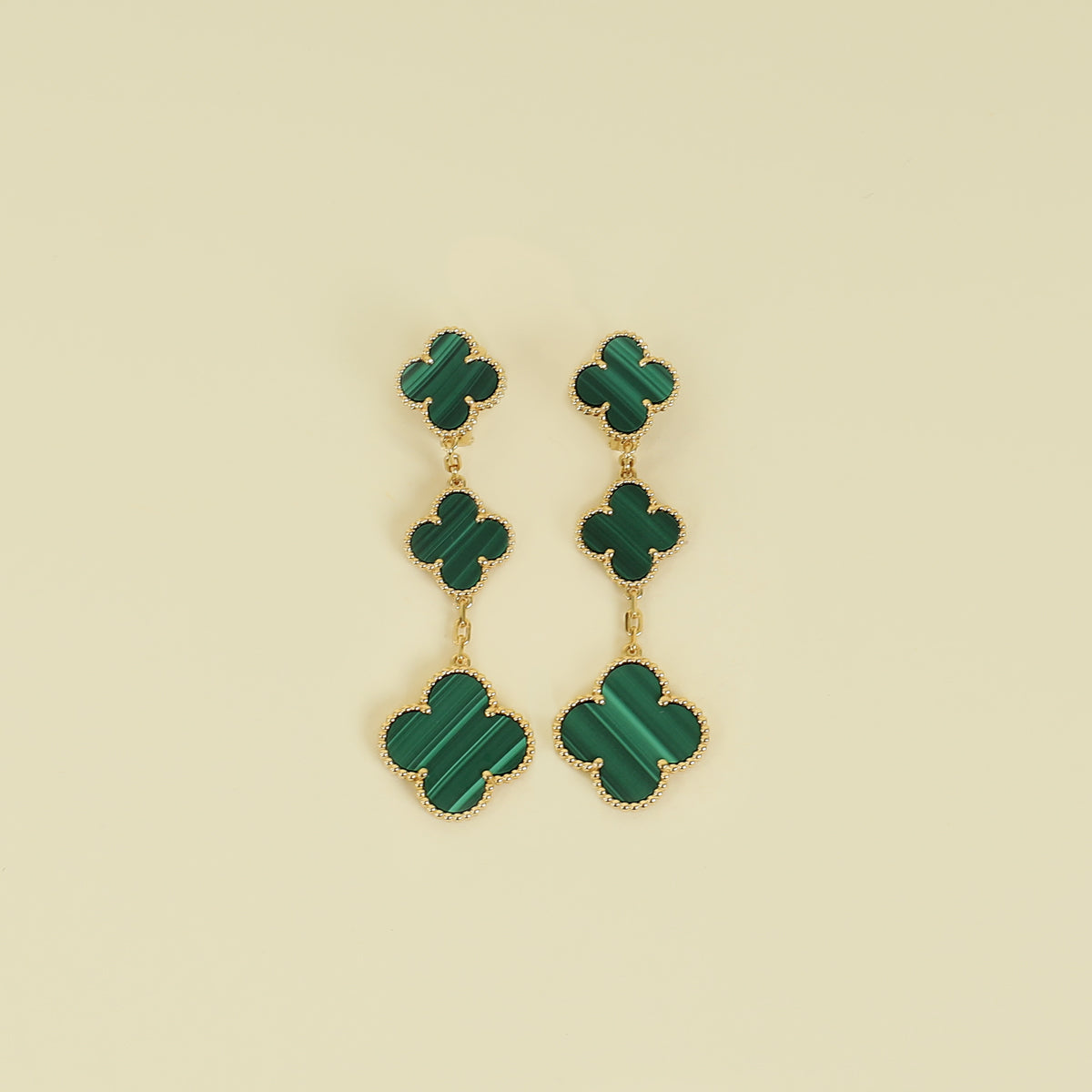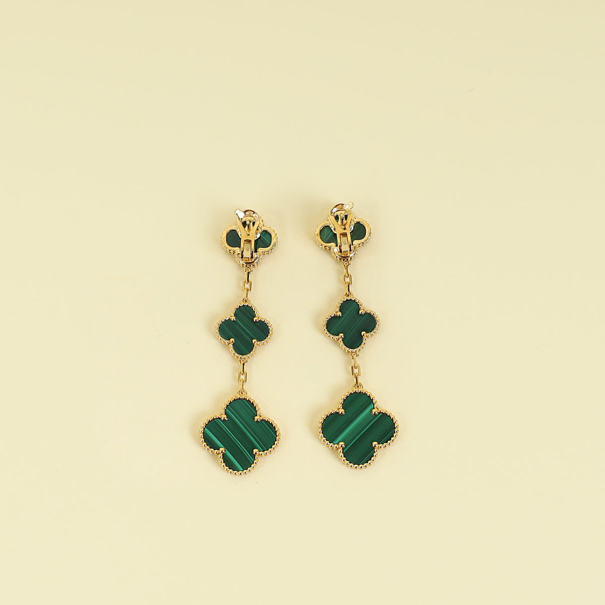 Van Cleef & Arpels 18K Yellow Gold Magic Alhambra Malachite 3 Motifs Earrings