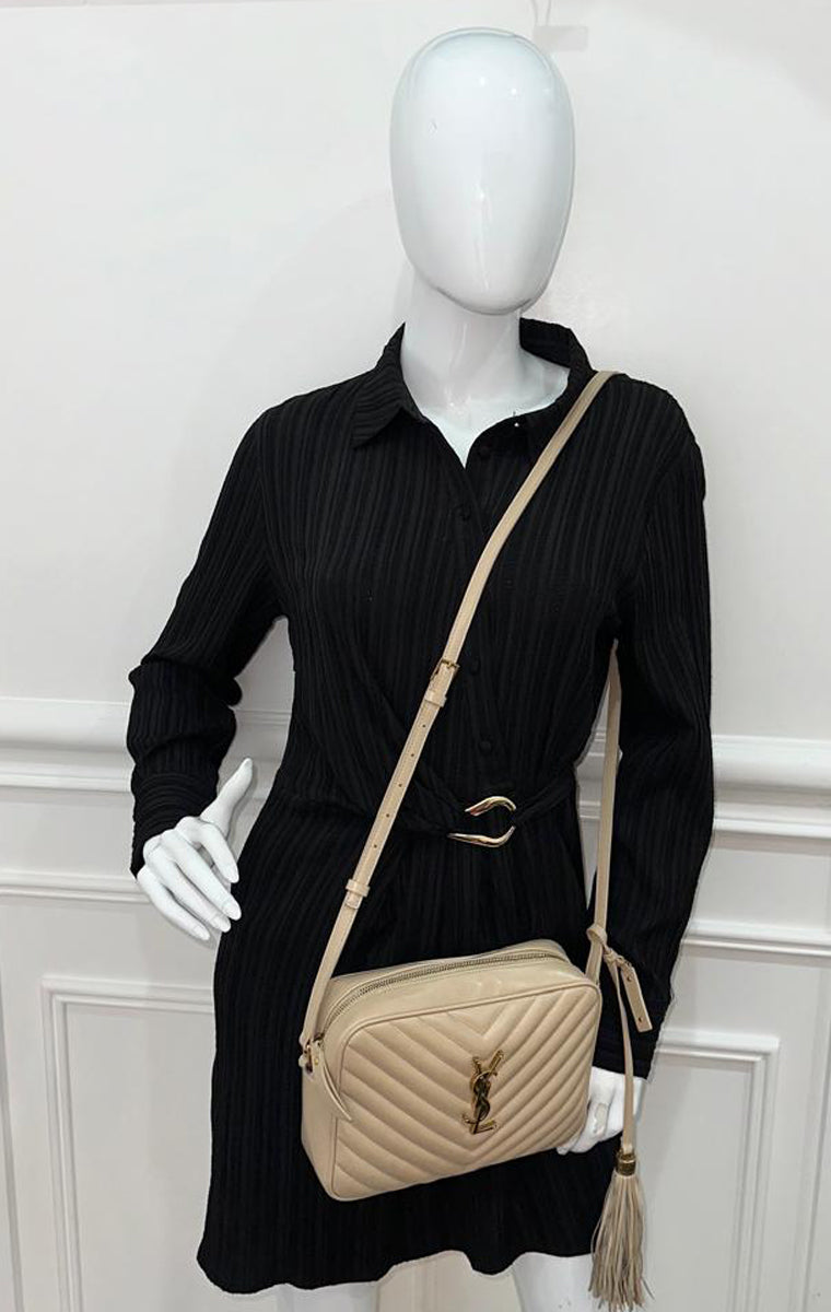 حقيبة كاميرا YSL باللون البيج Monogram Lou Tassel
