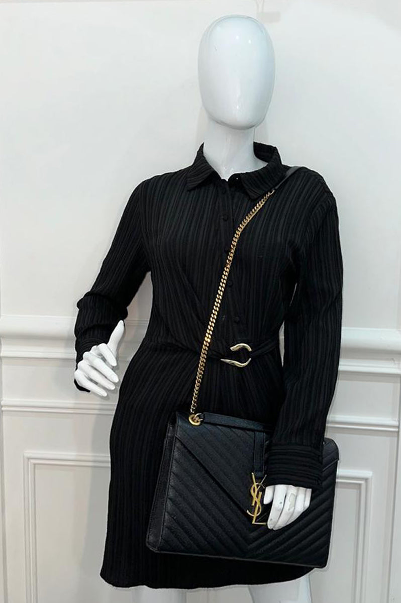 حقيبة كبيرة من YSL باللون الأسود Monogram Chevron