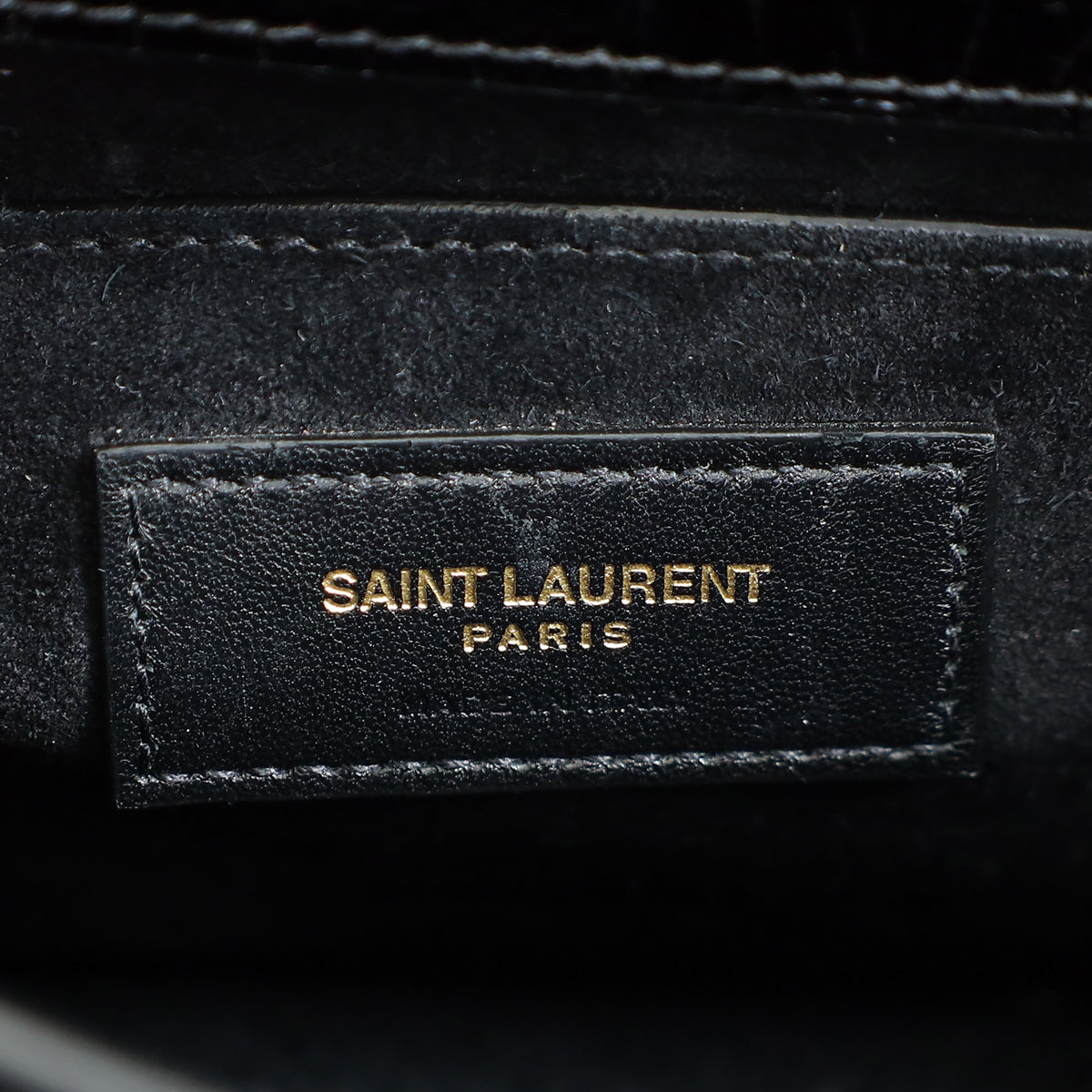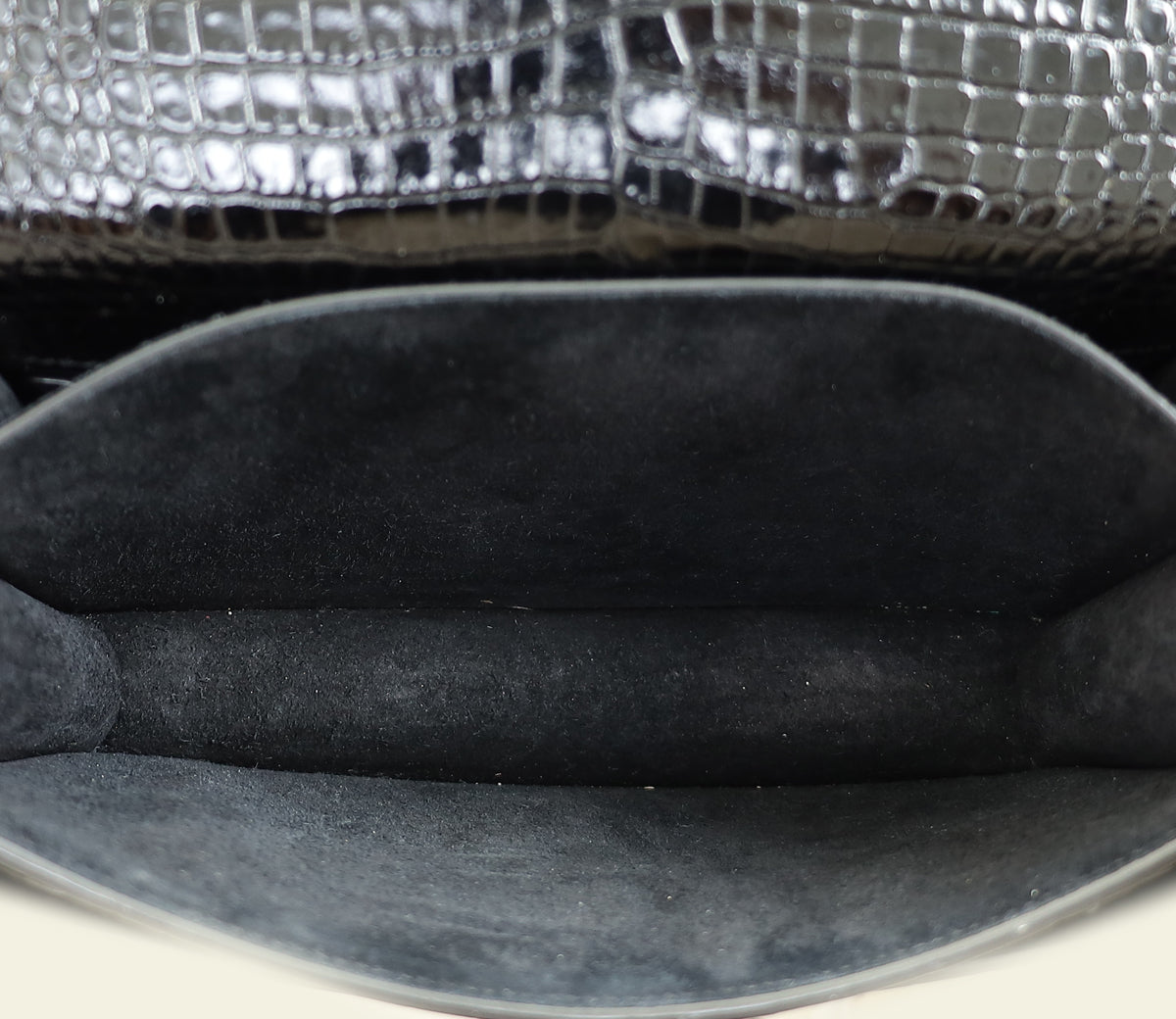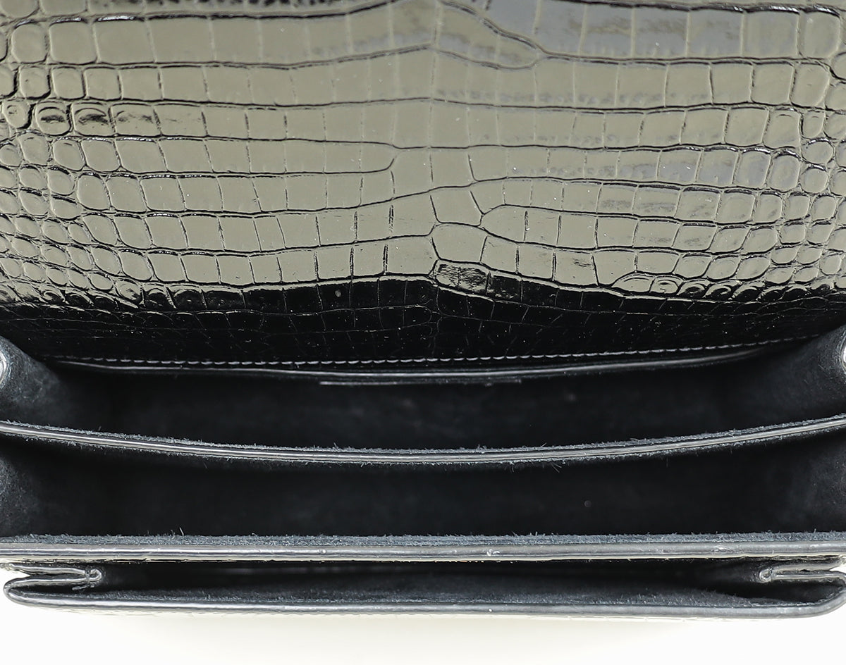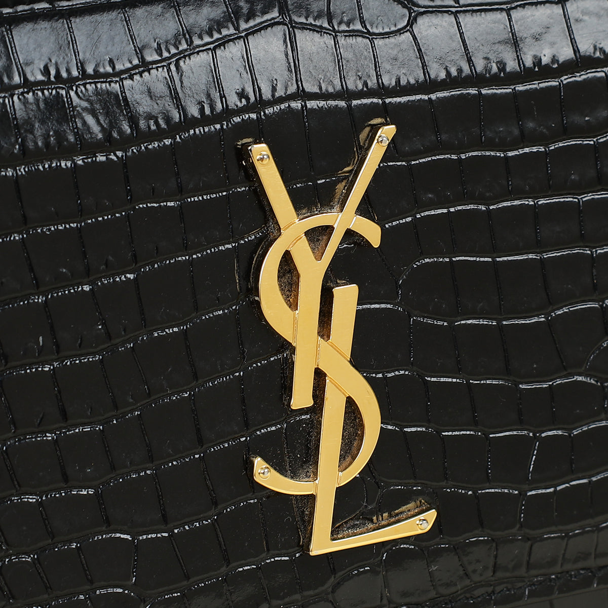YSL Black Sunset Medium Croco Embossed Shoulder Bag