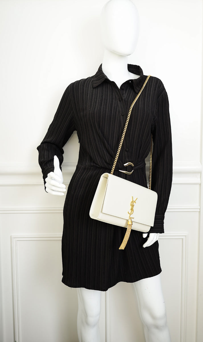 YSL Blanc Vintage Kate Tassel Medium Shoulder Bag