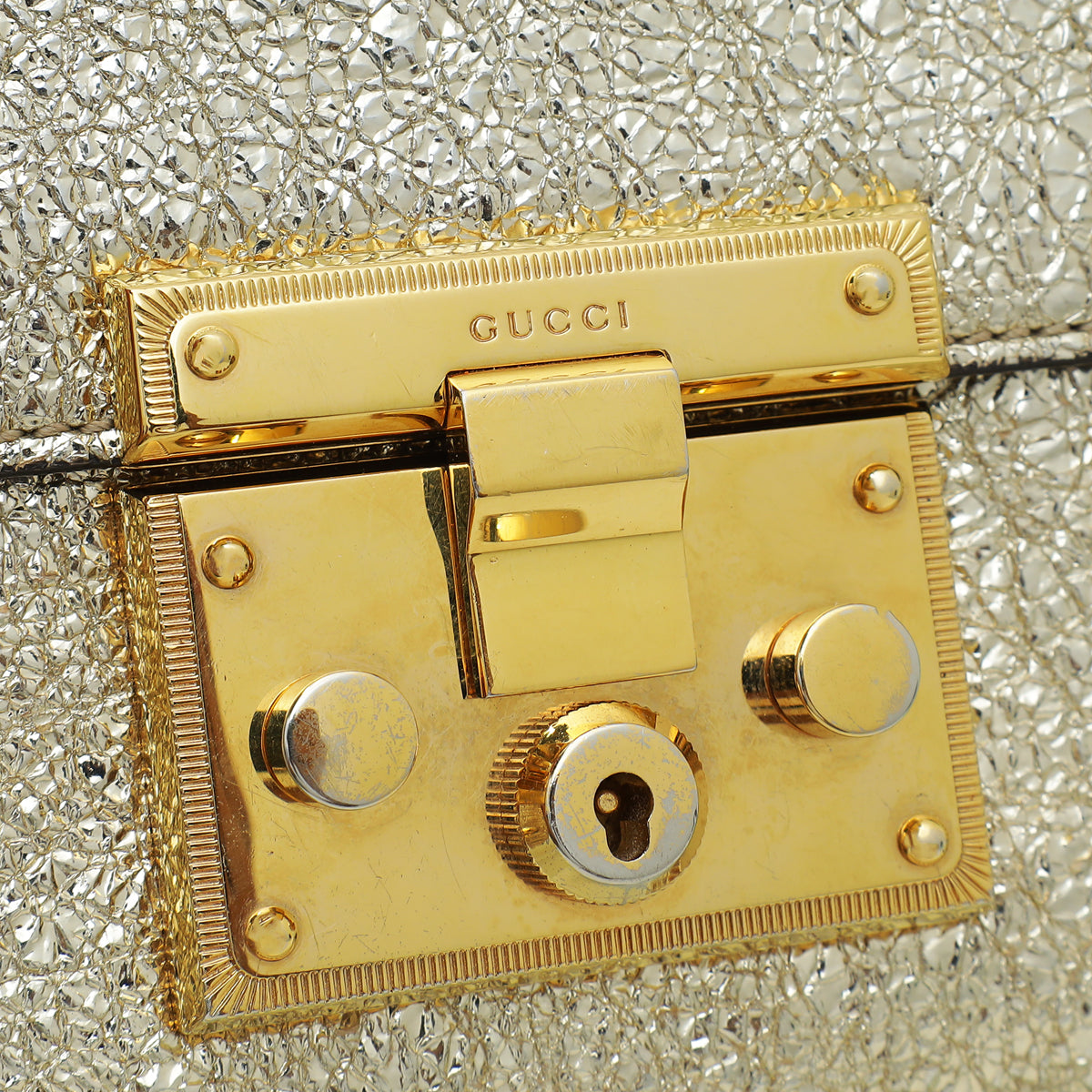 حقيبة صغيرة بسلسلة قفل مغلفة بالذهب المعدني من غوتشي