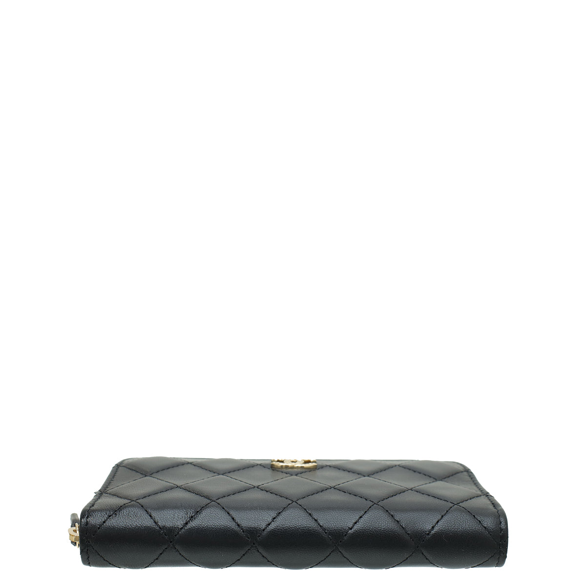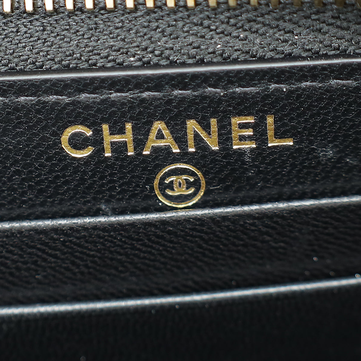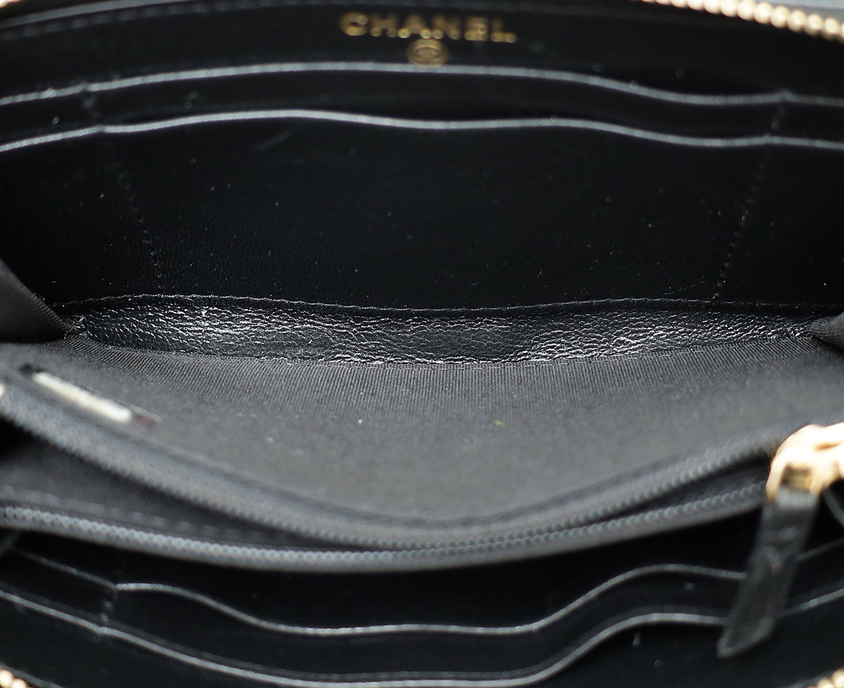 محفظة شانيل CC سوداء مبطنة بسحاب