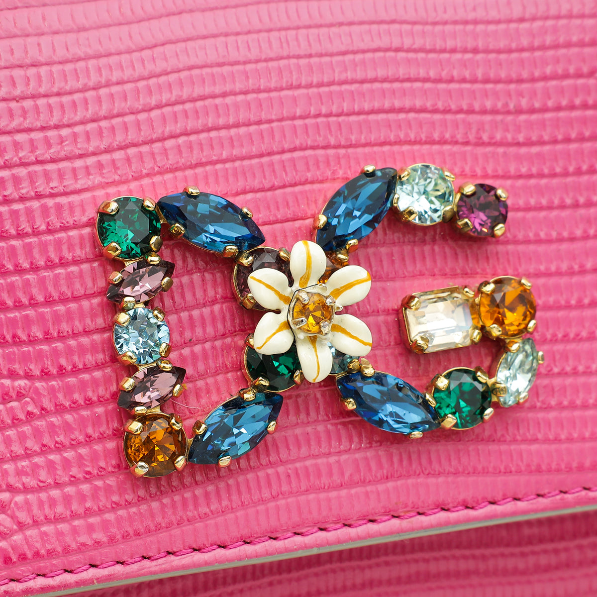 Dolce & Gabbana Pink Iguana Print Crystal Sicily Small Bag