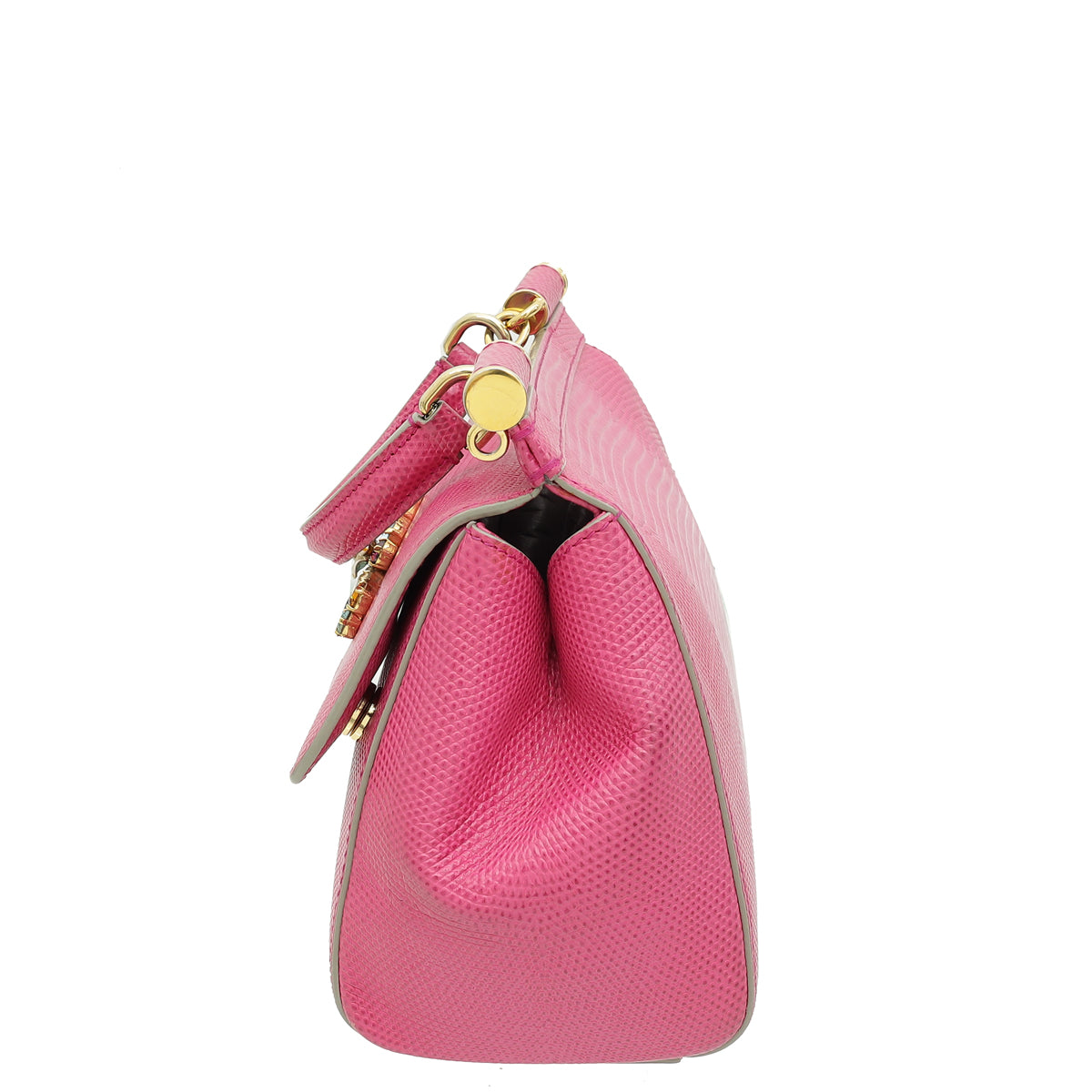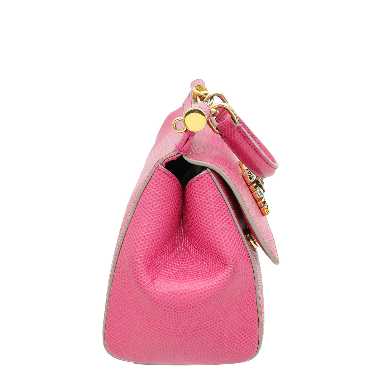 Dolce & Gabbana Pink Iguana Print Crystal Sicily Small Bag-THE CLOSET-THE CLOSET