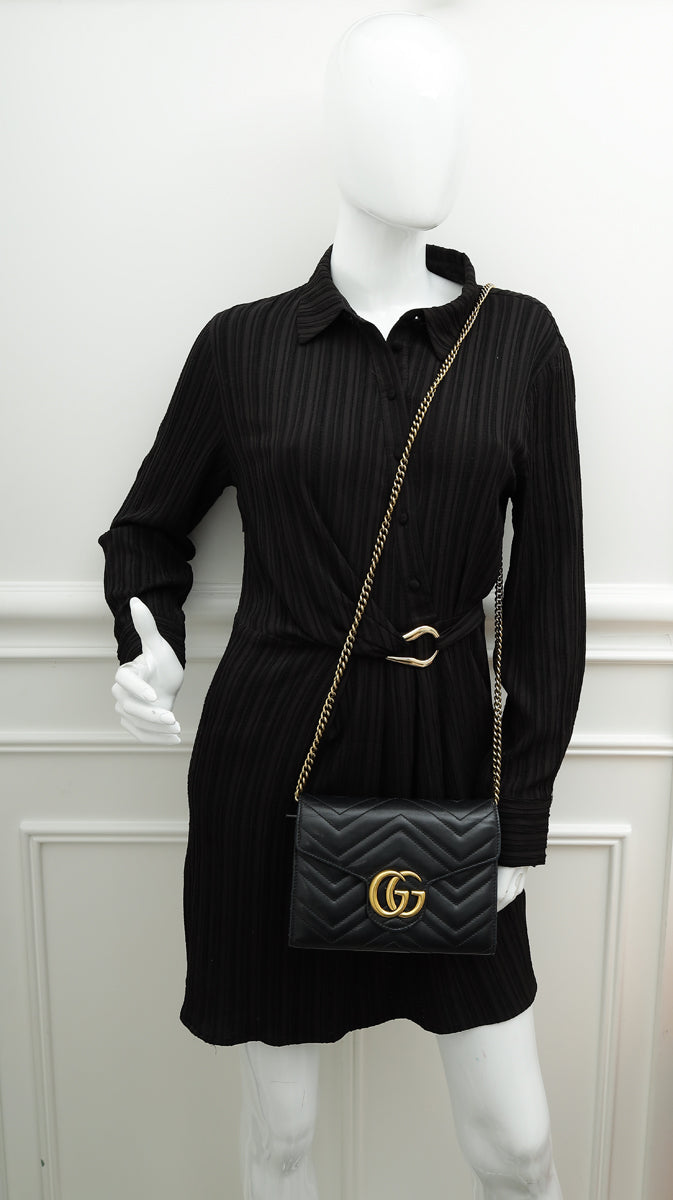 Gucci Black GG Marmont Super Mini Wallet on Chain