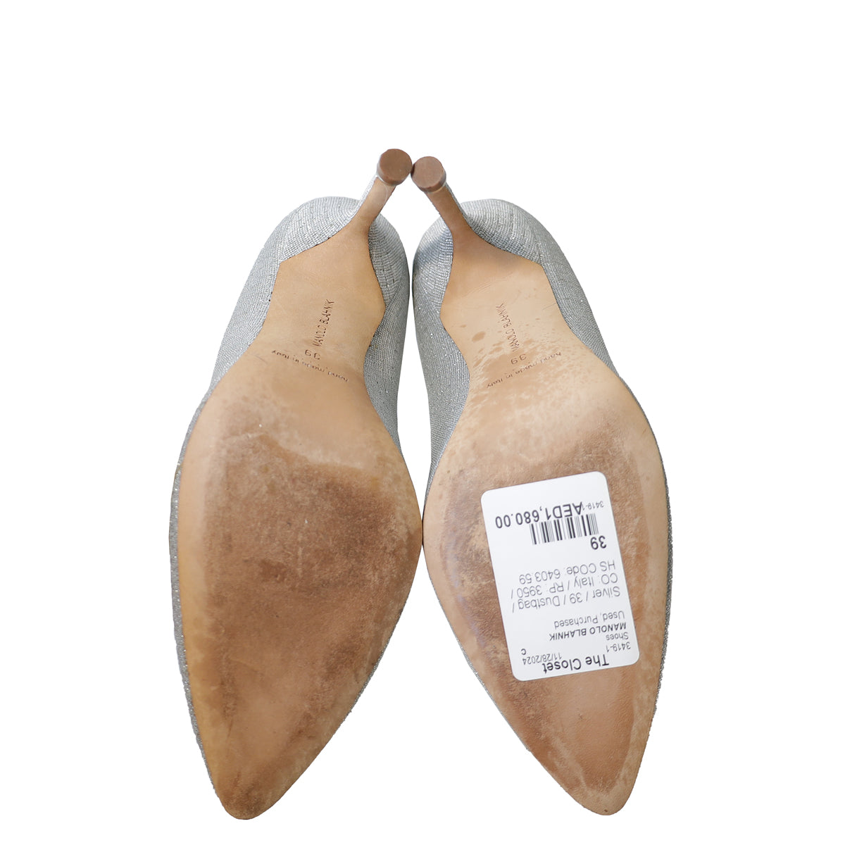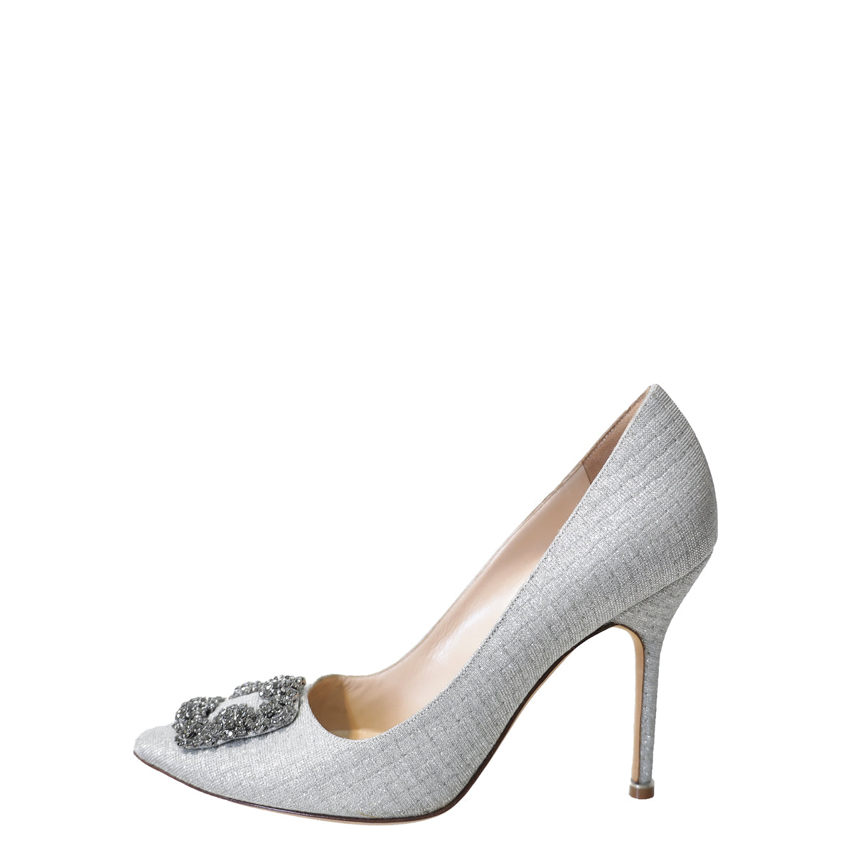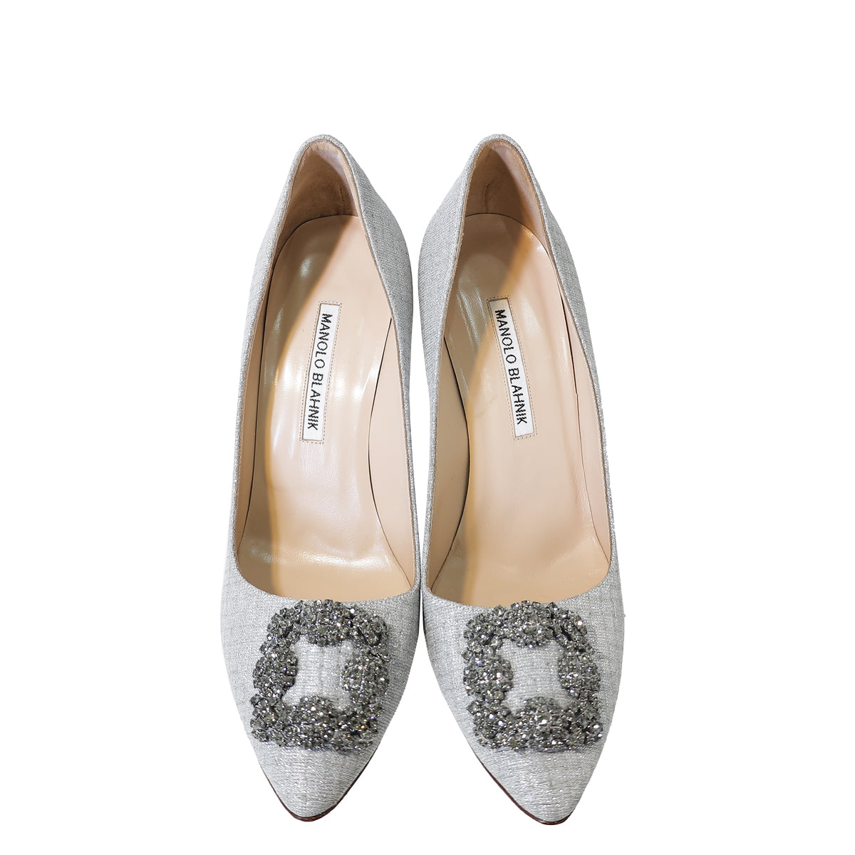 Manolo Blahnik Silver Notturno Bride Hangisi Pump 39