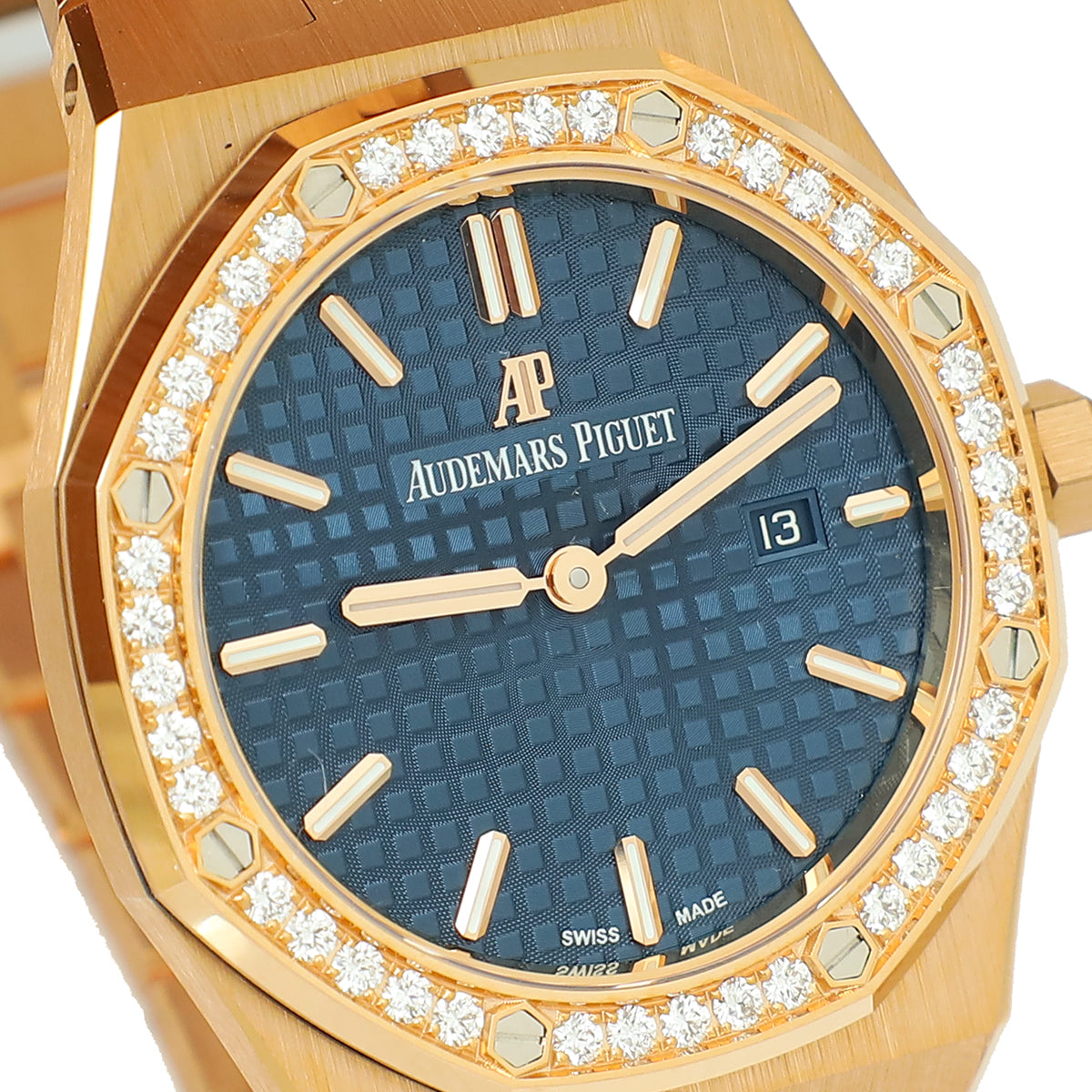 ساعة أوديمارس بيجيه من الذهب الوردي عيار 18 قيراط والألماس رويال أوك 33 ملم كوارتز