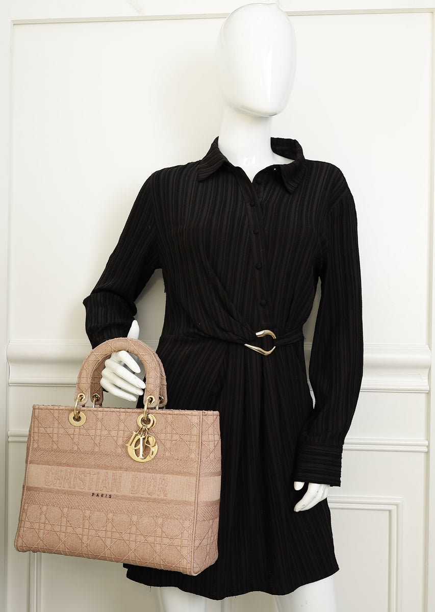 Christian Dior Pink Embroidered Lady D-Lite Large Bag