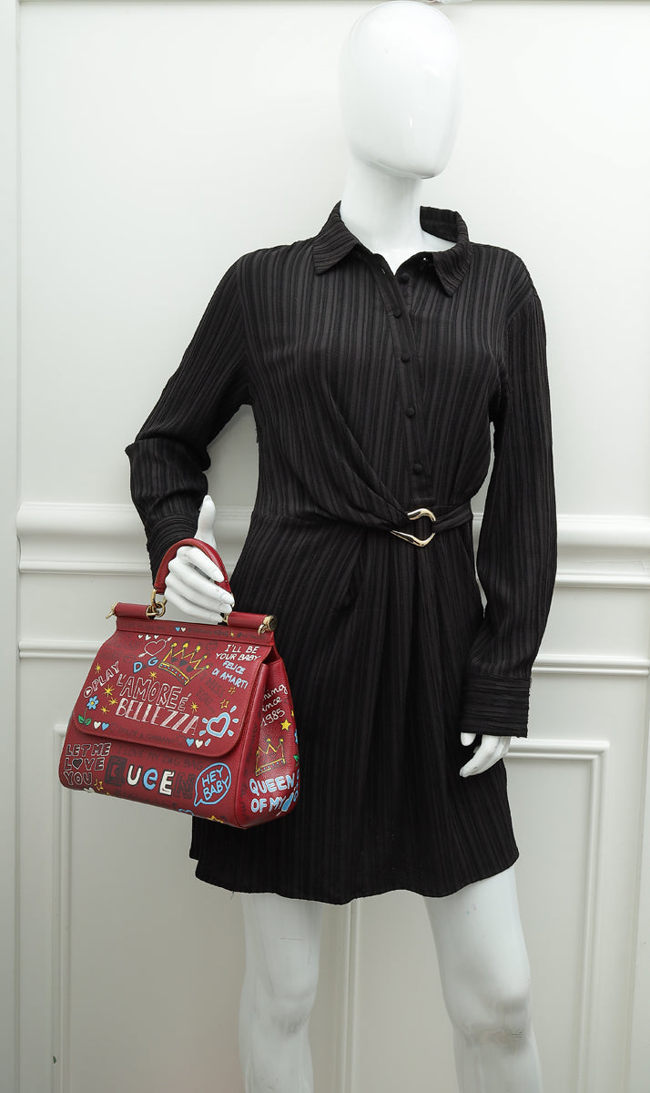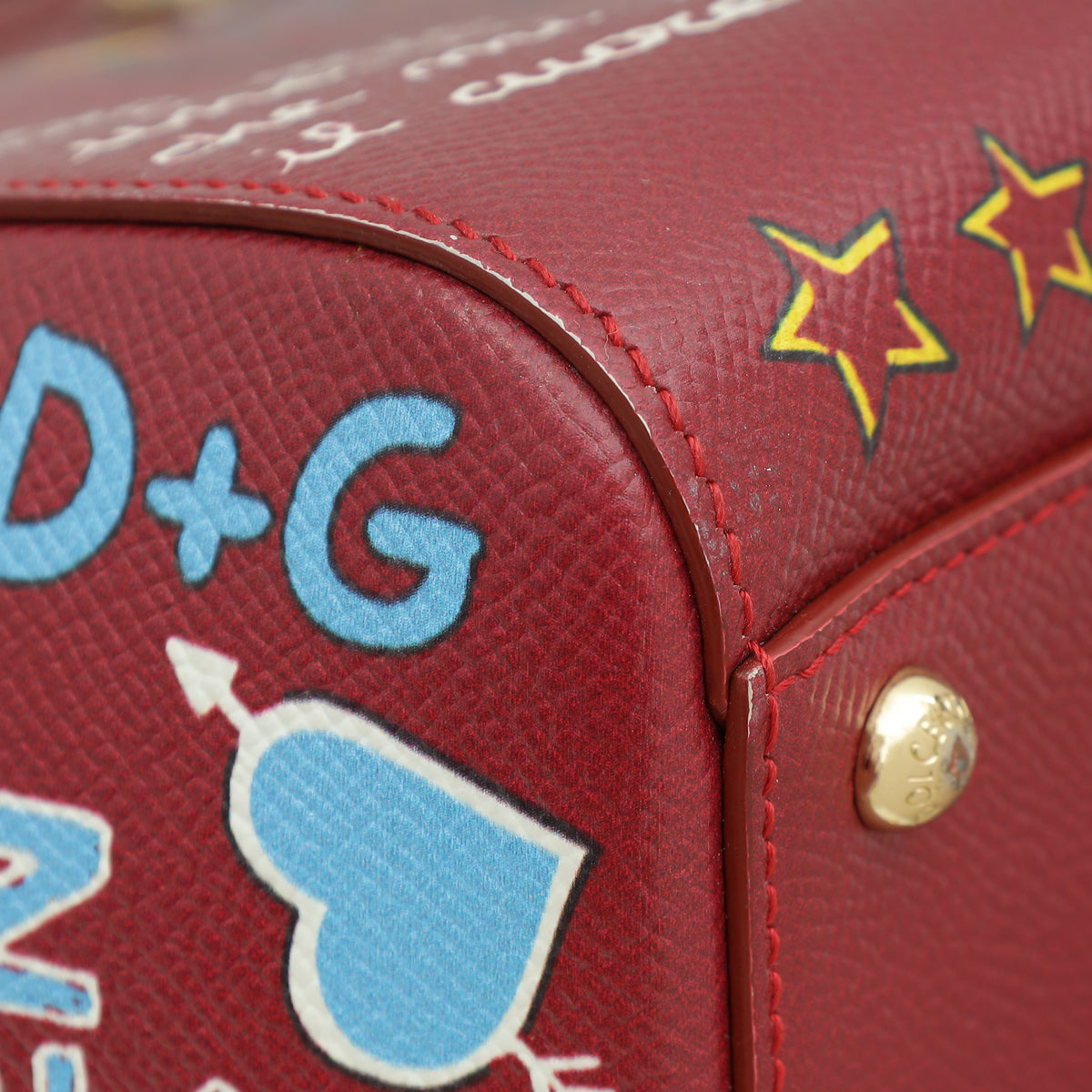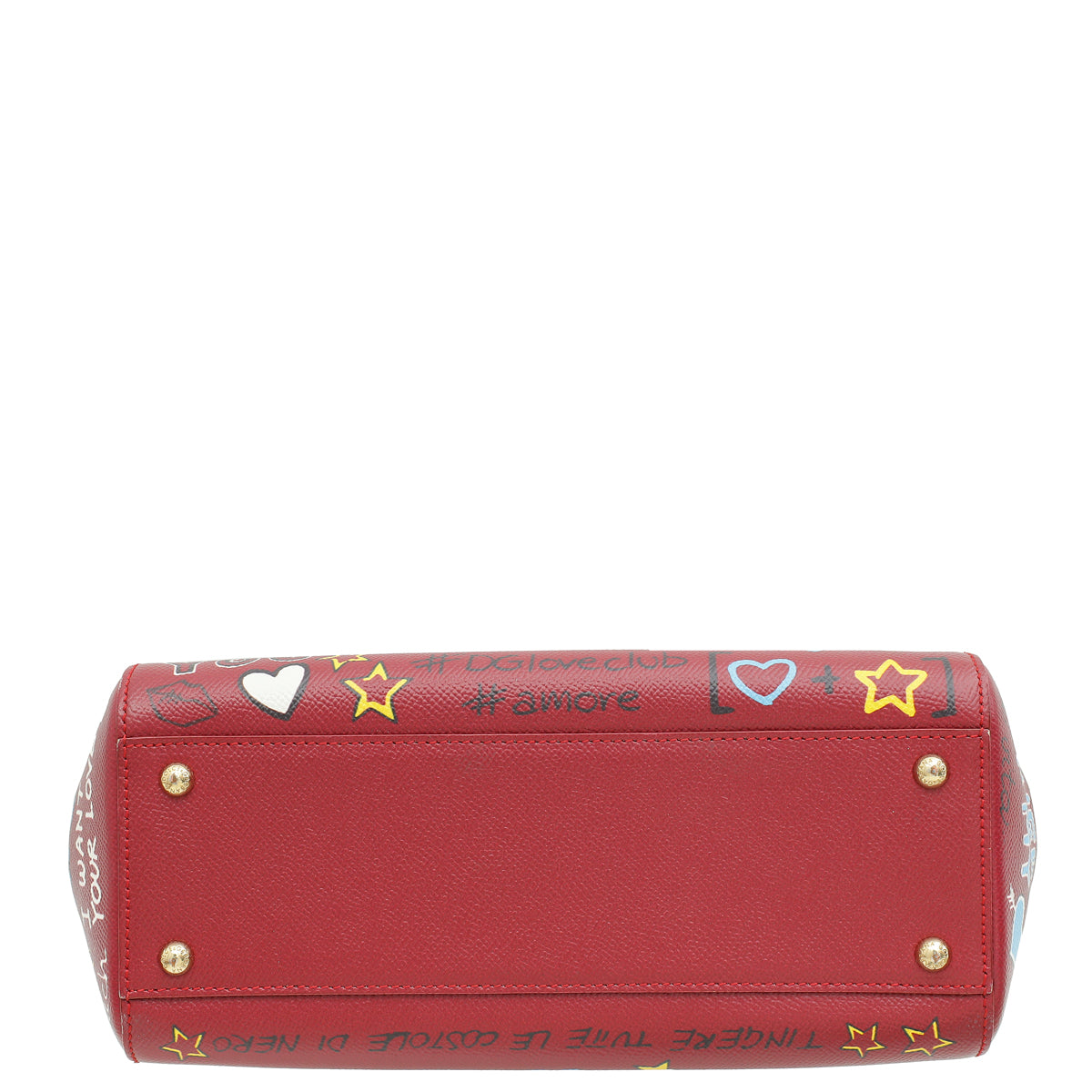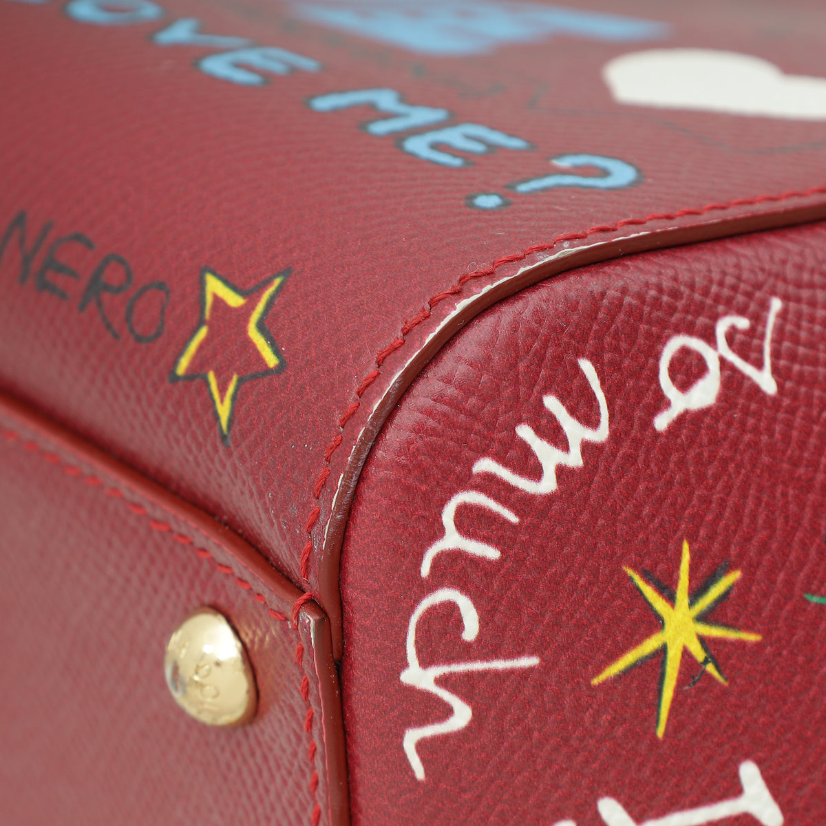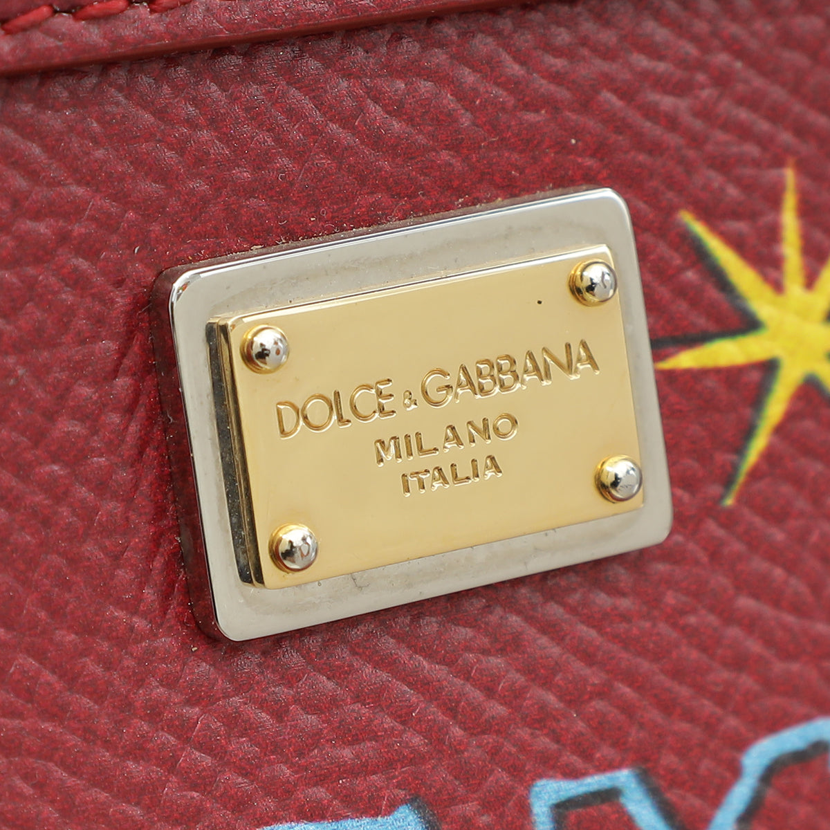 Dolce & Gabbana Burgundy Multicolor Dauphine Sicily Graffiti Print Medium Bag