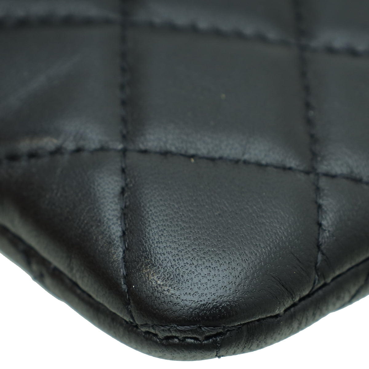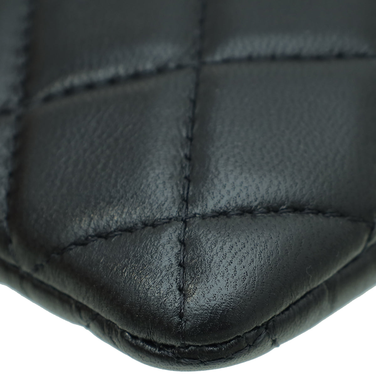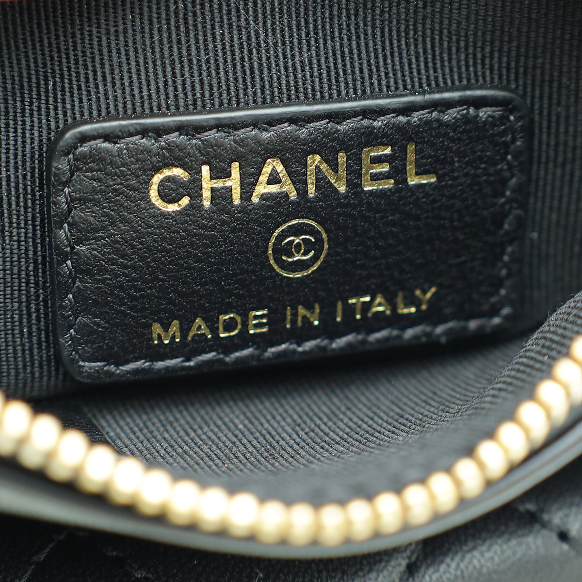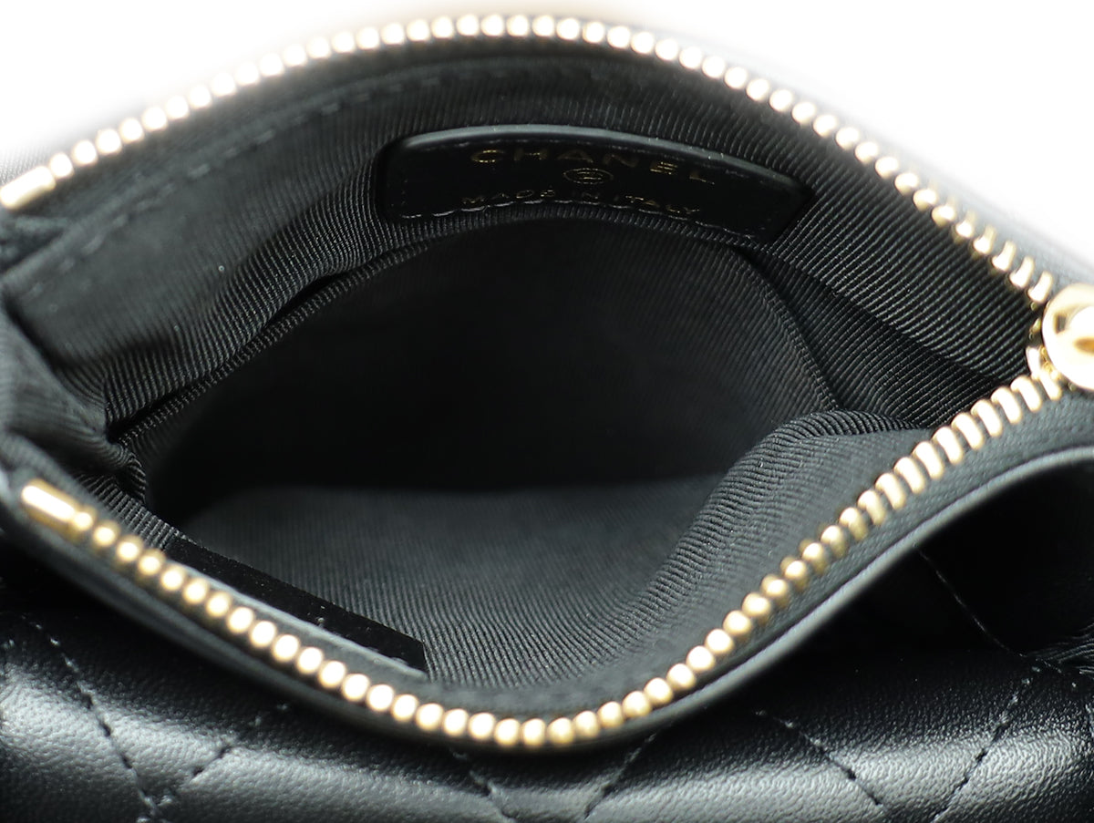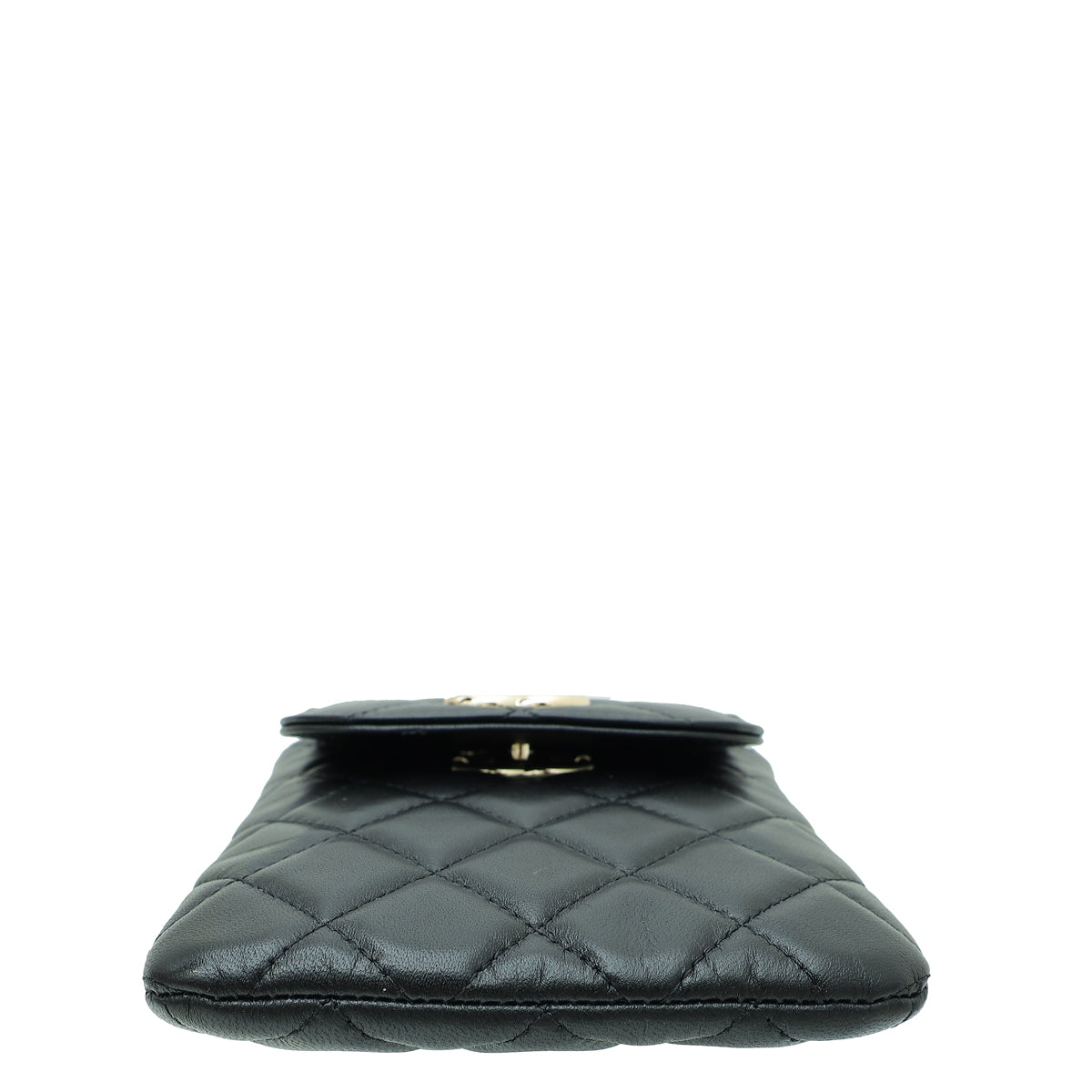 حامل هاتف شانيل CC باللون الأسود للجيب الأمامي مع سلسلة