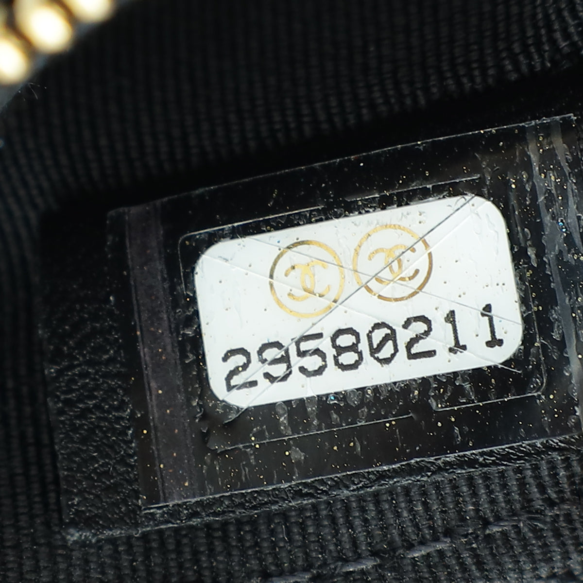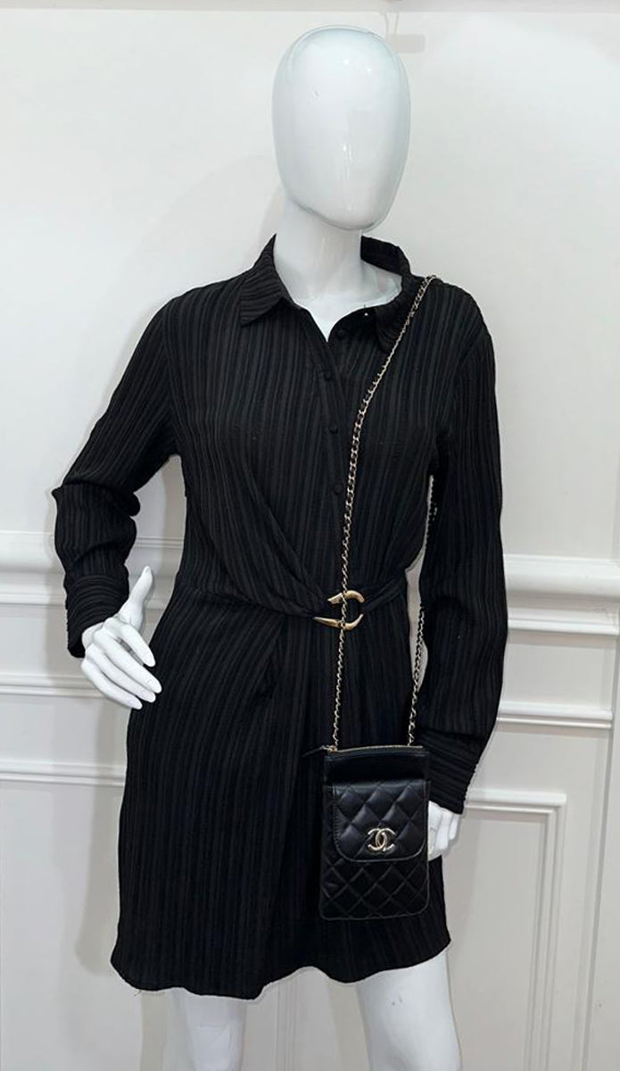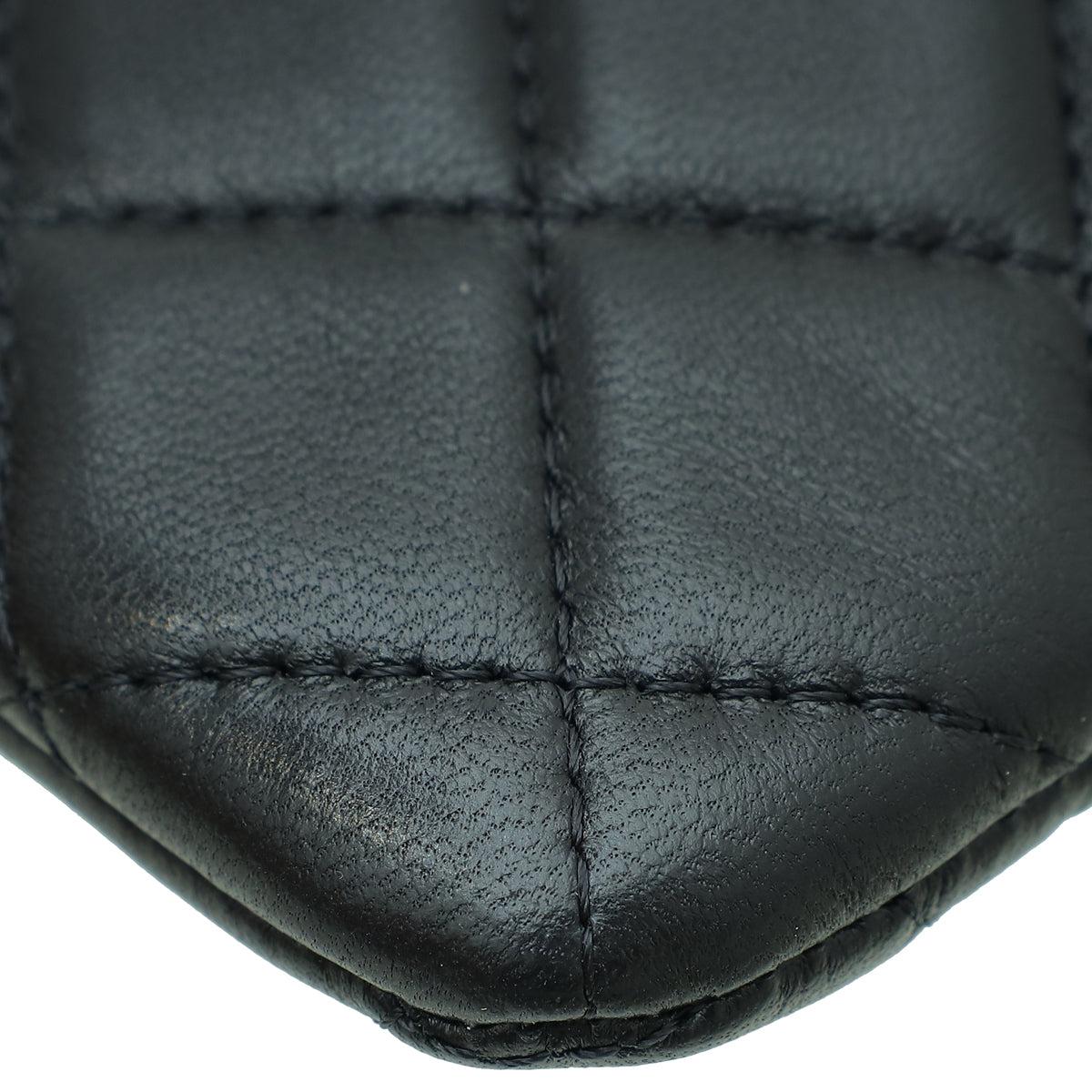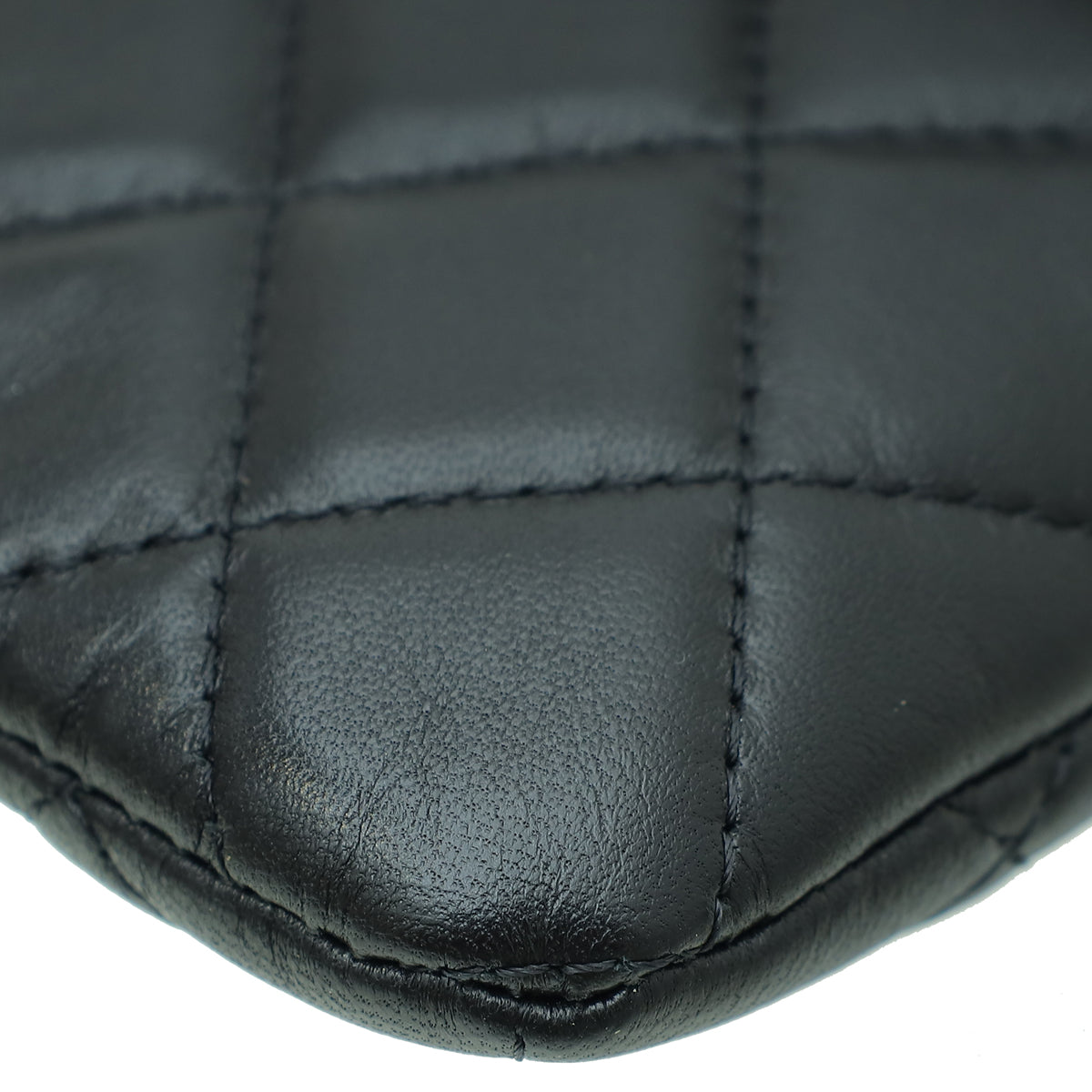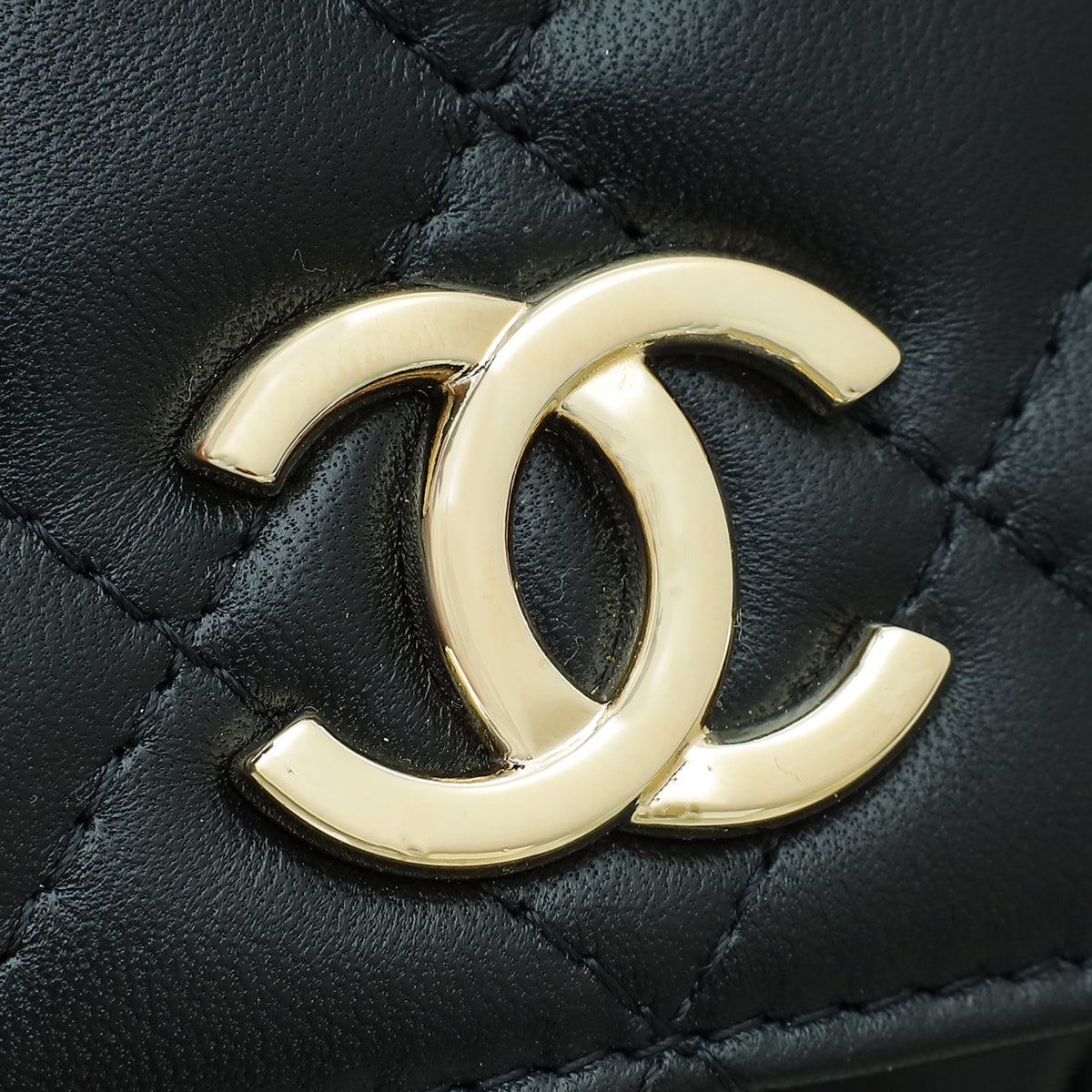 حامل هاتف شانيل CC باللون الأسود للجيب الأمامي مع سلسلة