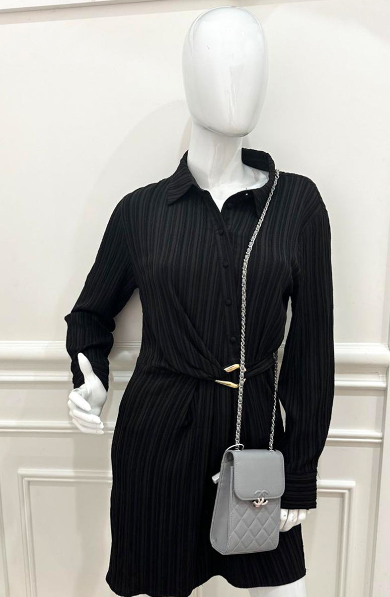 حقيبة شانيل CC مربع سلسلة أفقية رمادية