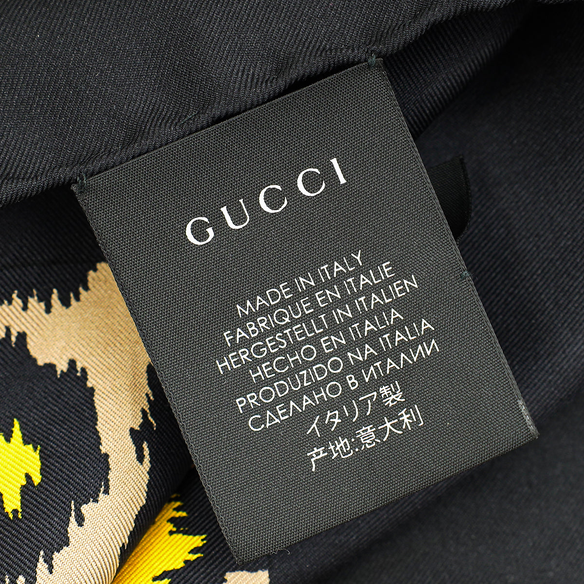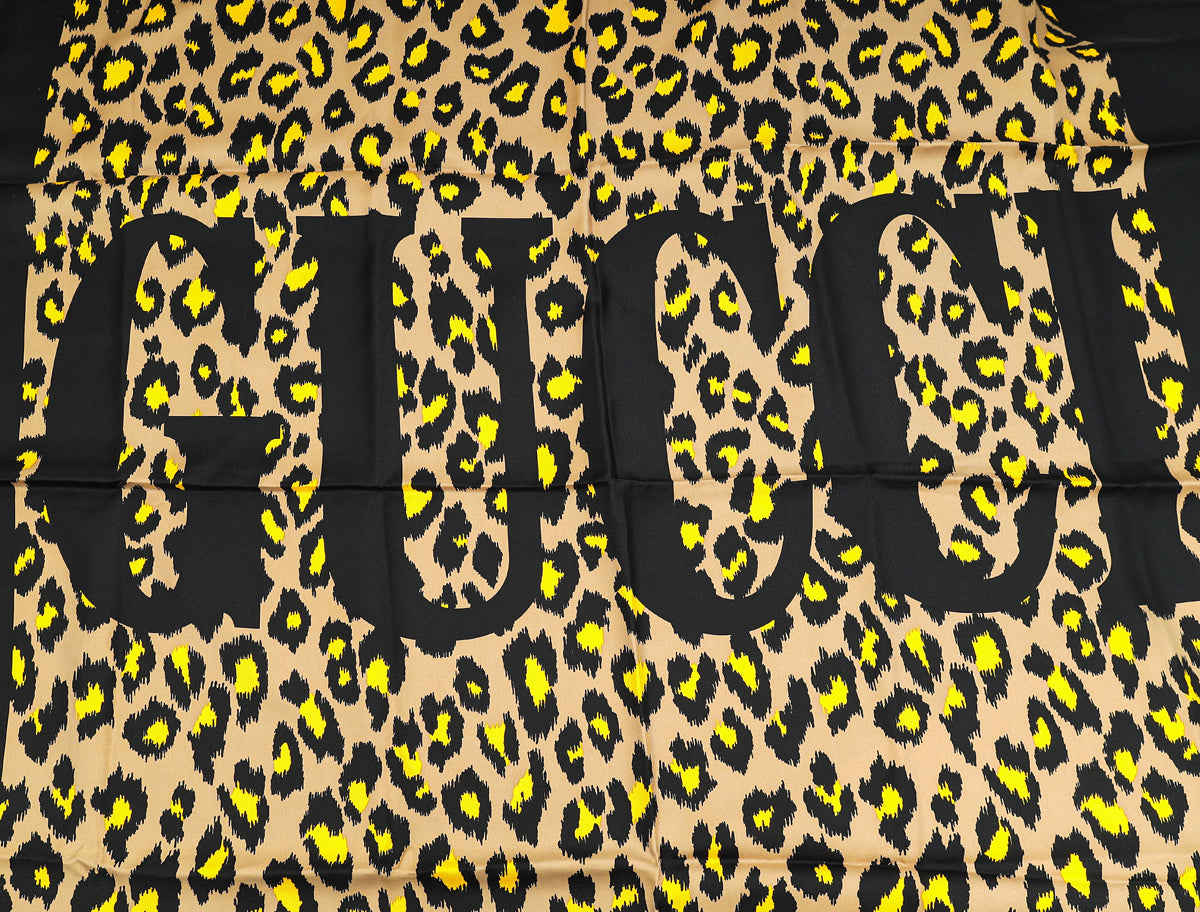 Gucci Tricolor Silk Logo Disco Leopard Square Scarf