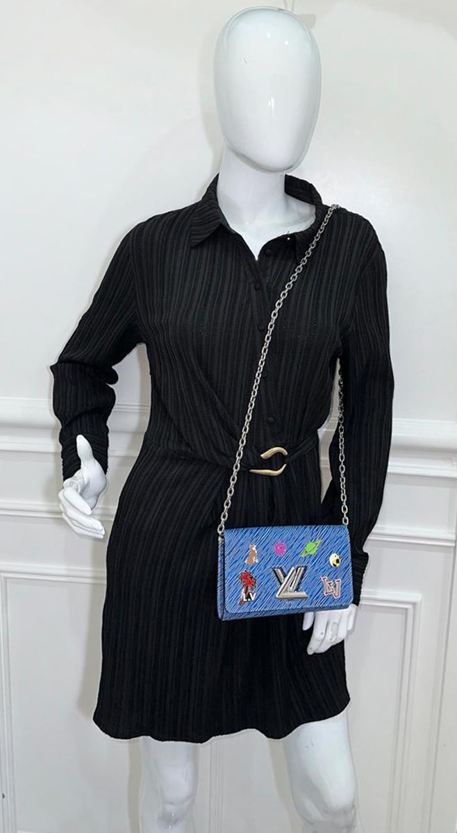 محفظة لويس فويتون من قماش الدنيم الأزرق الساحرة على سلسلة