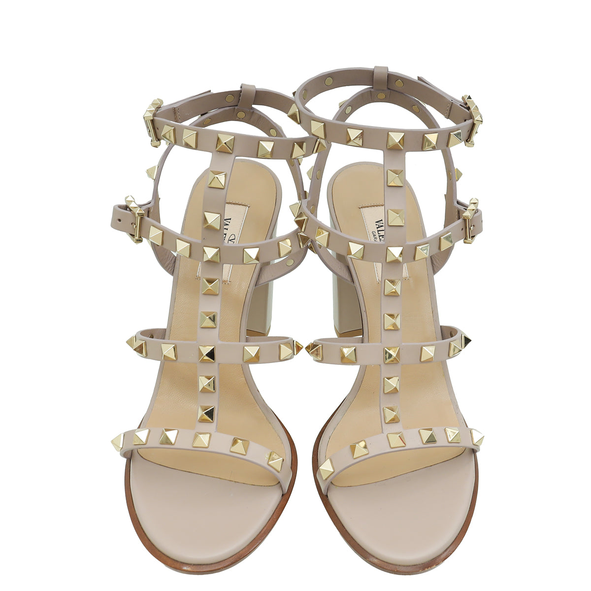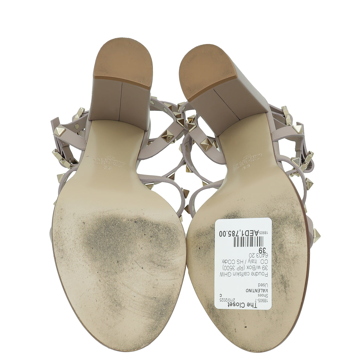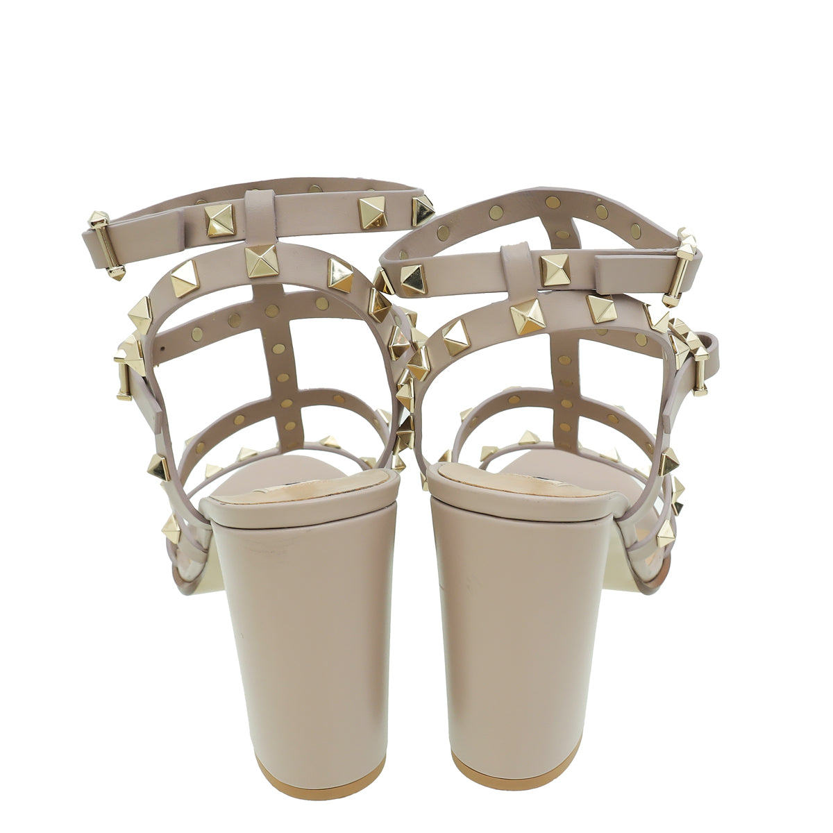 Valentino Poudre Rockstud Caged Block Ankle Strap 90mm Sandals 39