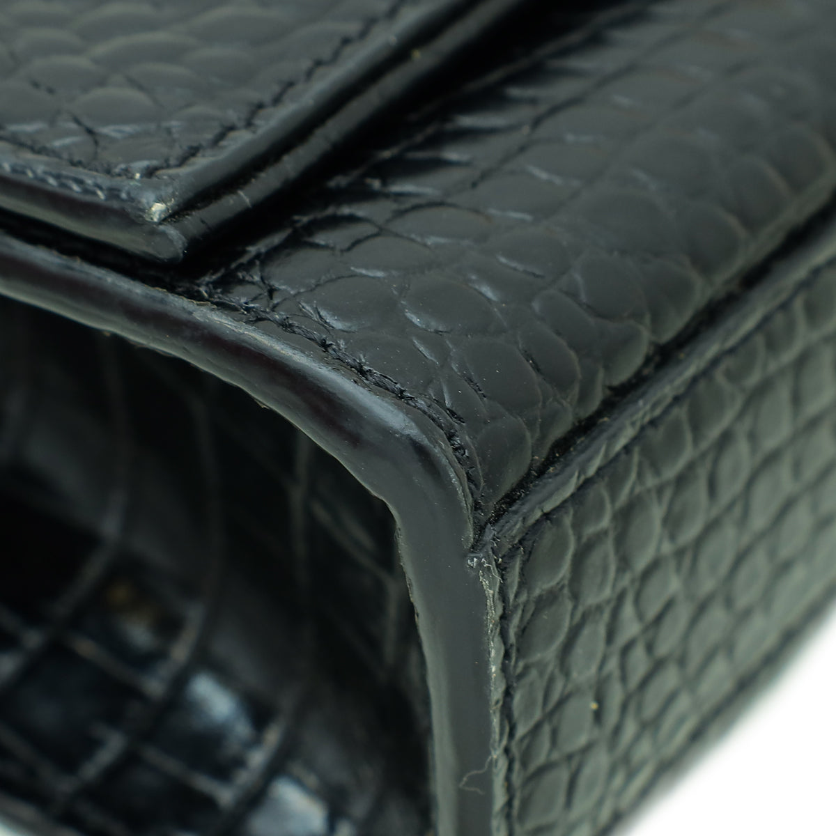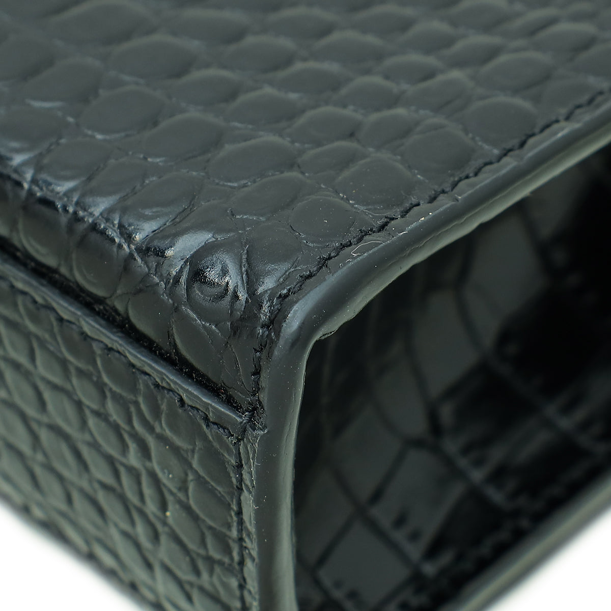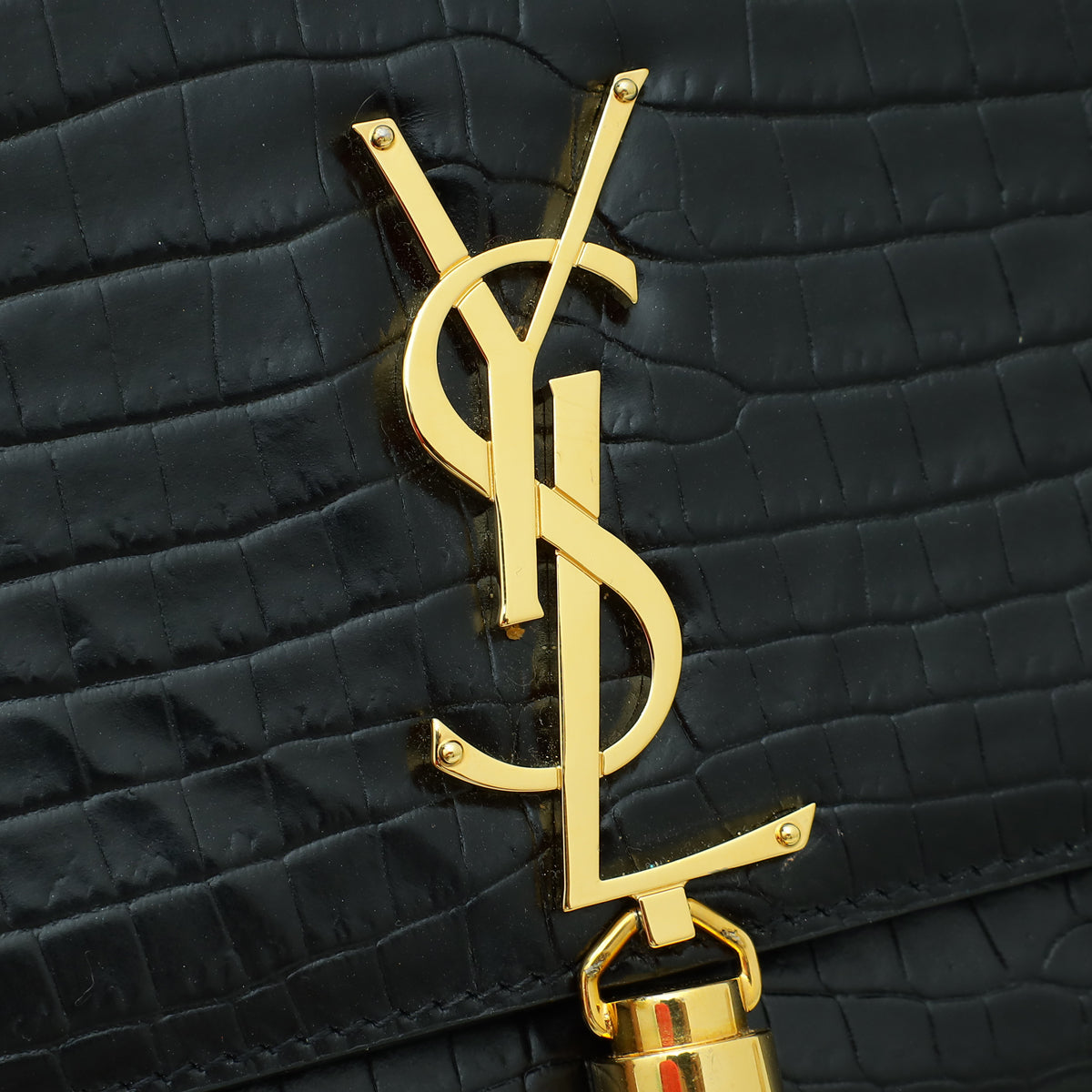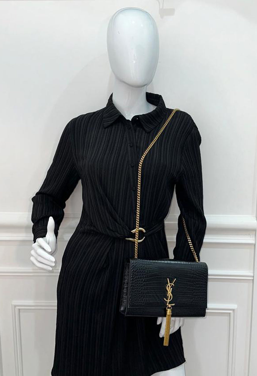 YSL حقيبة كروس متوسطة الحجم منقوشة باللون الأسود من YSL