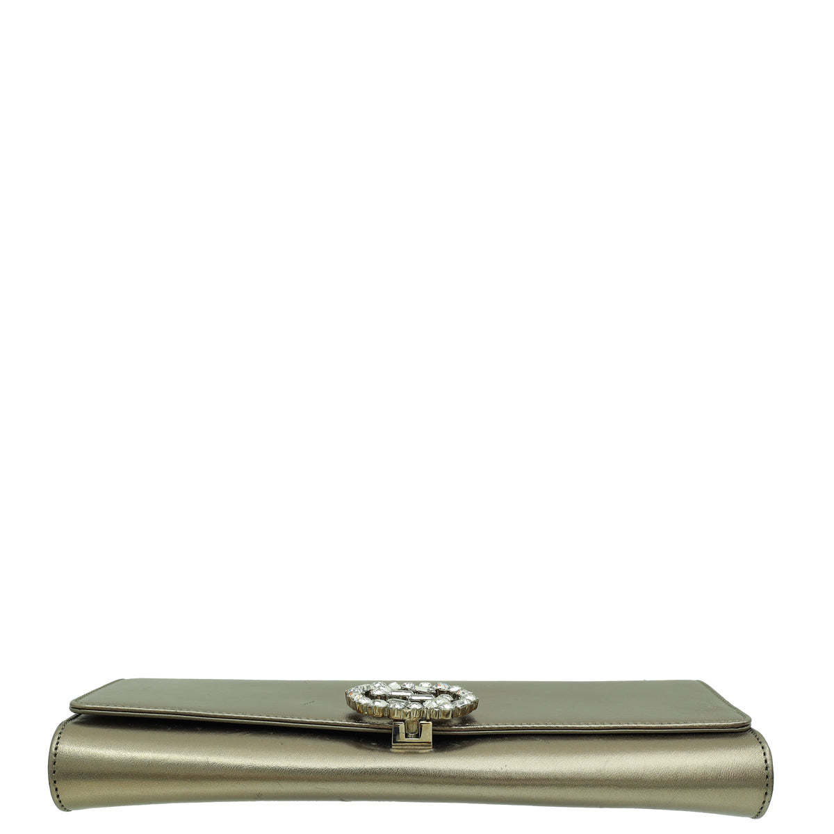 Gucci Metallic Bronze GG Crystal Broadway Clutch