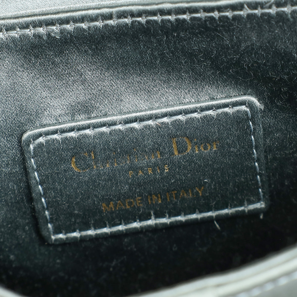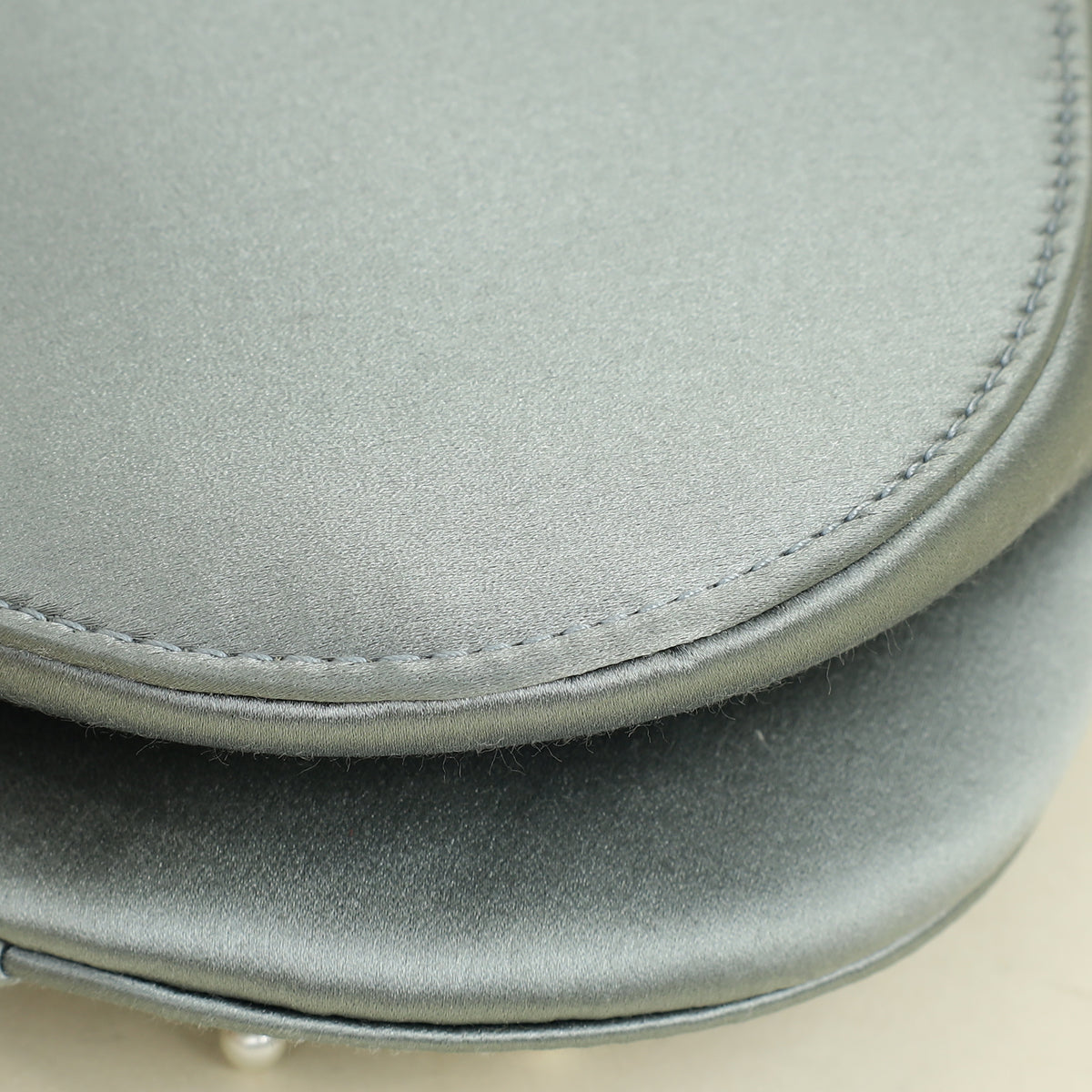 Christian Dior Grey Mini Saddle Satin Crystal Embellished Brooch Bag